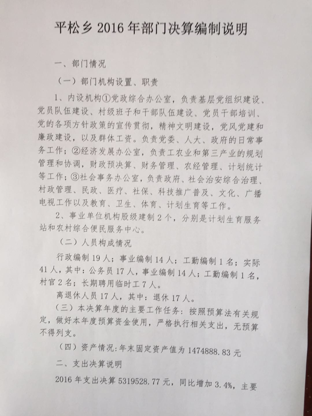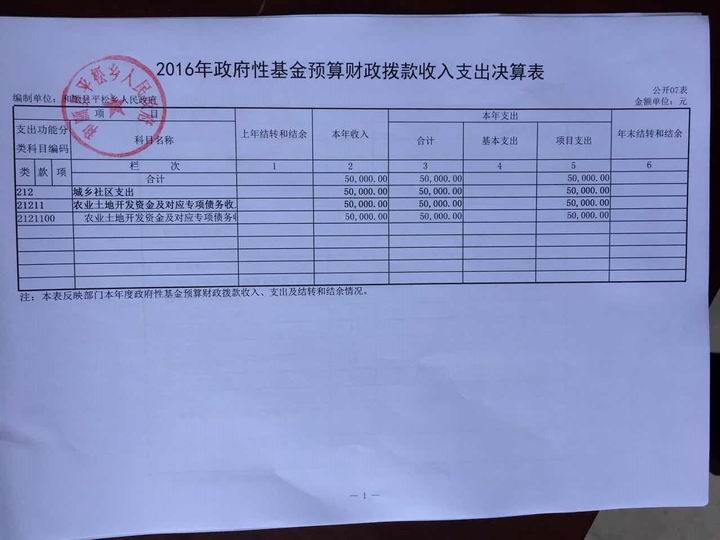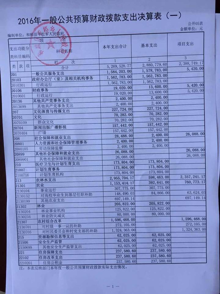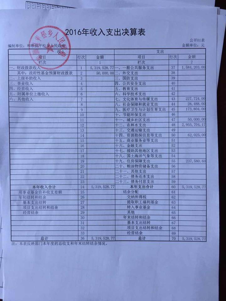 平松乡2016年决算公开