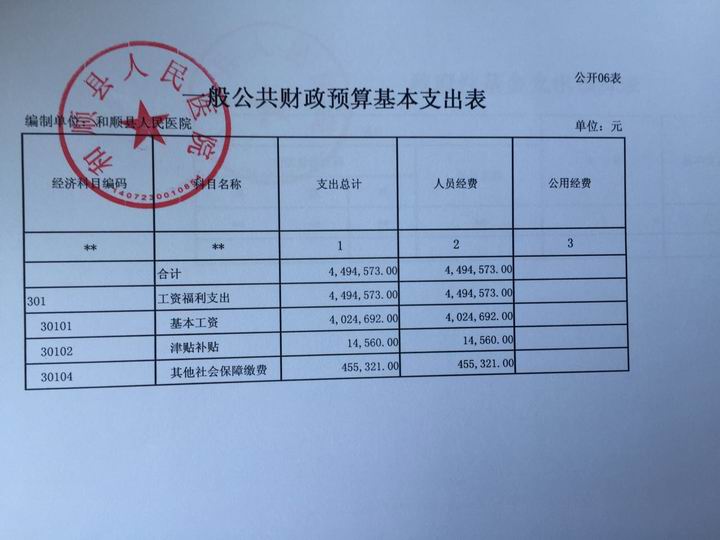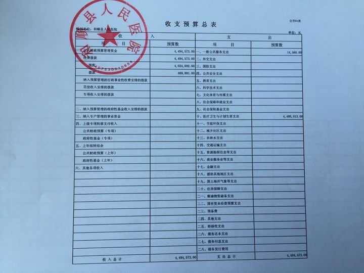 和顺县人民医院2017年预算公开