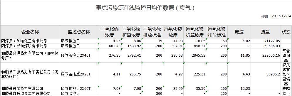 重点污染源在线监控日均值数据(废气)