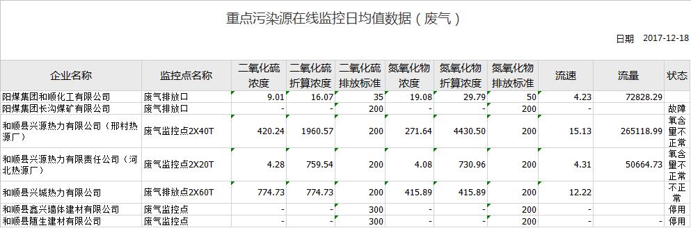 重点污染源在线监控日均值数据(废气)