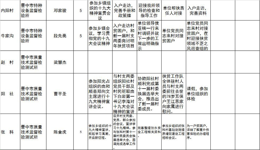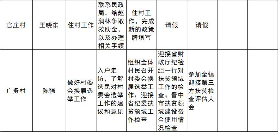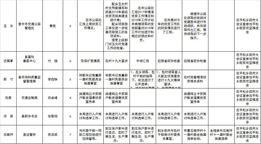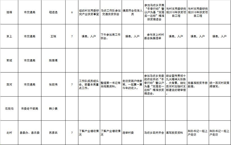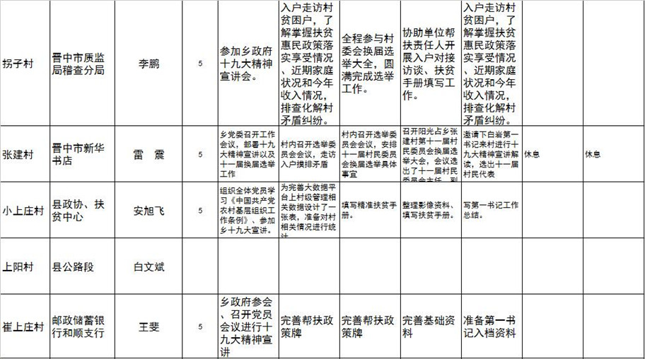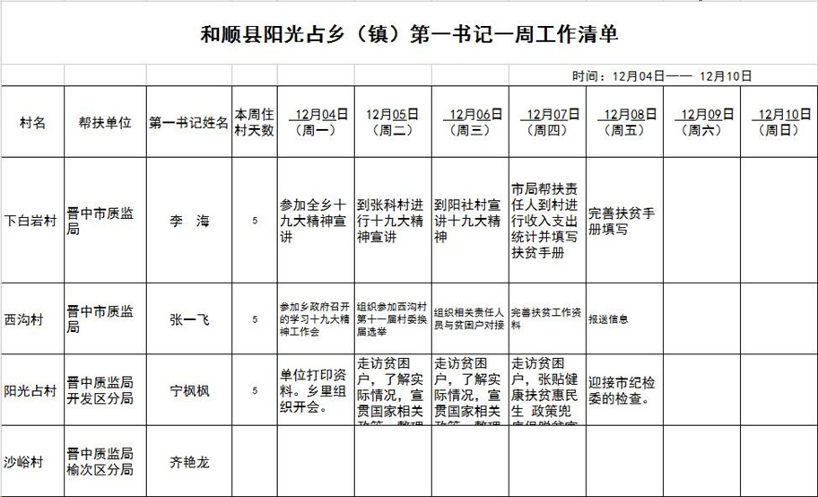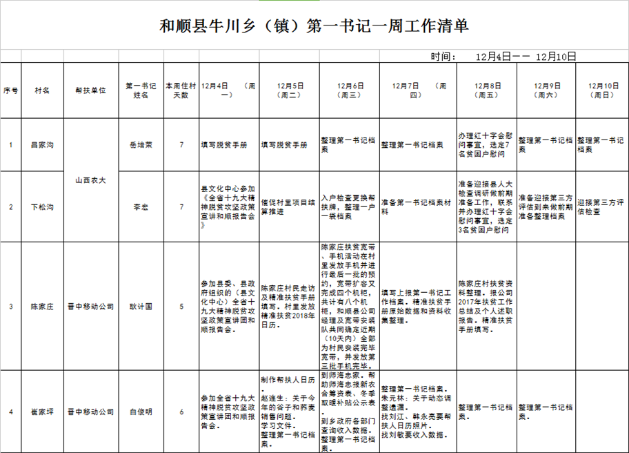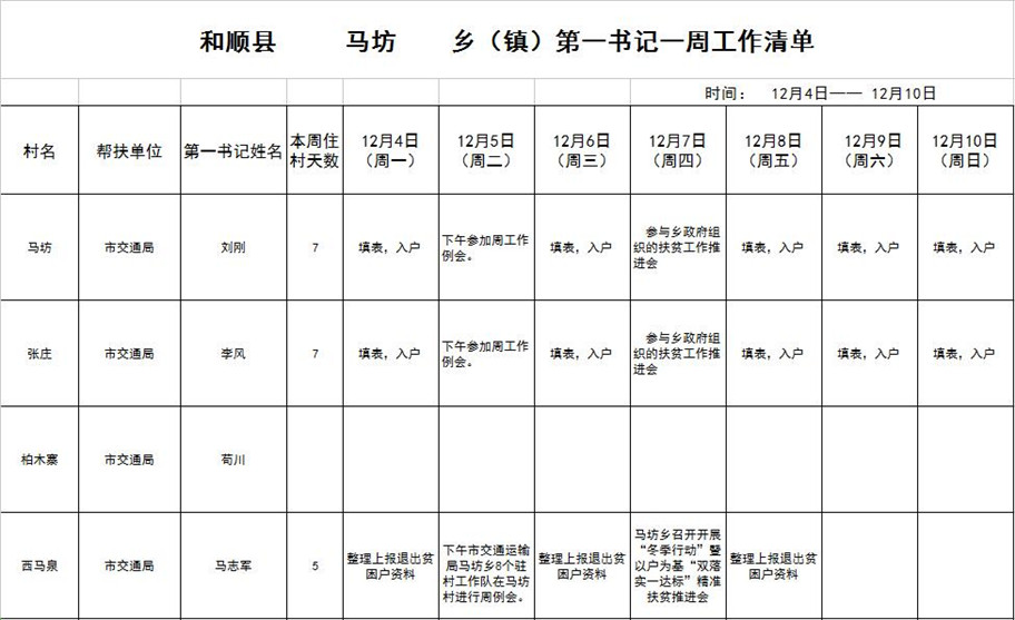和顺县第一书记一周工作清单(12月04日—12月10日)