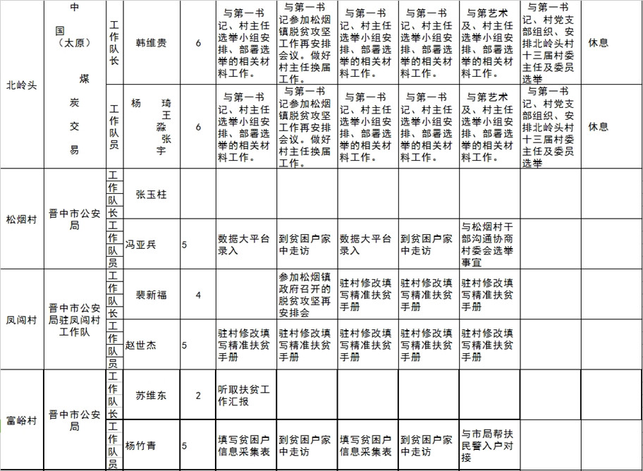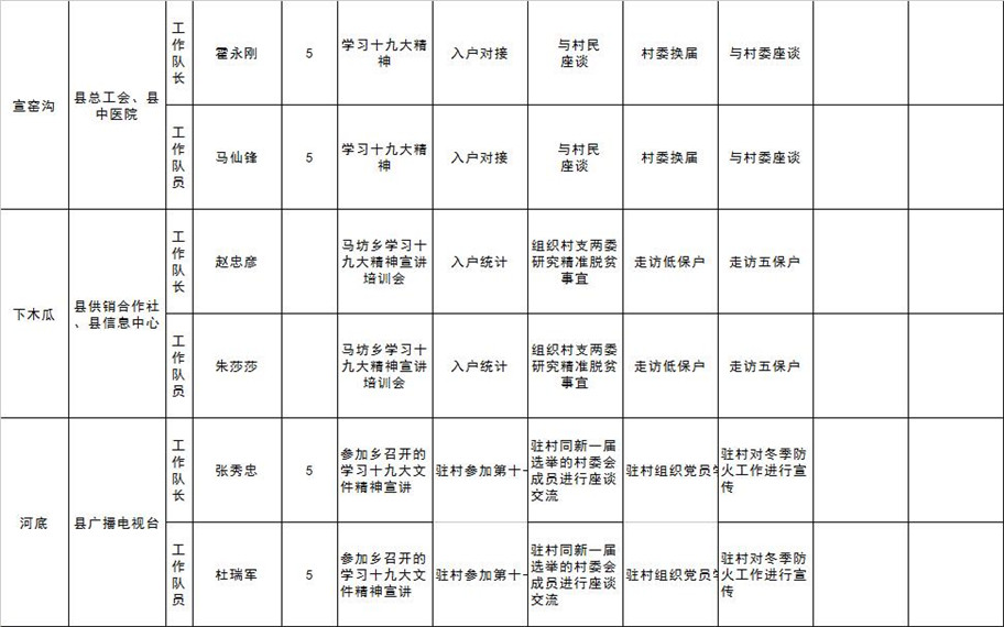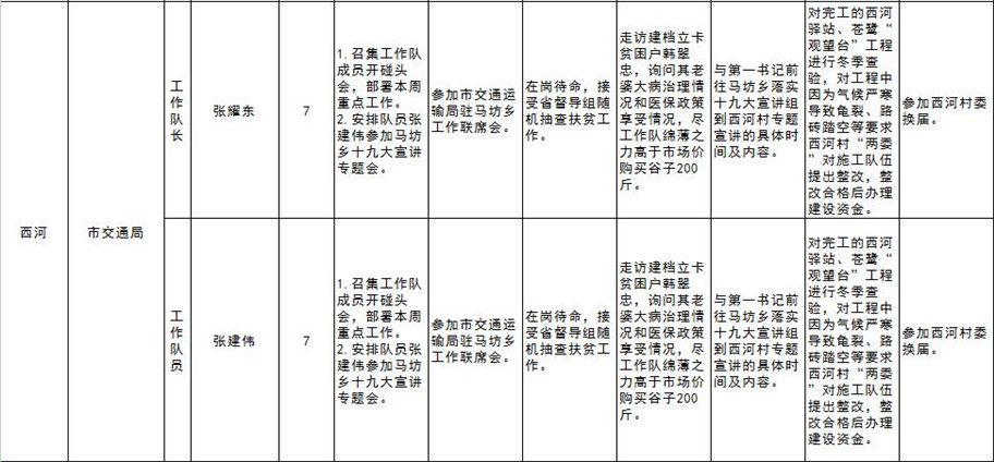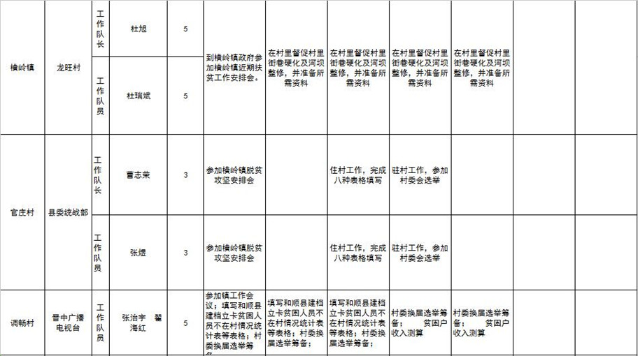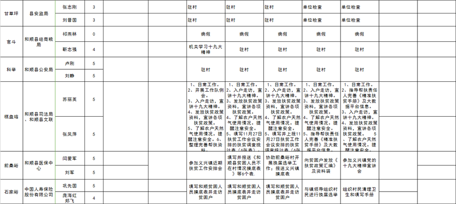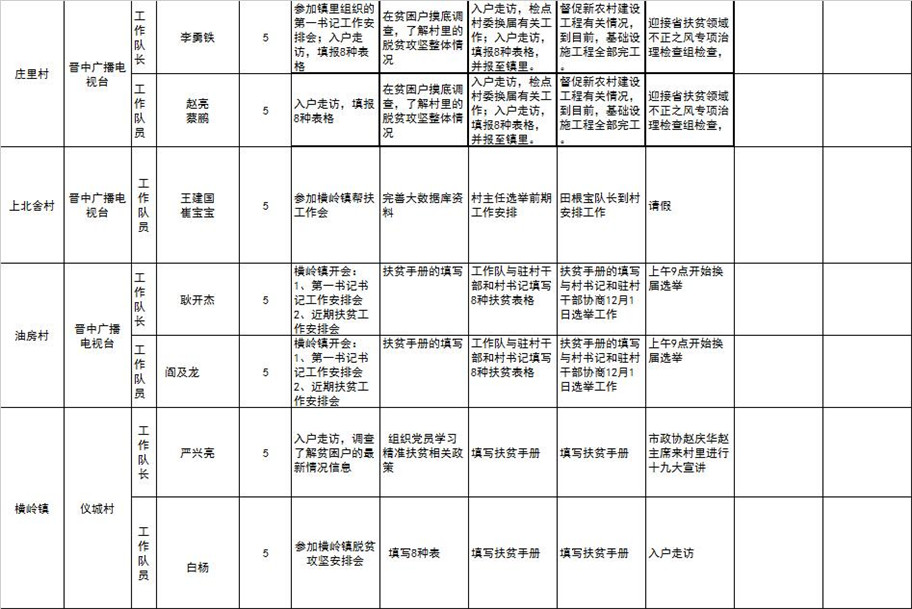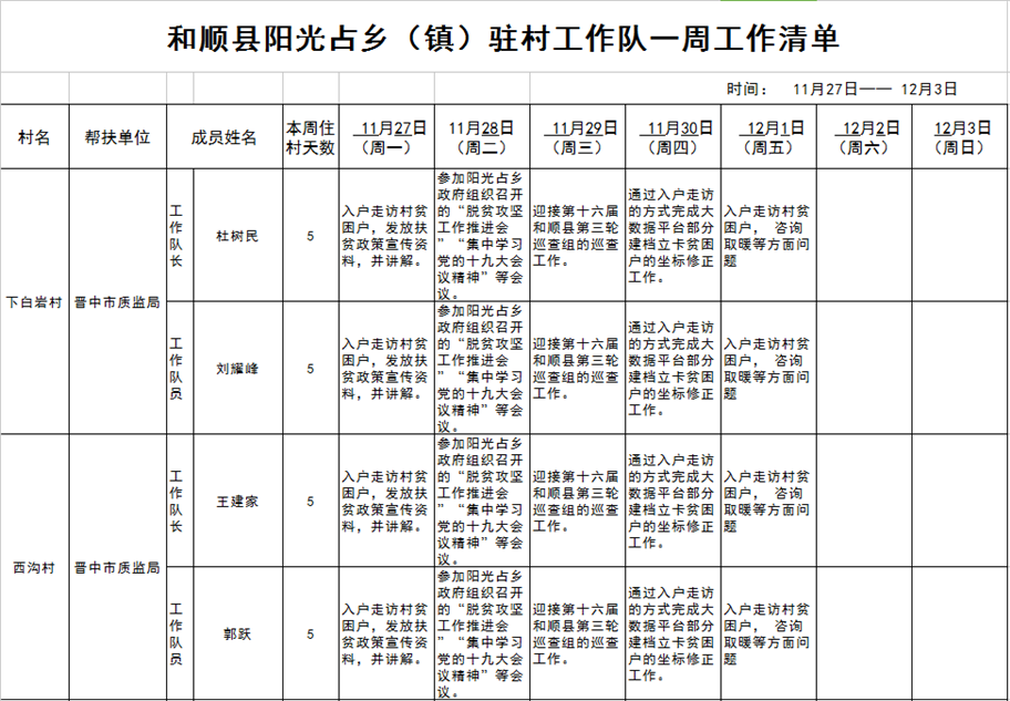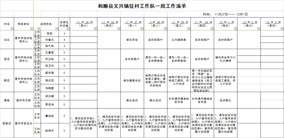 和顺县驻村工作队一周工作清单(11月27日—12月03日)