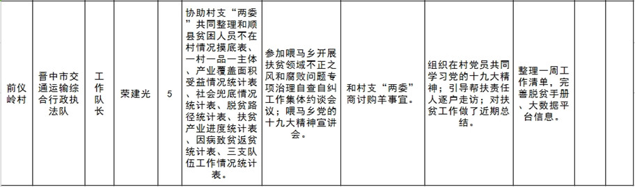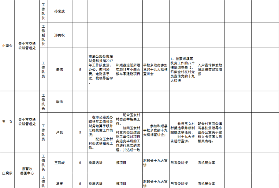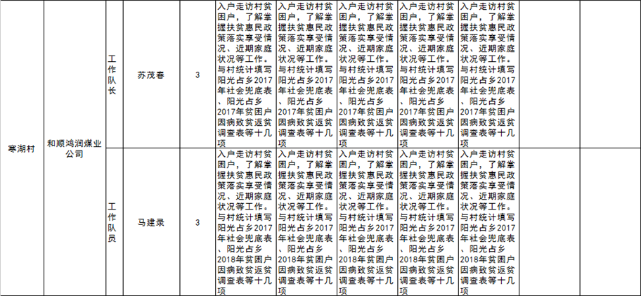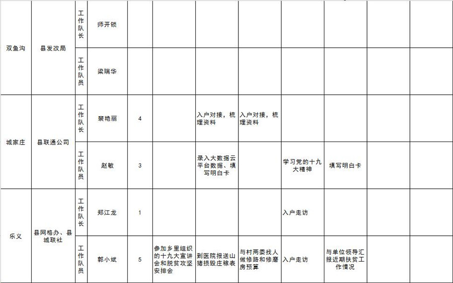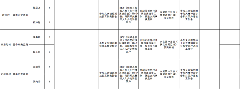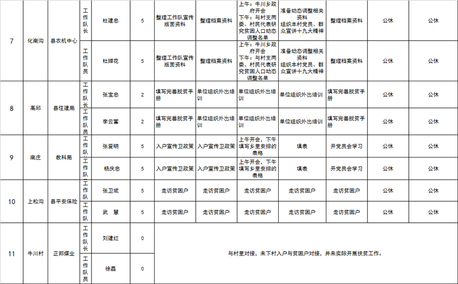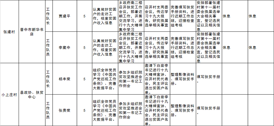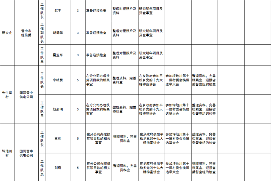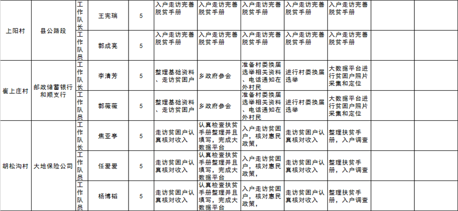 和顺县驻村工作队一周工作清单(11月27日—12月03日)