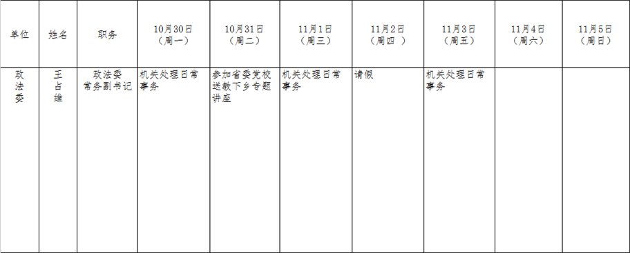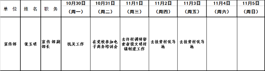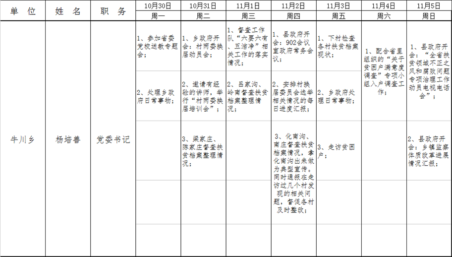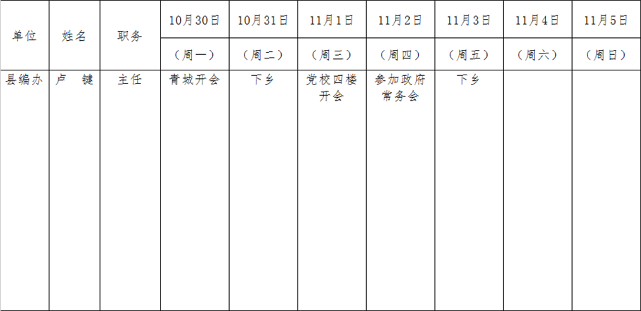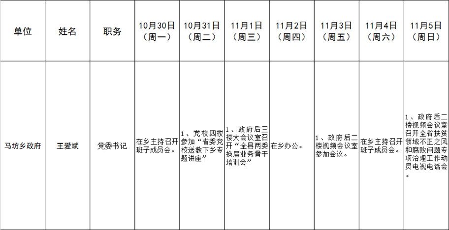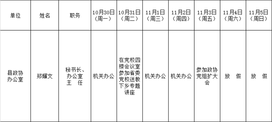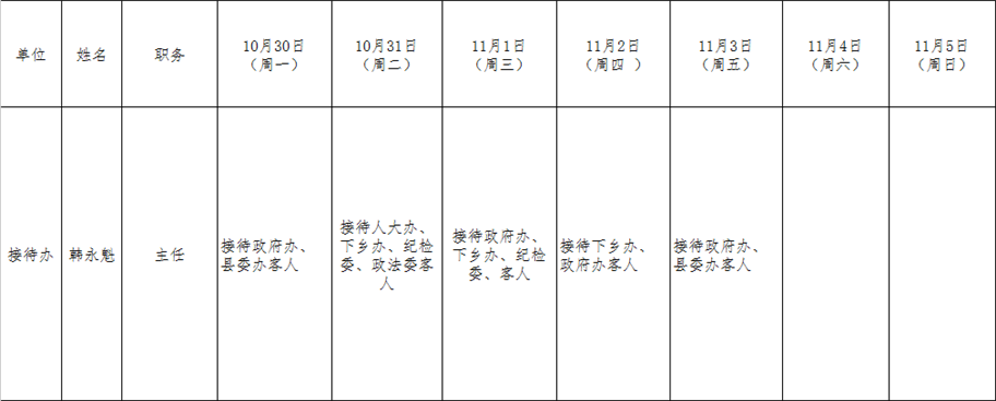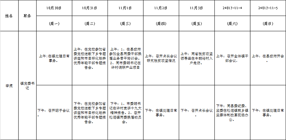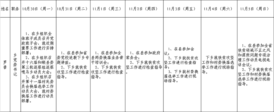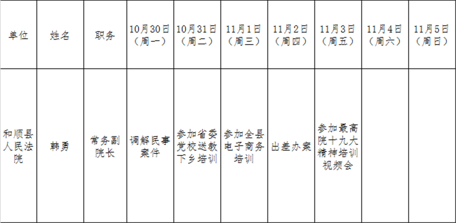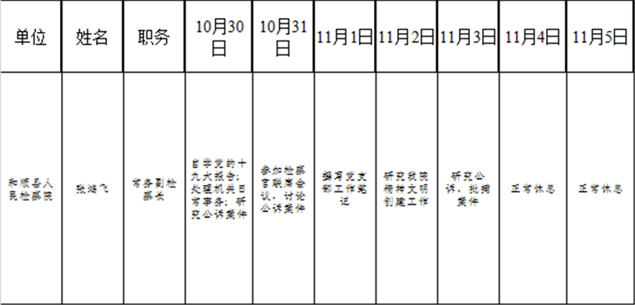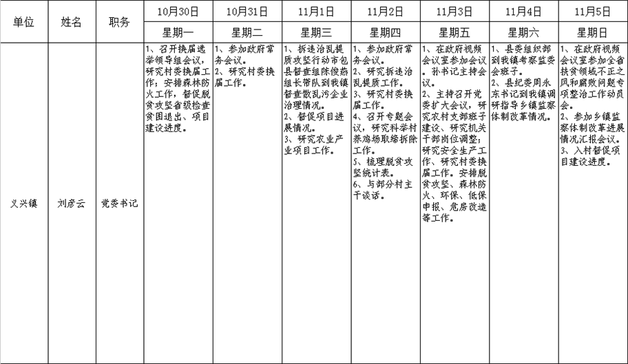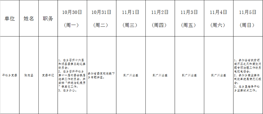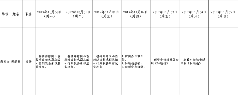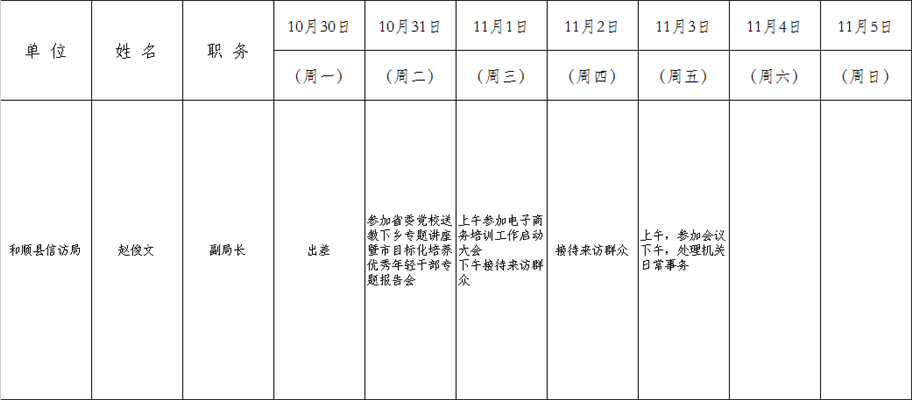 和顺县党委系统领导干部一周工作清单(10月30日—11月5日)