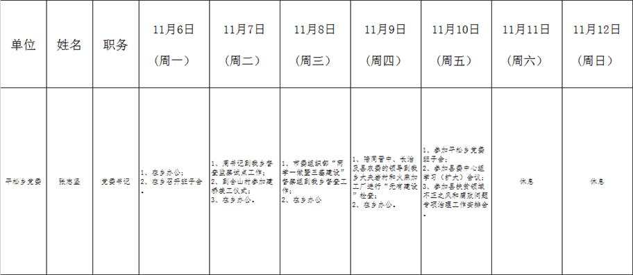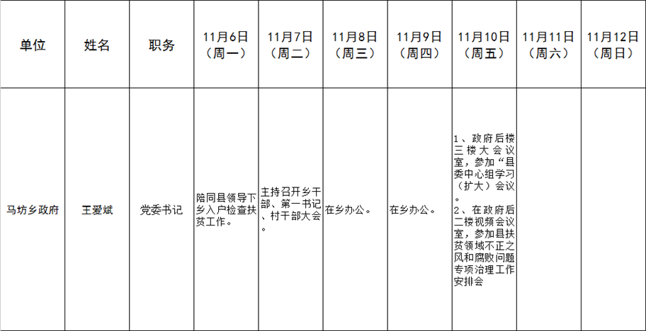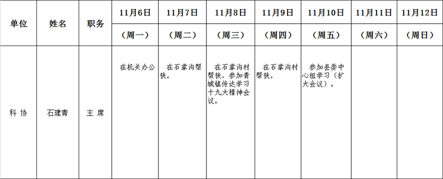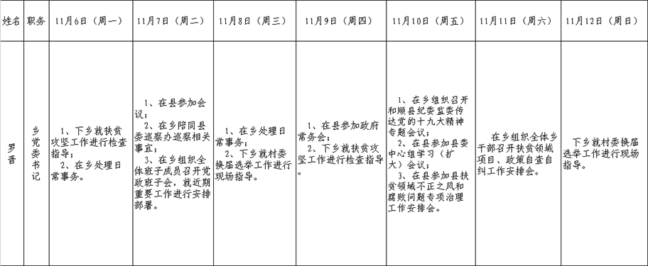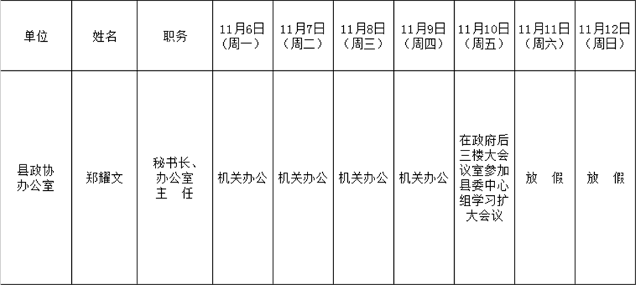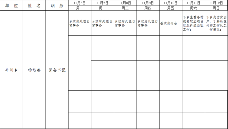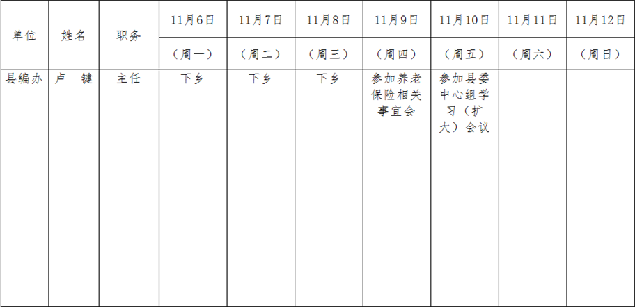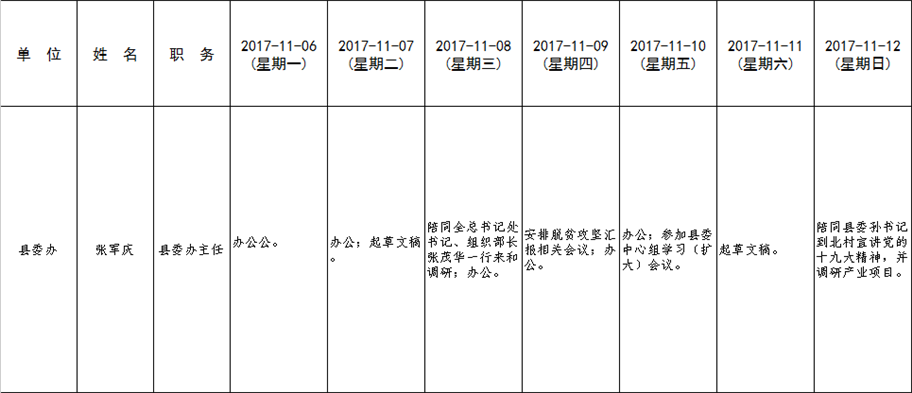 全县领导干部一周工作清单