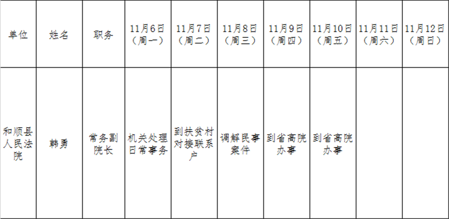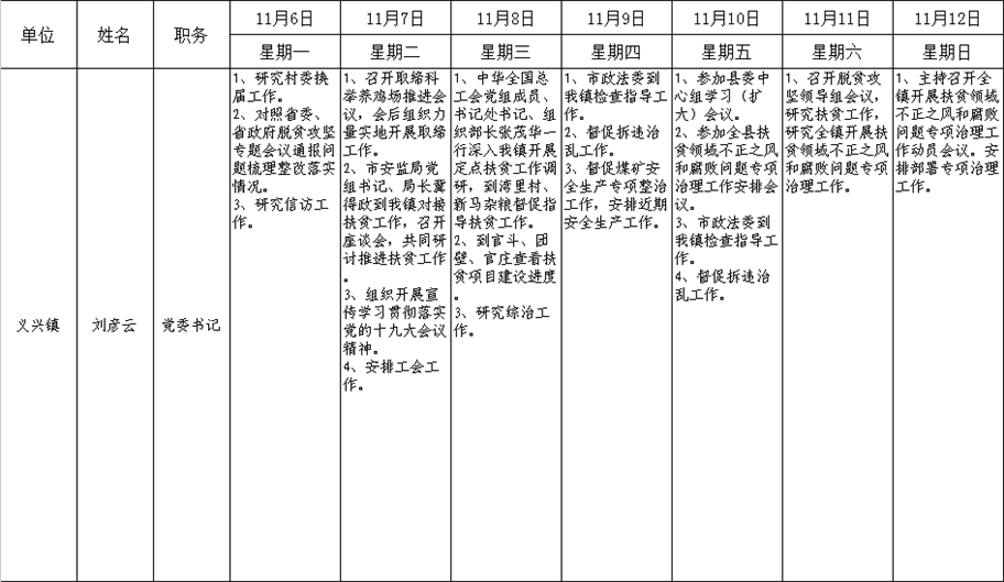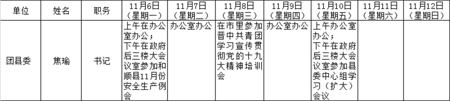 和顺县党委系统领导干部一周工作清单(11月6日—11月12日)