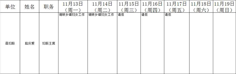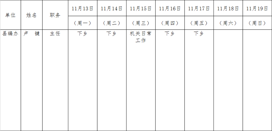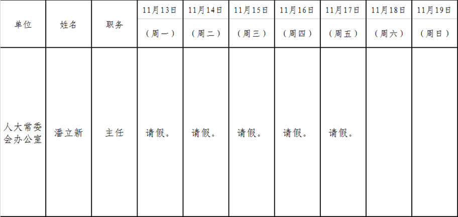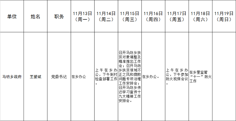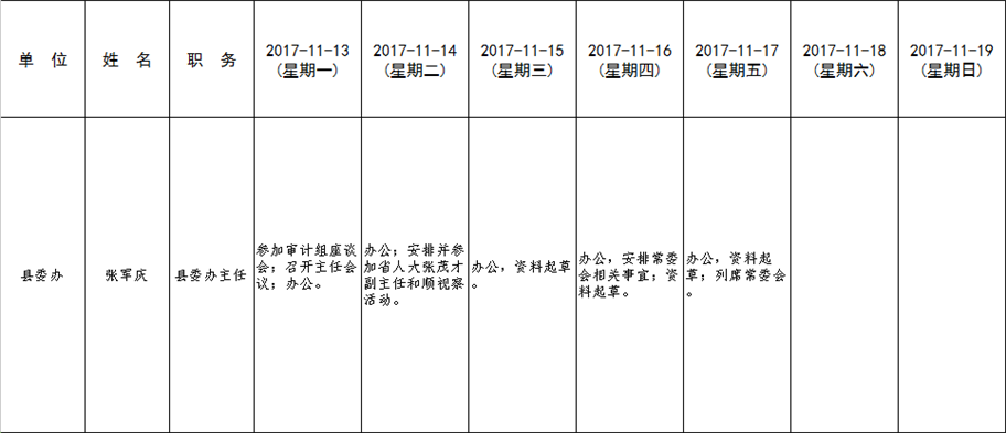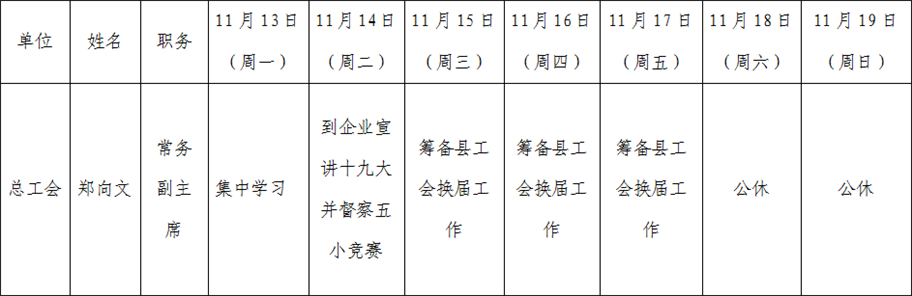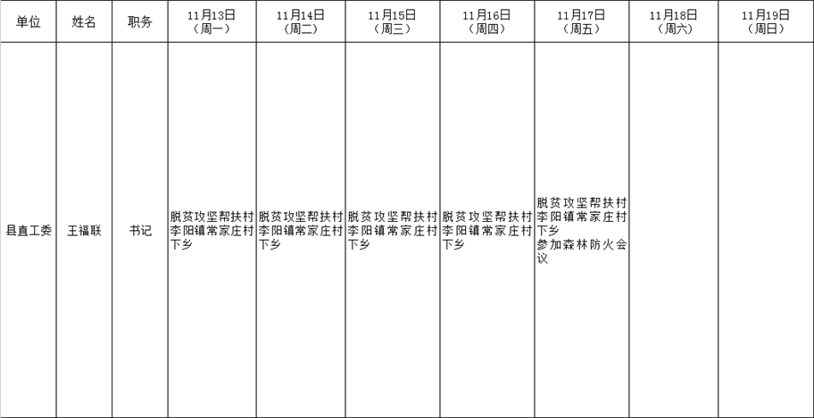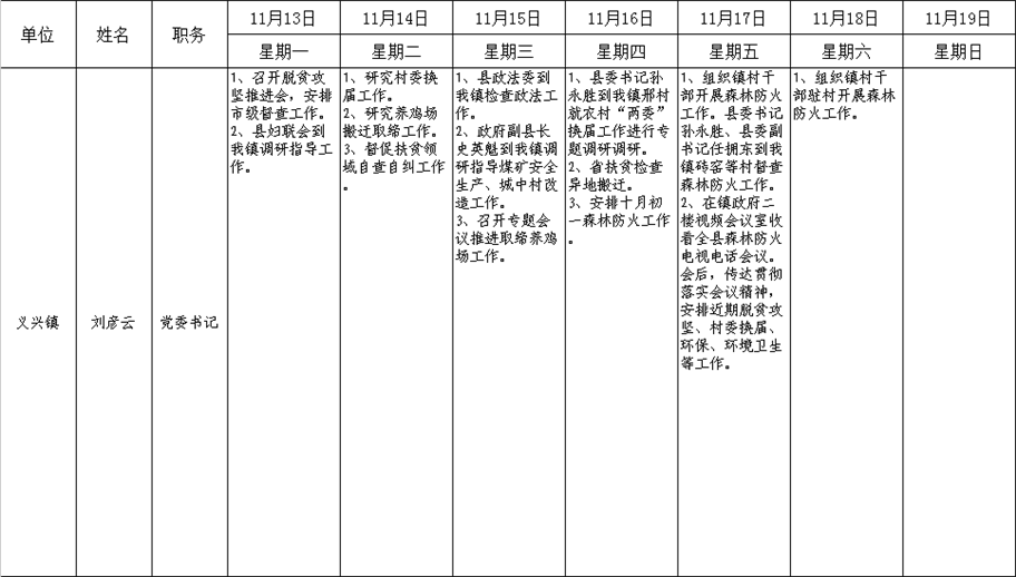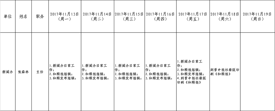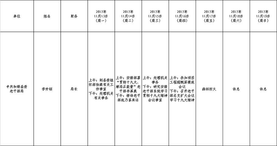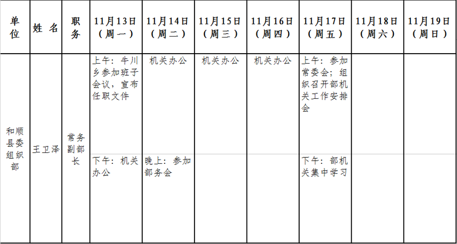 和顺县党委系统领导干部一周工作清单(11月13日—11月19日)