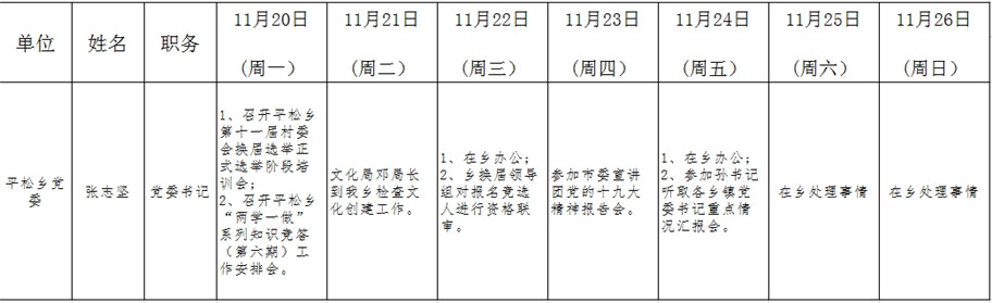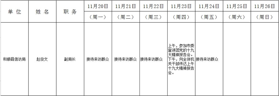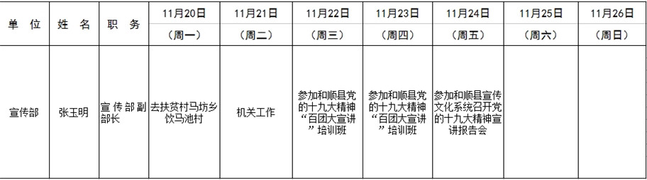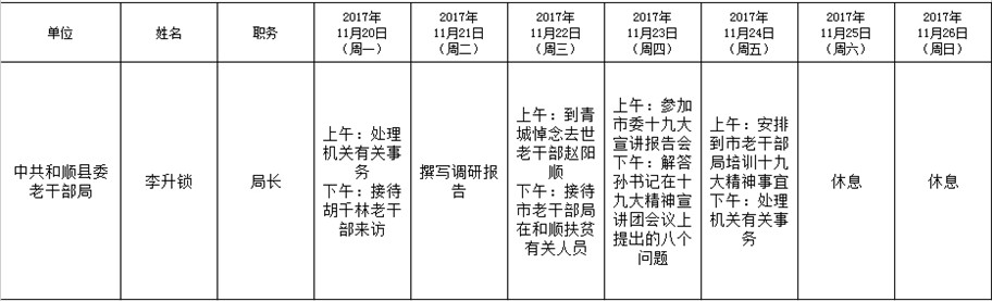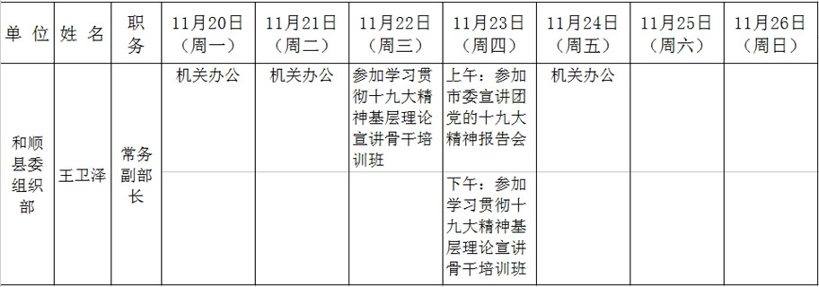 和顺县党委系统领导干部一周工作清单(11月20日—11月26日)
