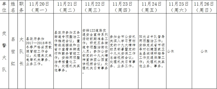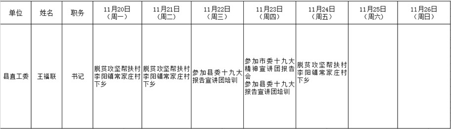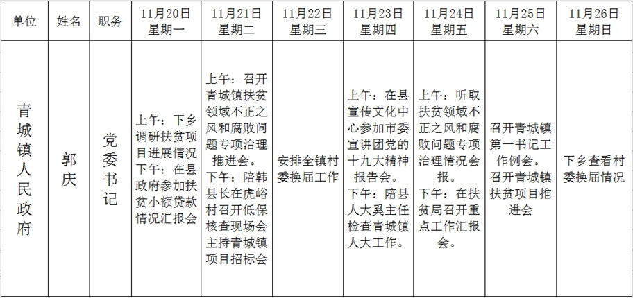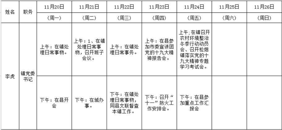 全县领导干部一周工作清单