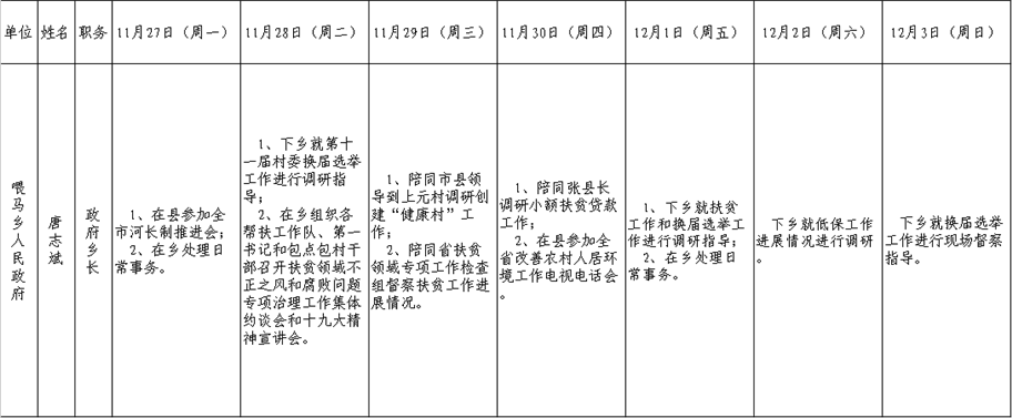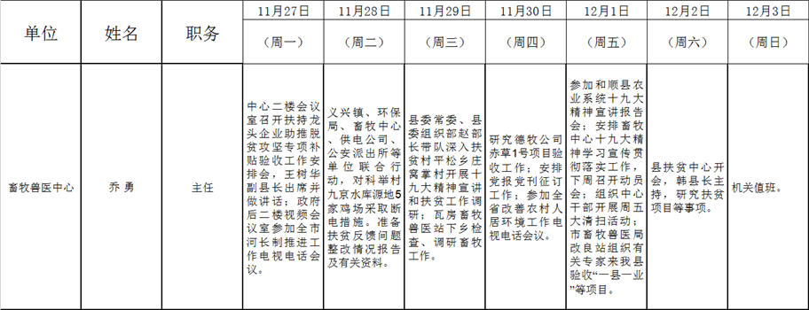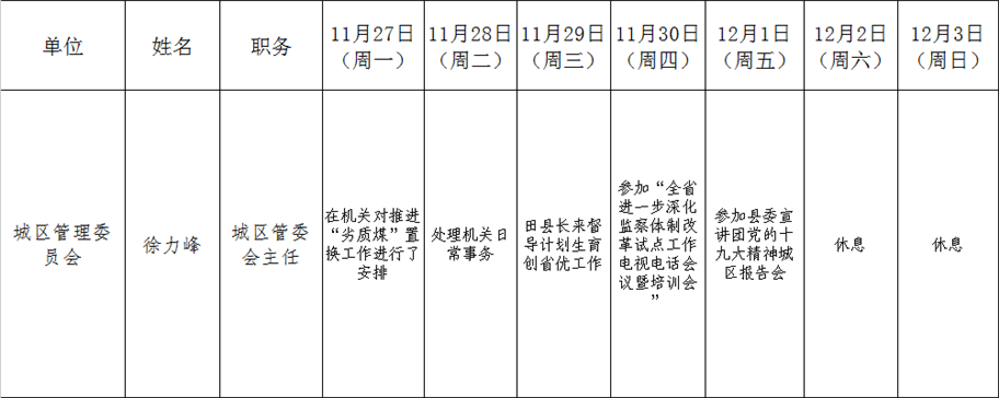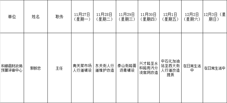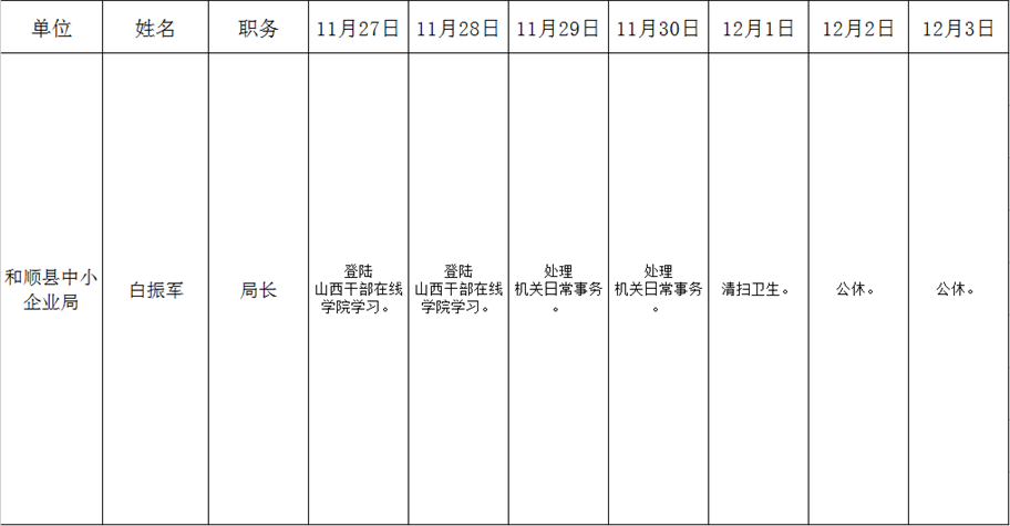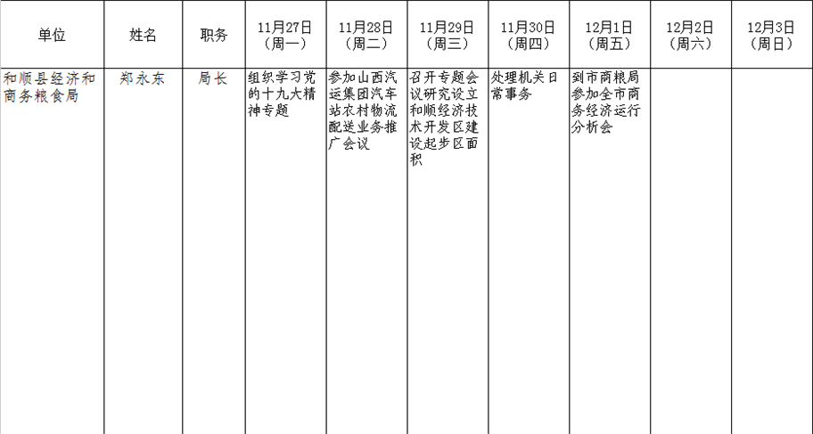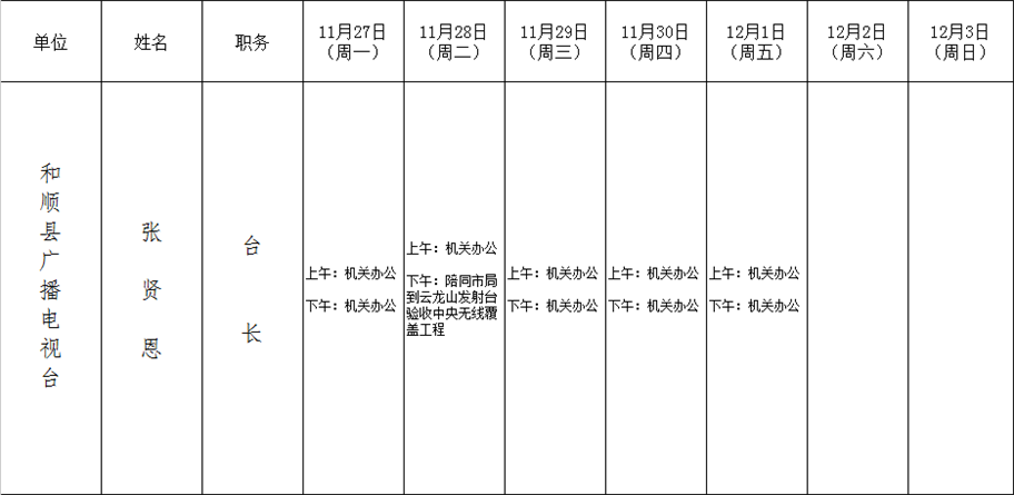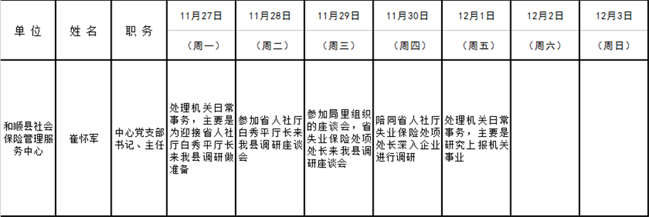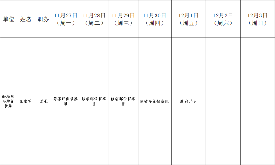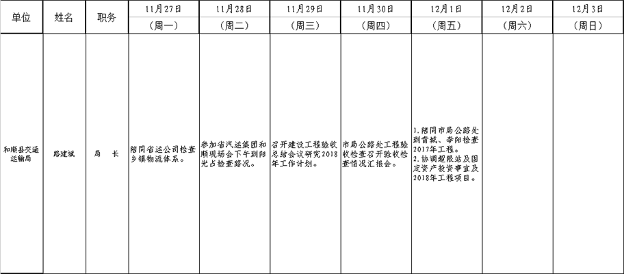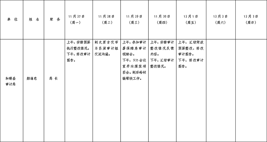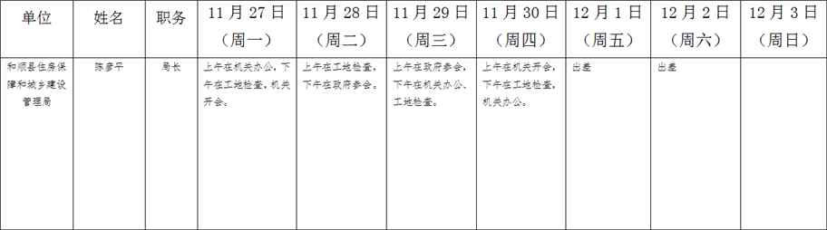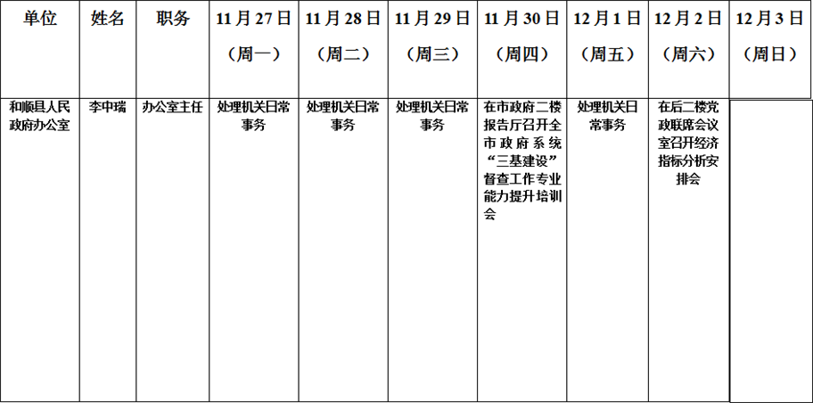 和顺县政府系统领导干部一周工作清单(11月27日—12月3日)