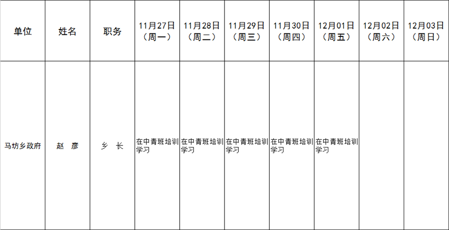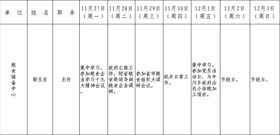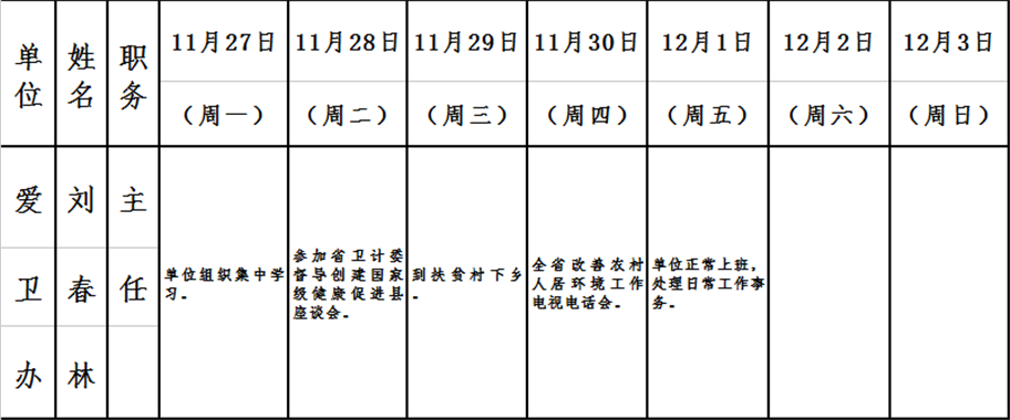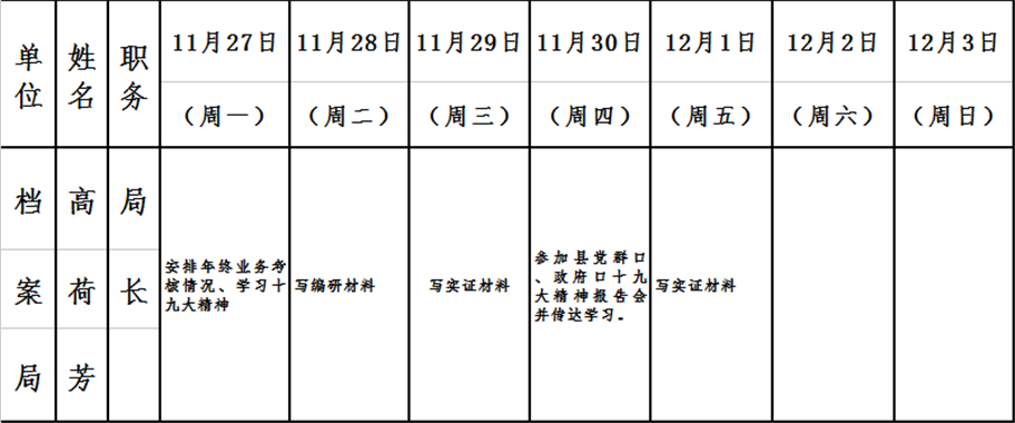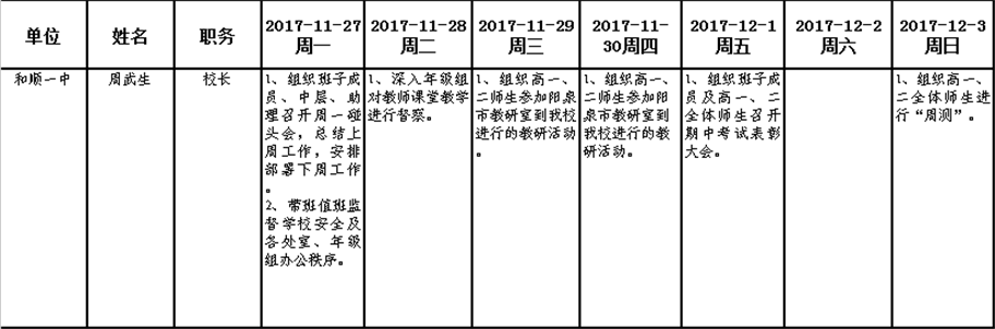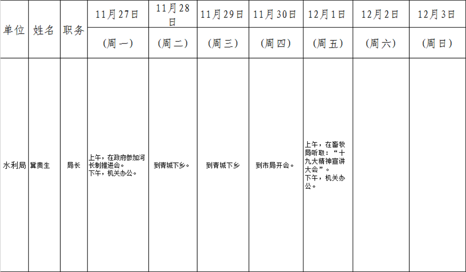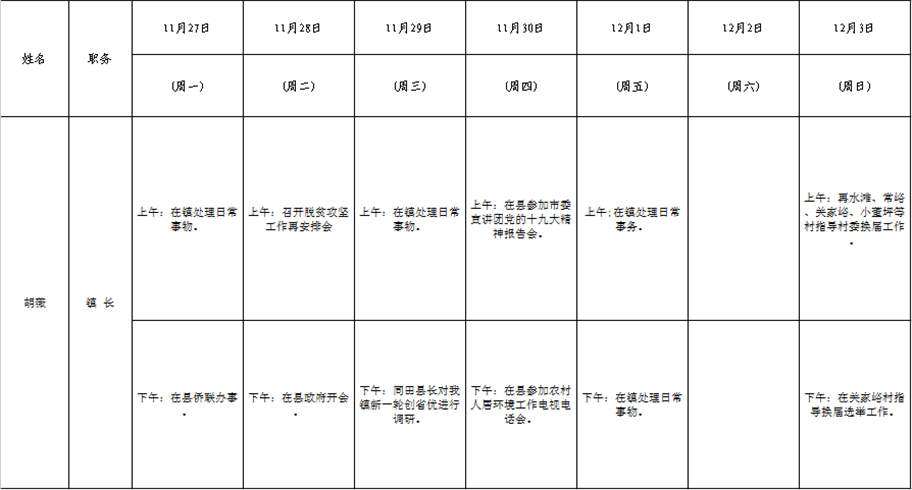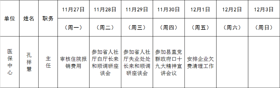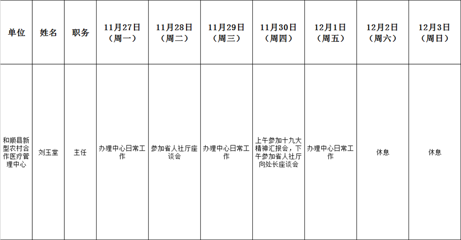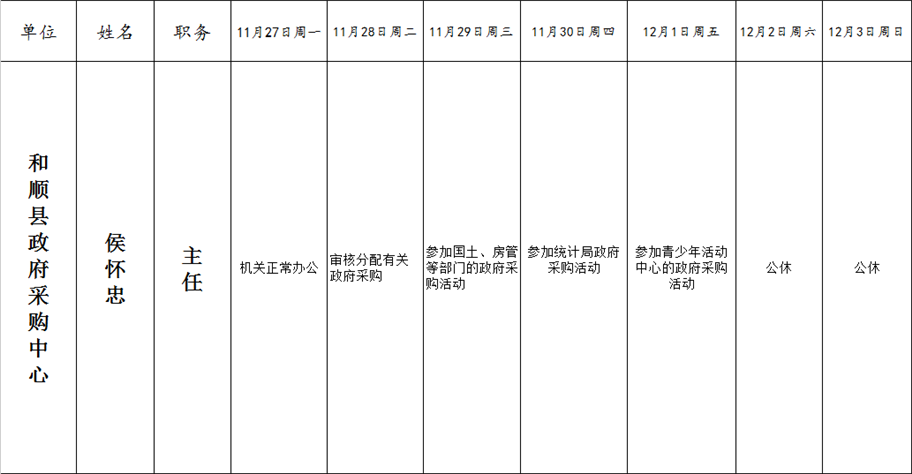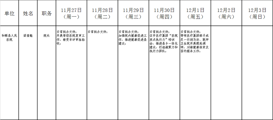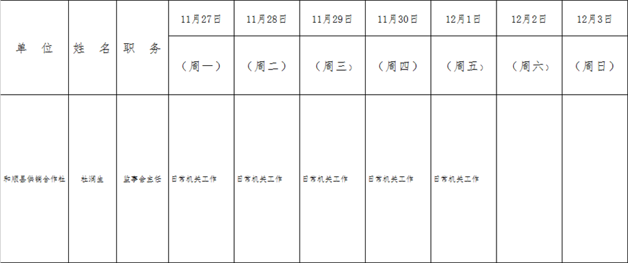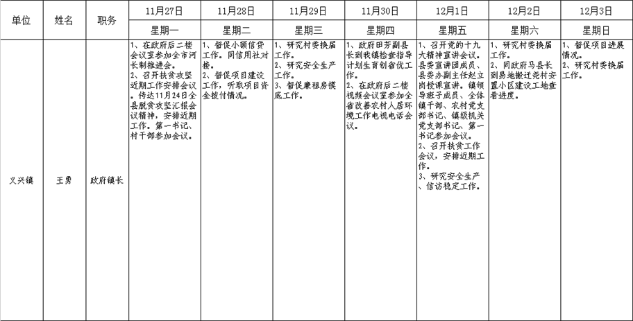 和顺县政府系统领导干部一周工作清单(11月27日—12月3日)