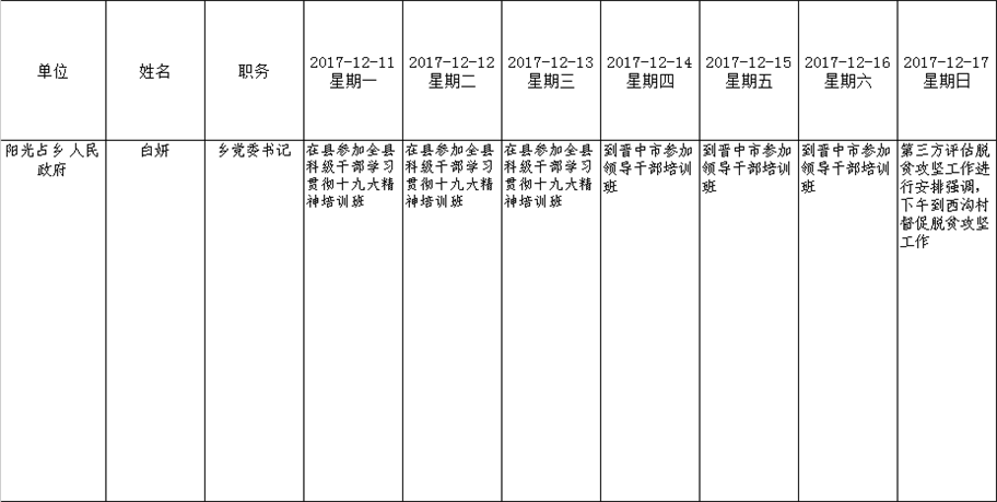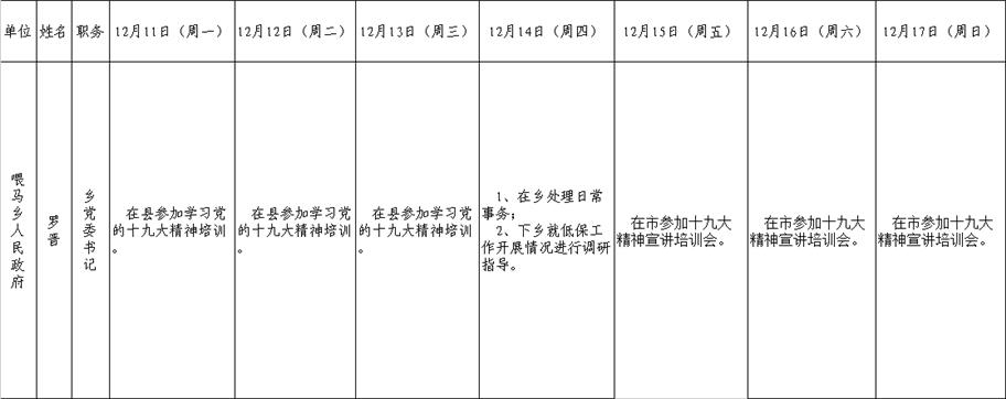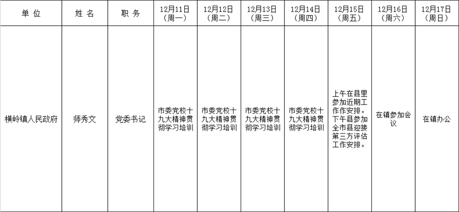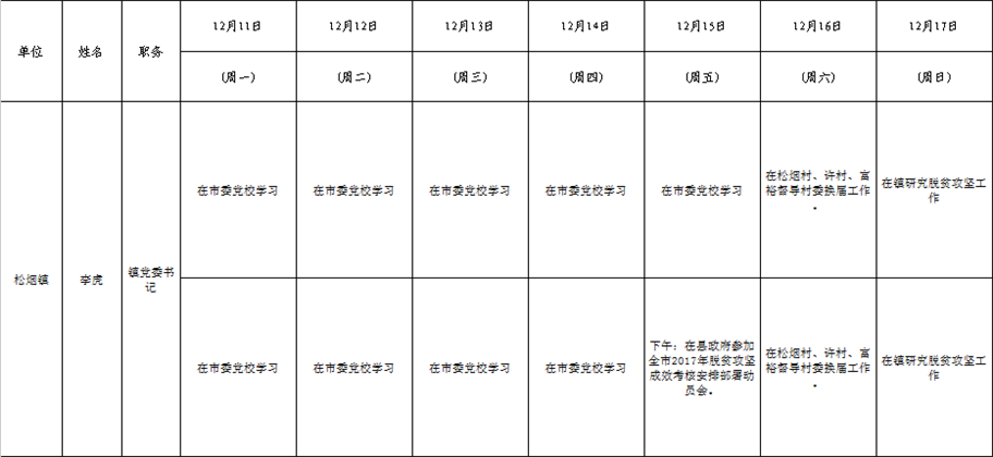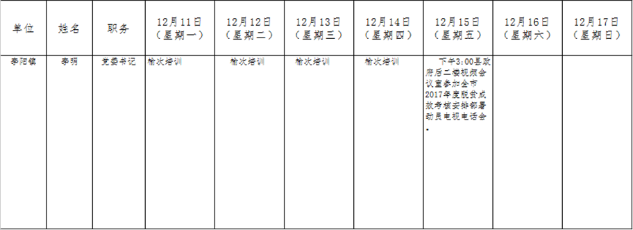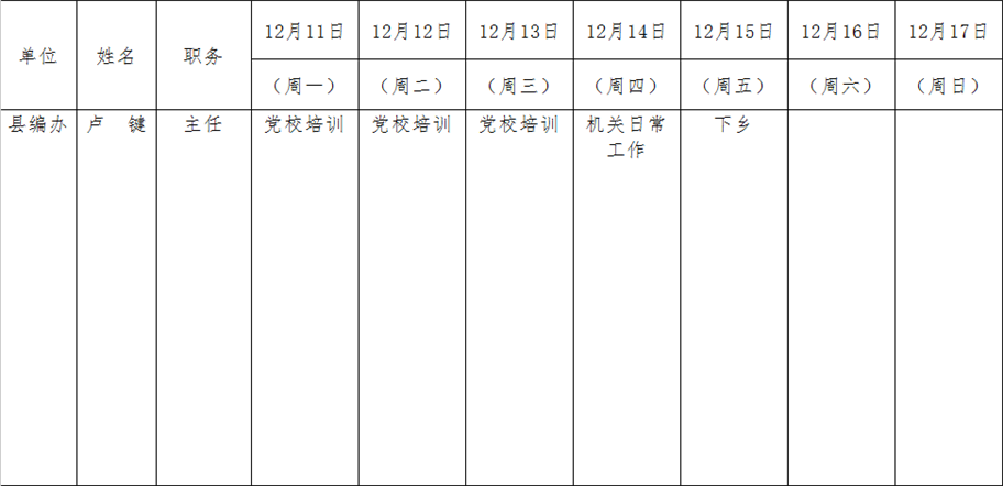 全县领导干部一周工作清单