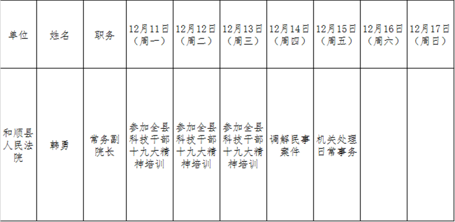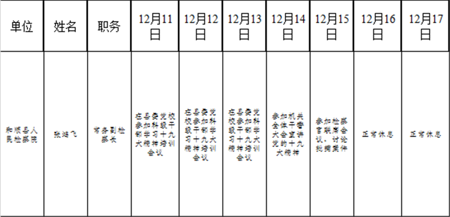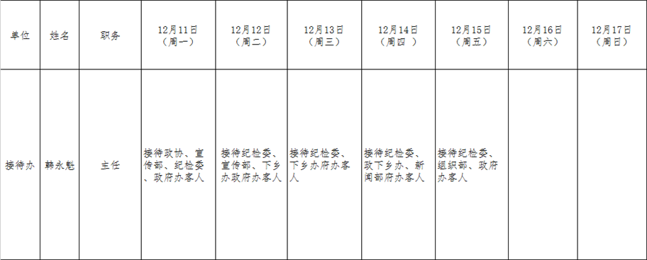 和顺县党委系统领导干部一周工作清单(12月11日—12月17日)