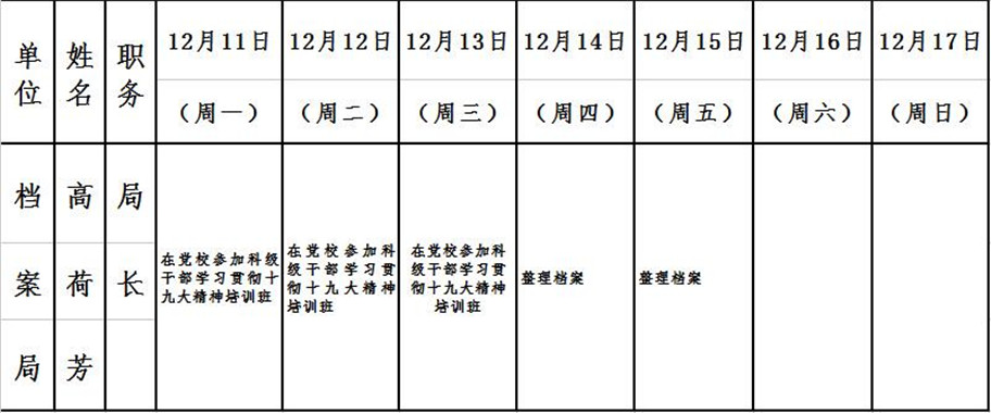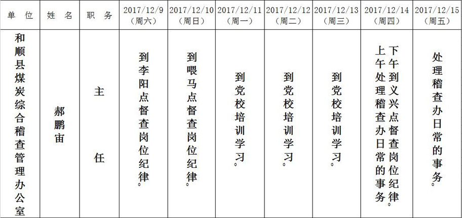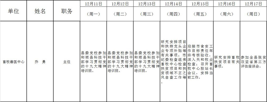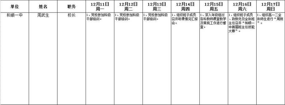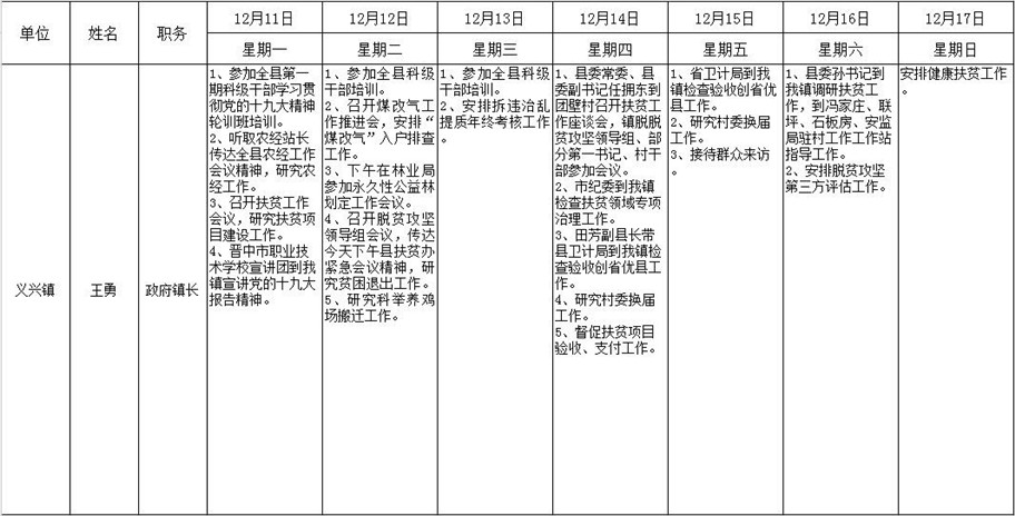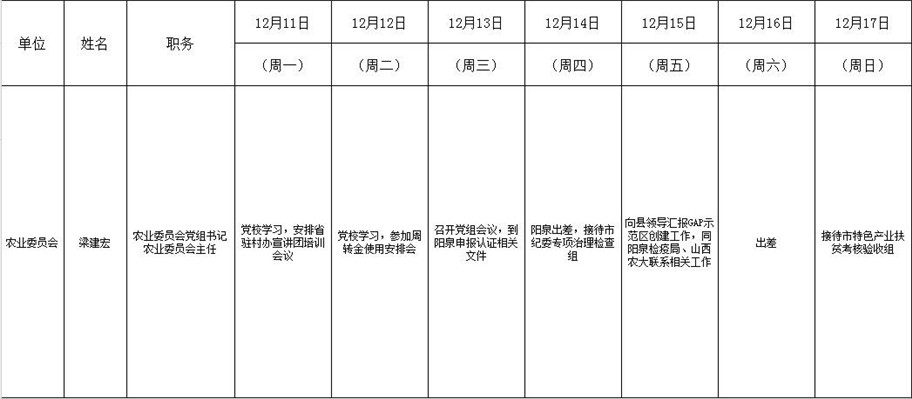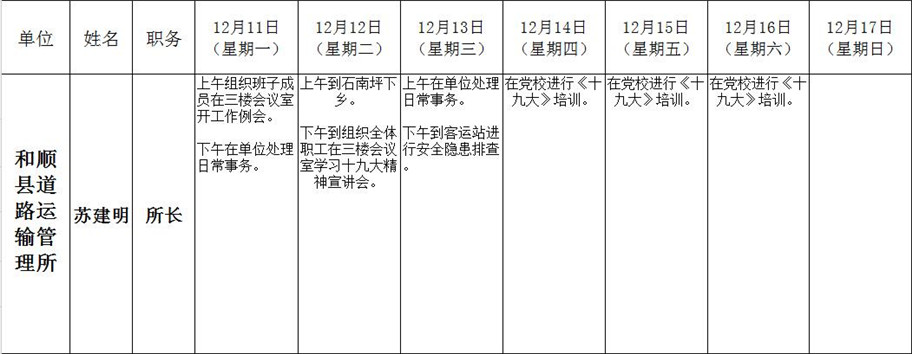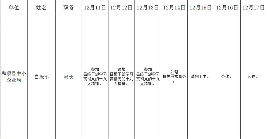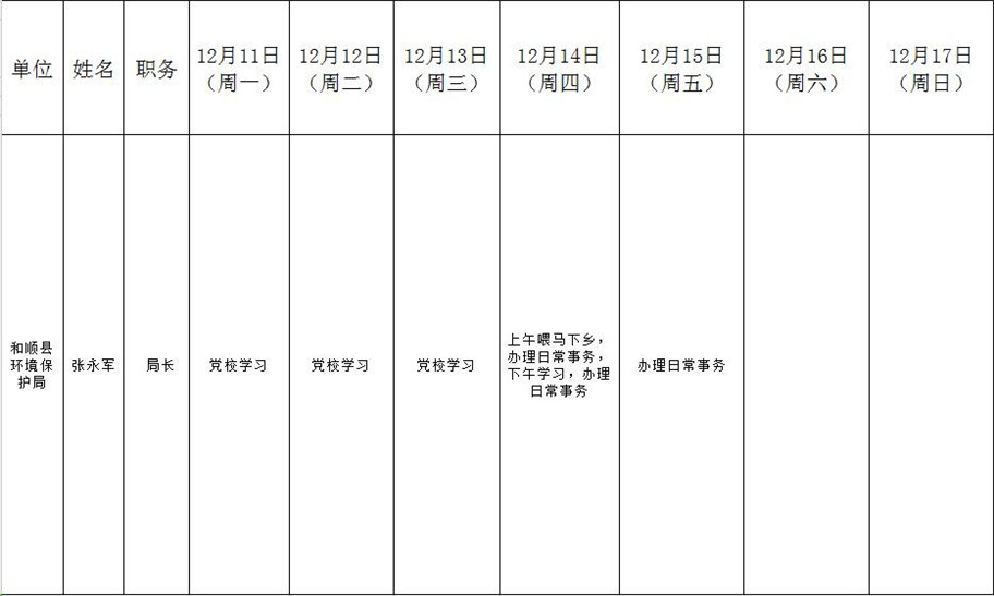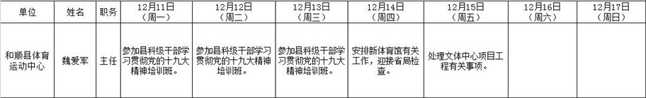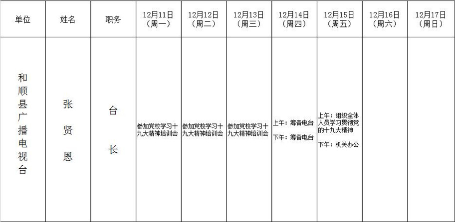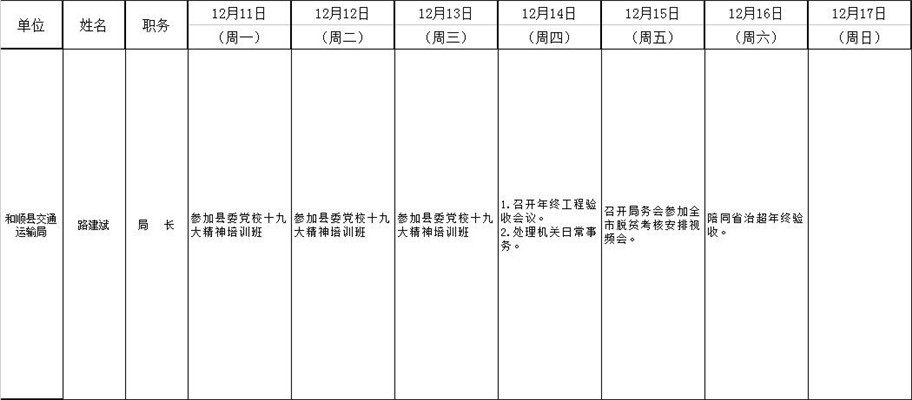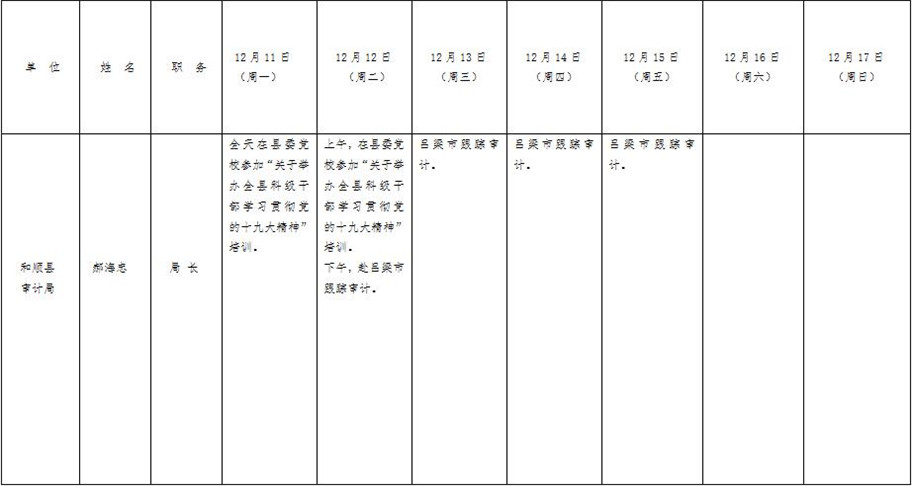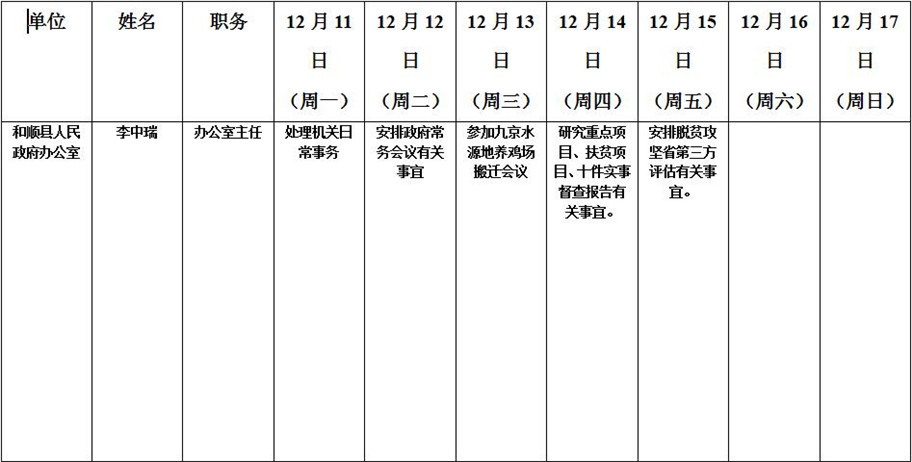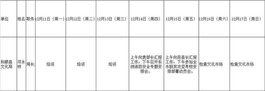 和顺县政府系统领导干部一周工作清单(12月11日—12月17日)