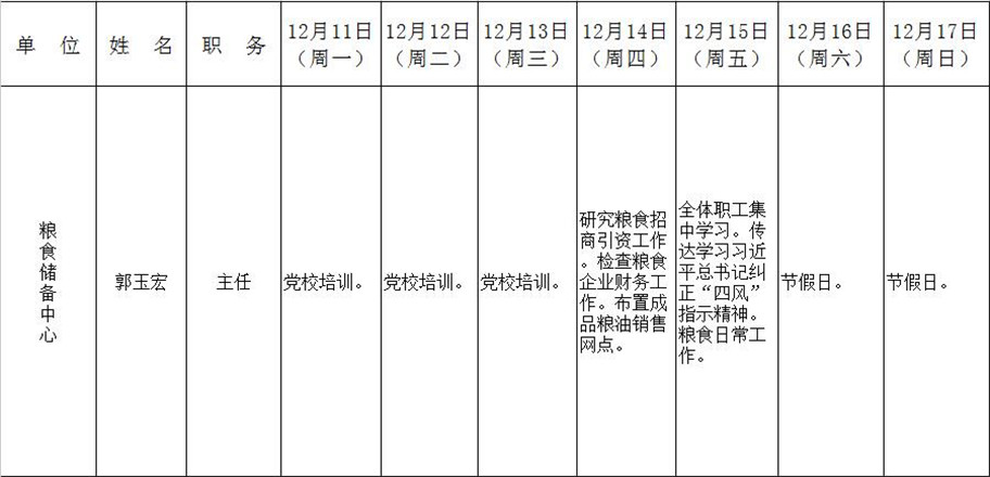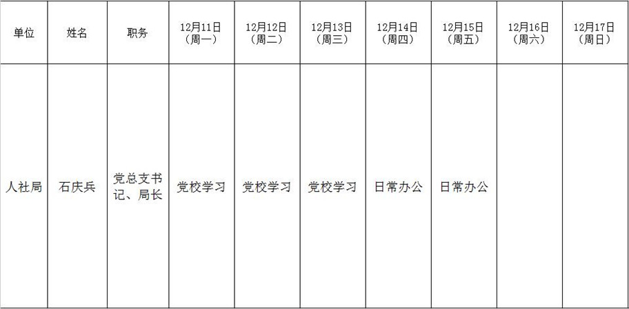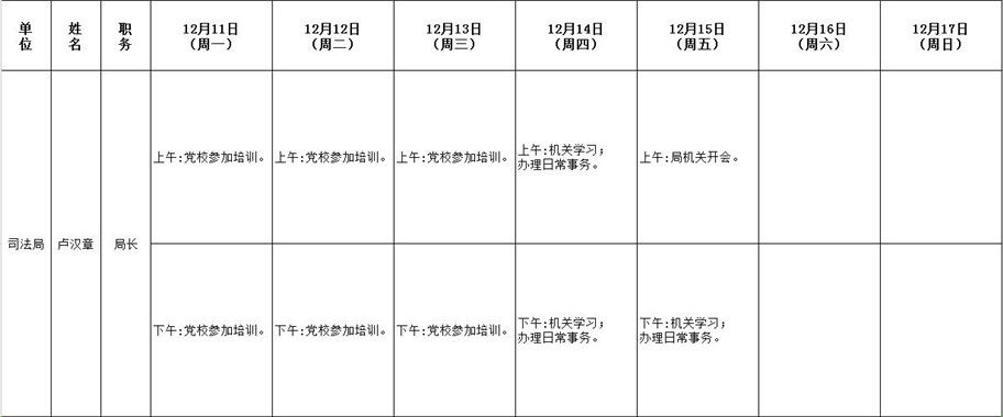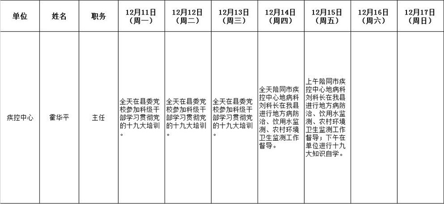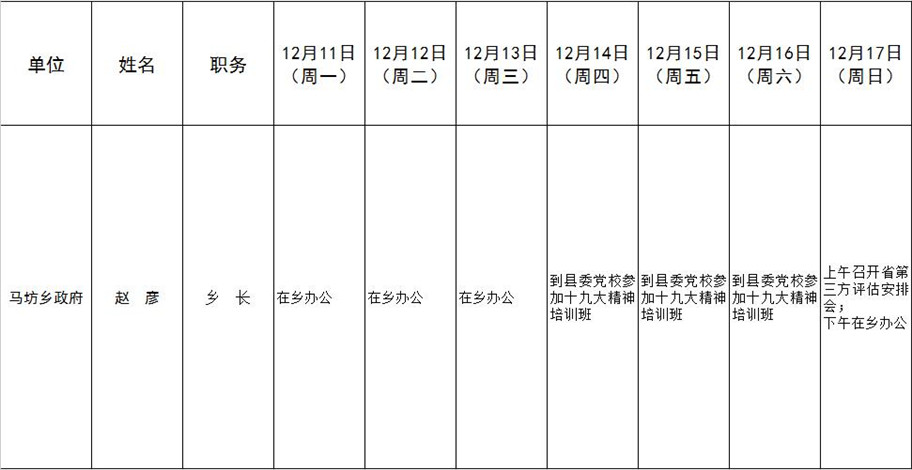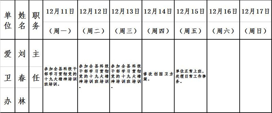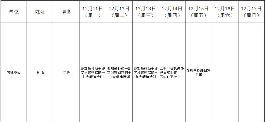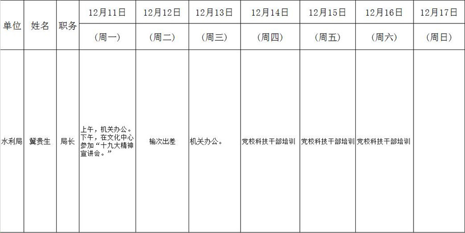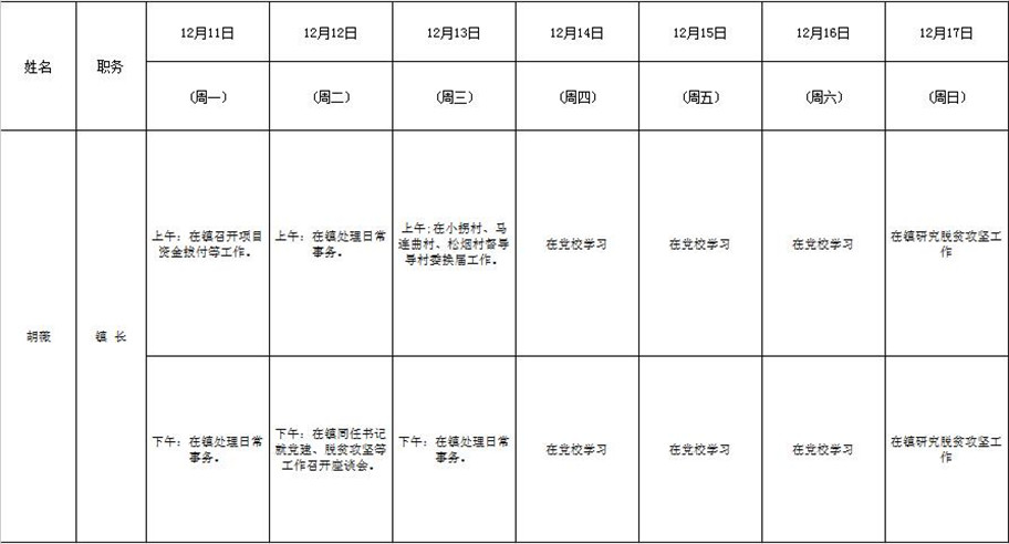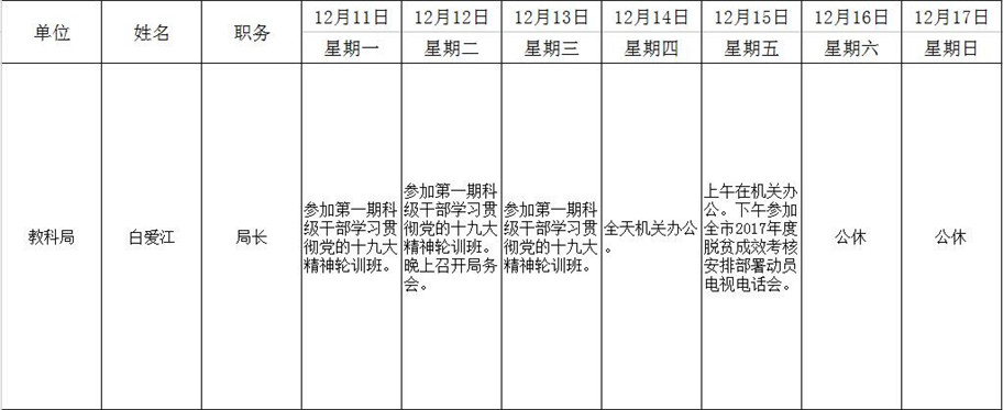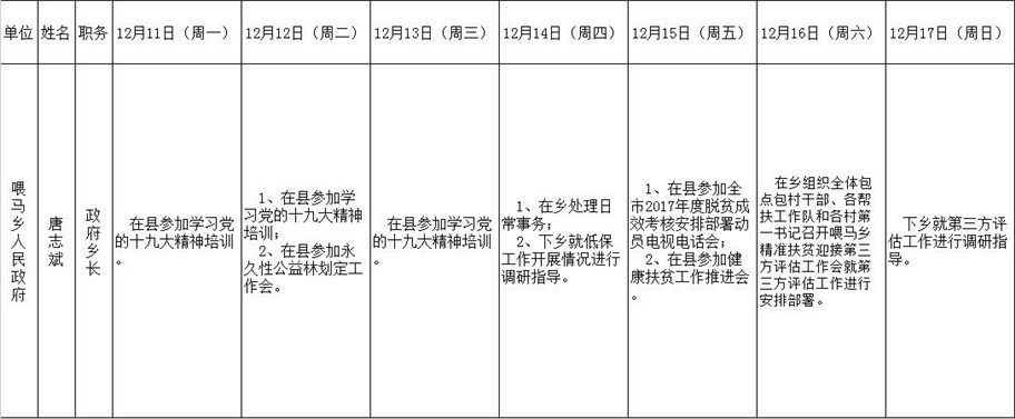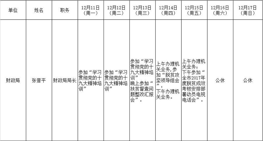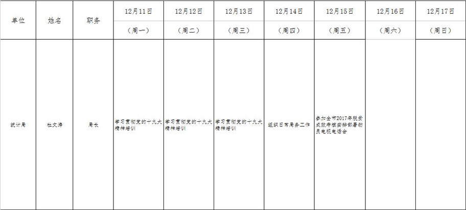 全县领导干部一周工作清单