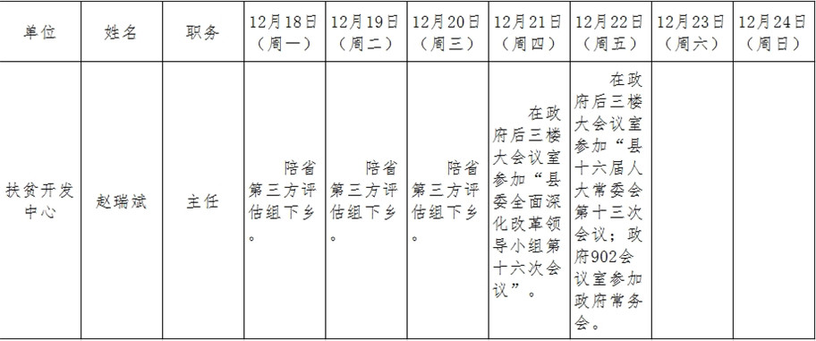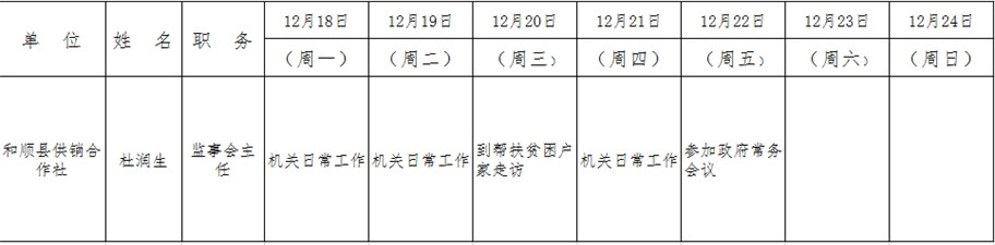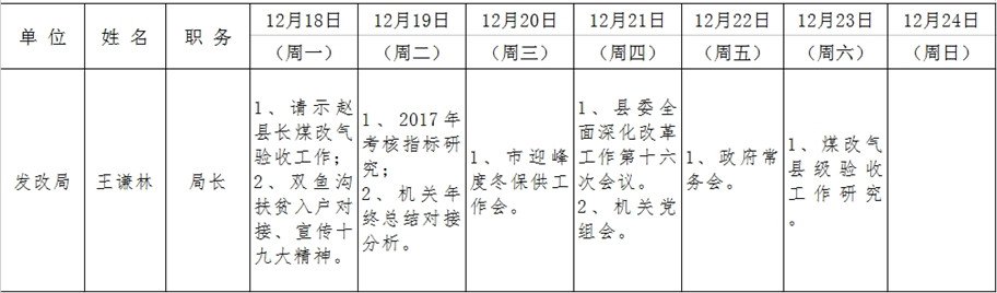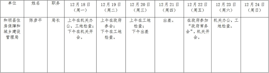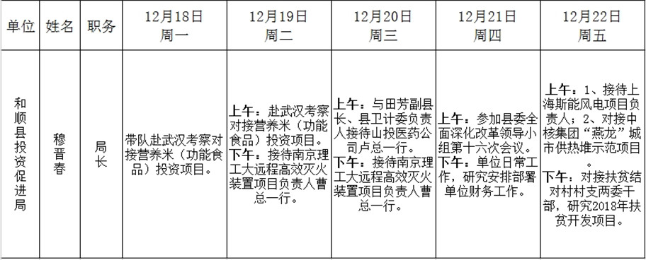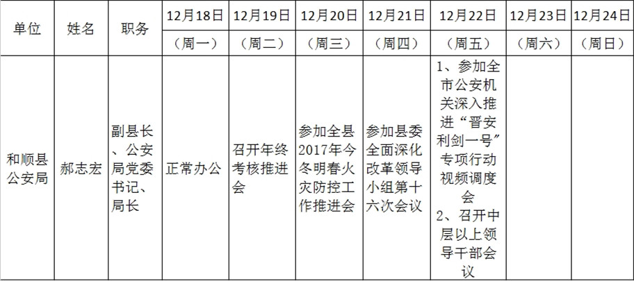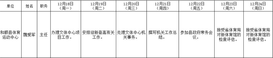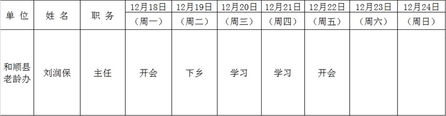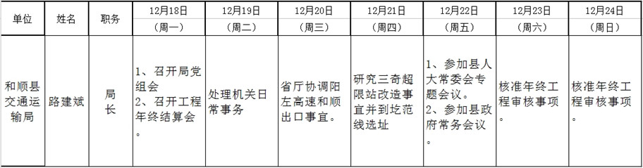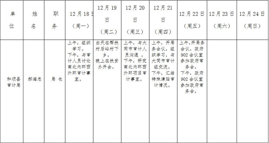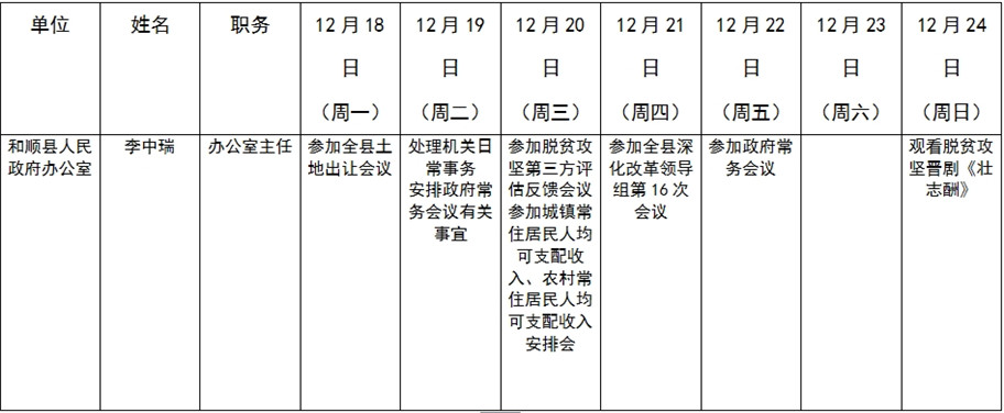 和顺县政府系统领导干部一周工作清单(12月18日—12月24日)