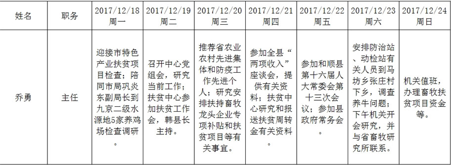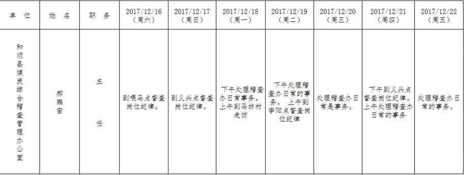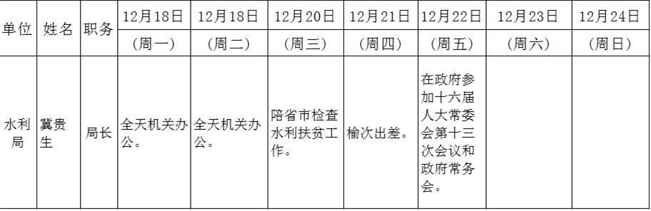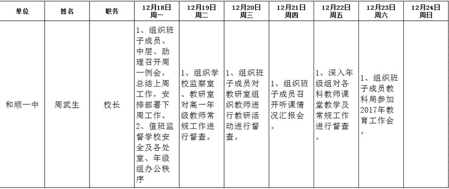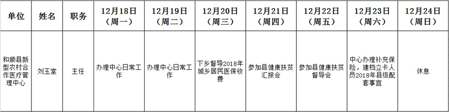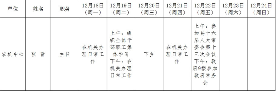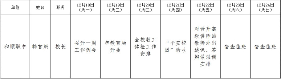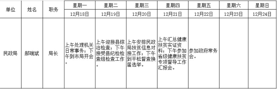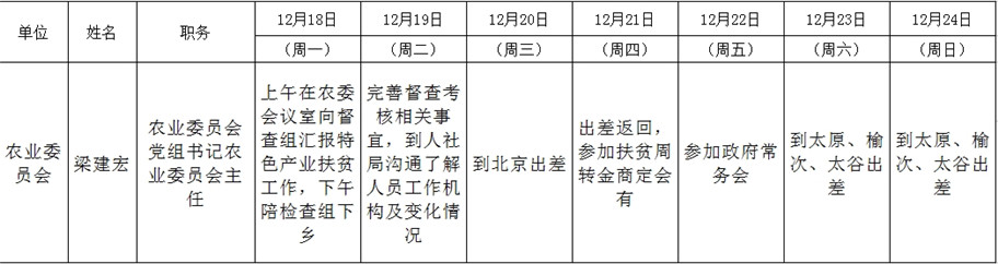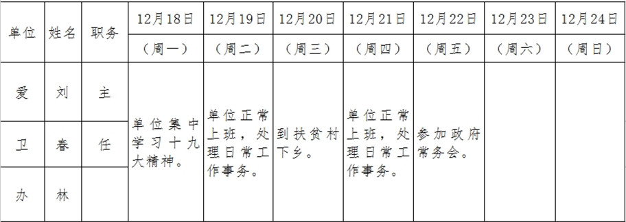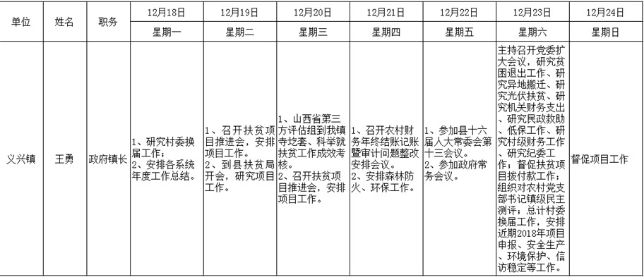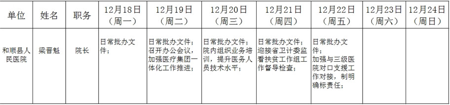 和顺县政府系统领导干部一周工作清单(12月18日—12月24日)