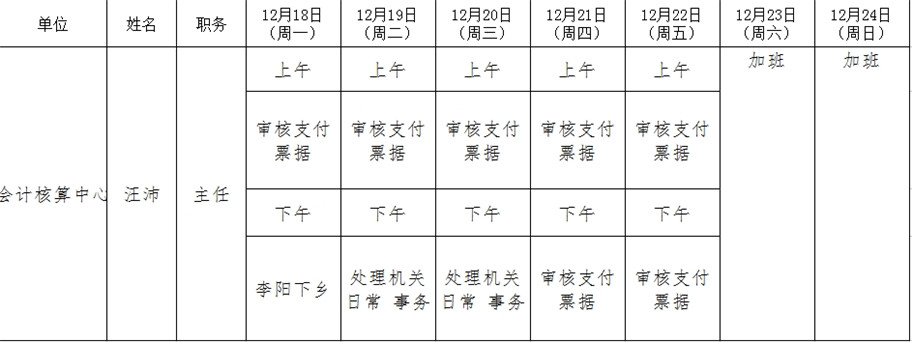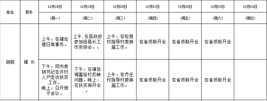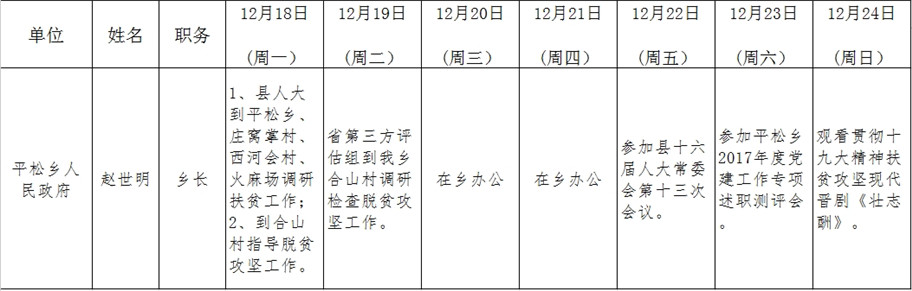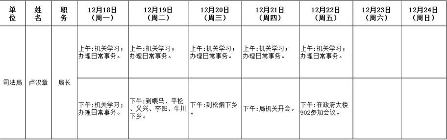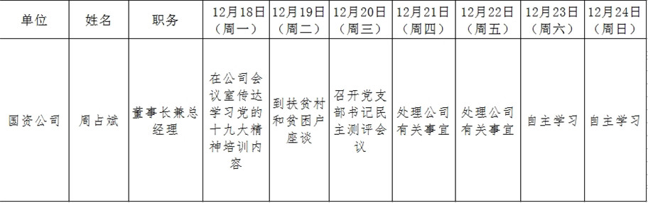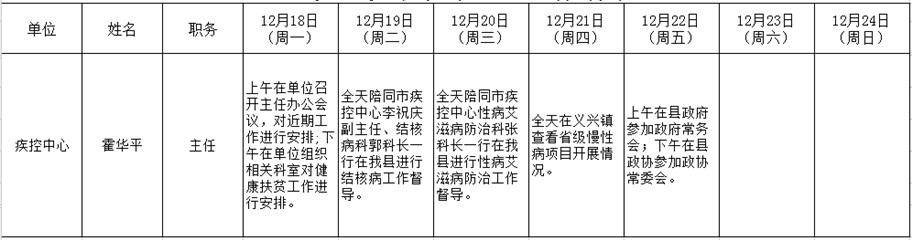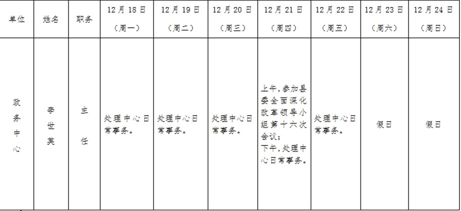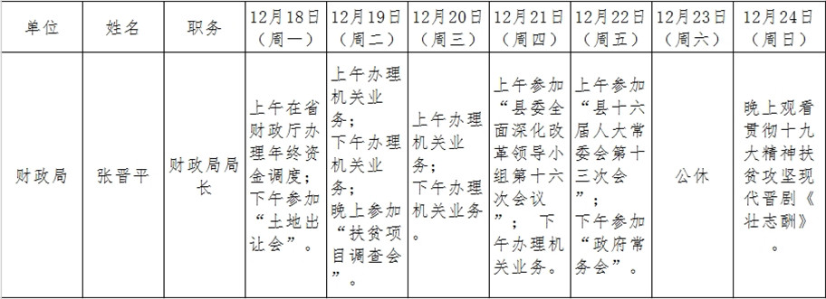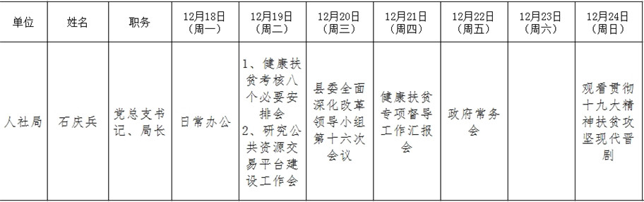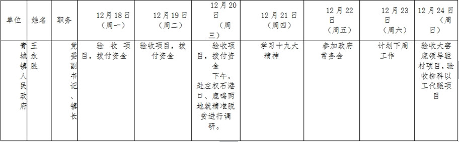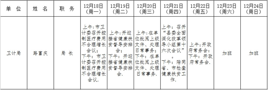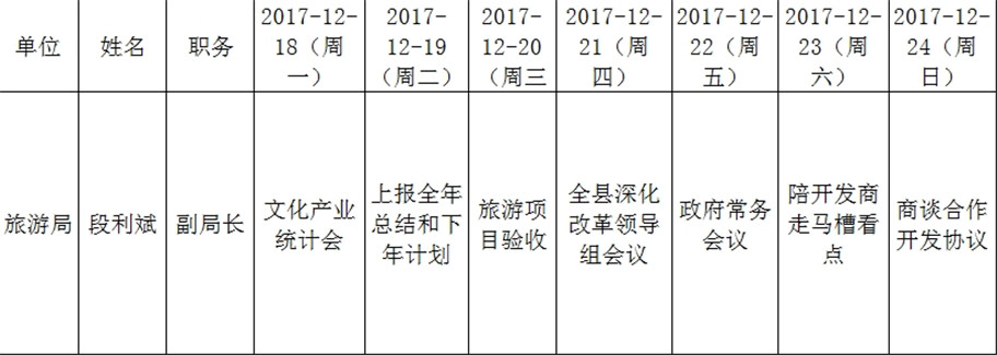 全县领导干部一周工作清单