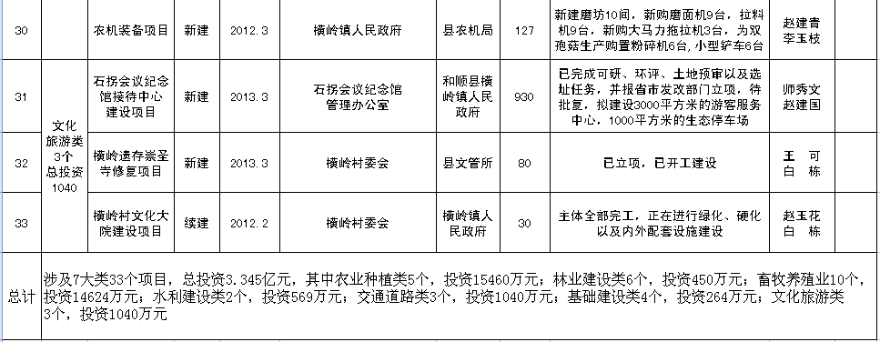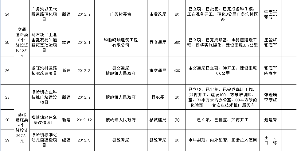 横岭镇2013年重点项目建设情况