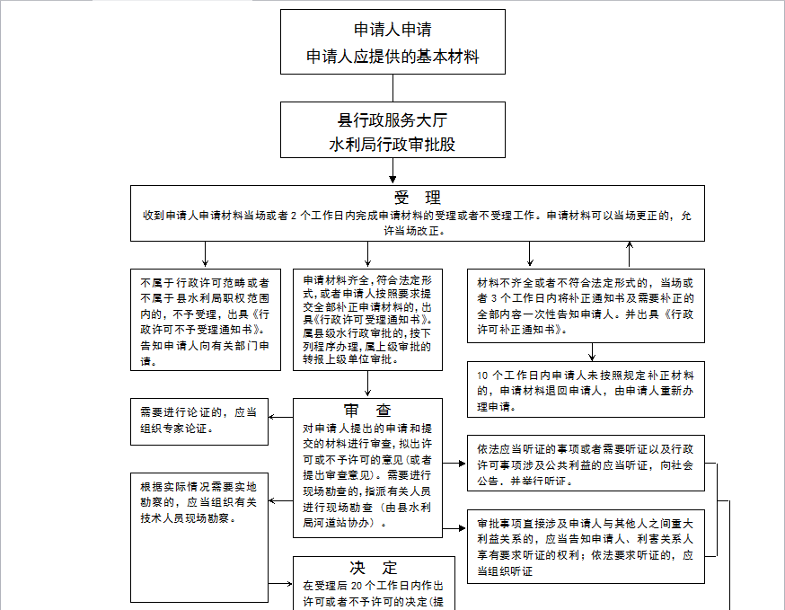 和顺县政务中心水利局窗口入河湖排污口的设置和扩大流程图