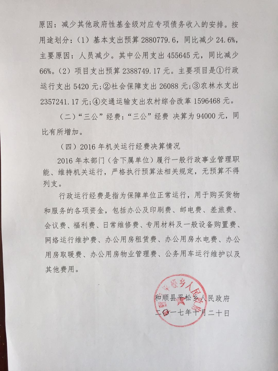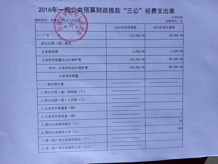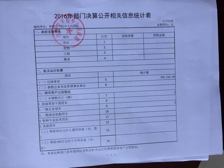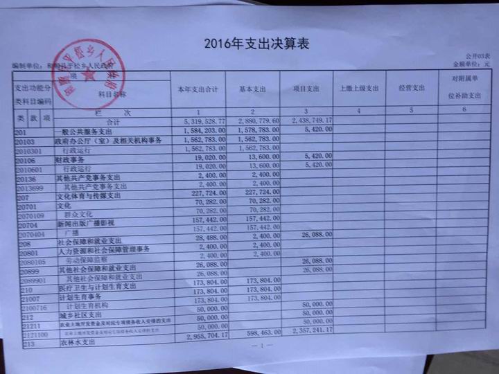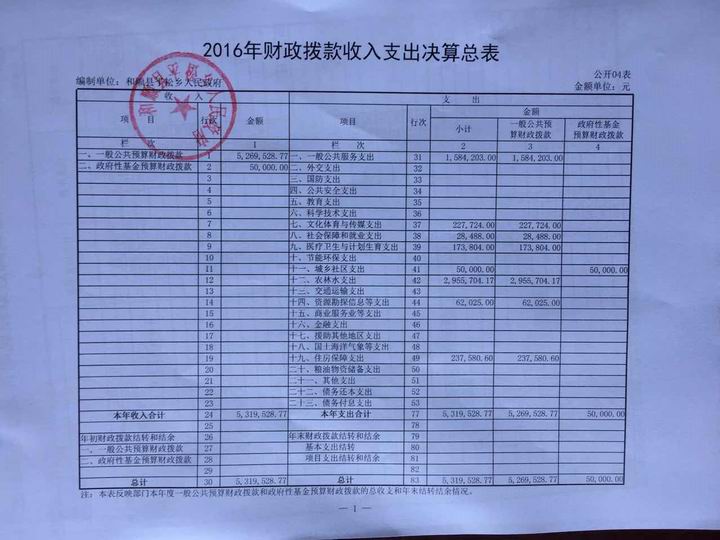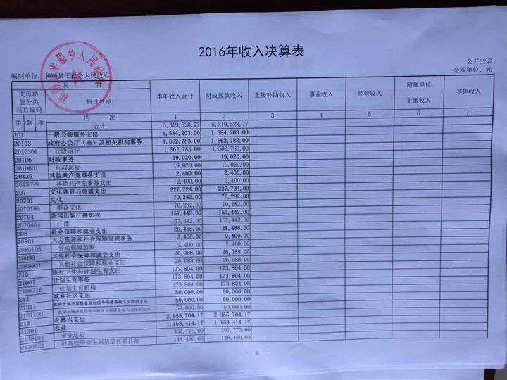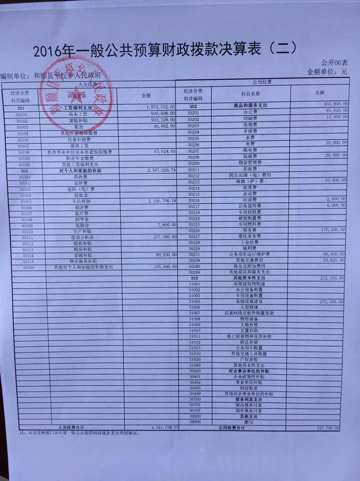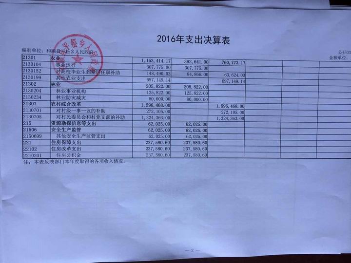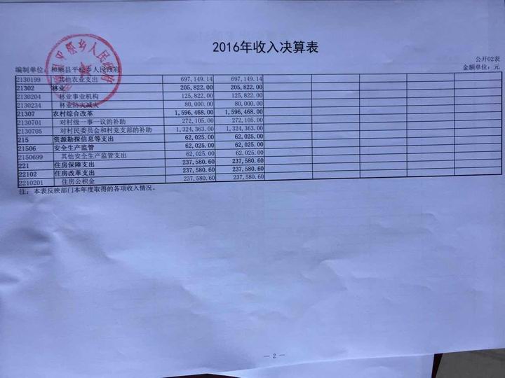 平松乡2016年决算公开
