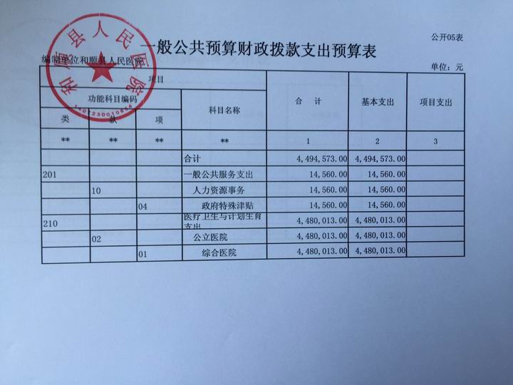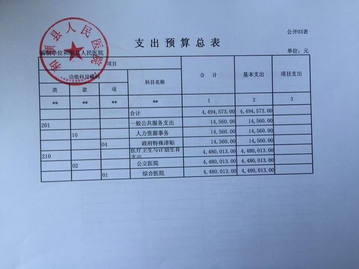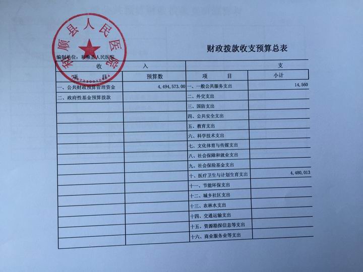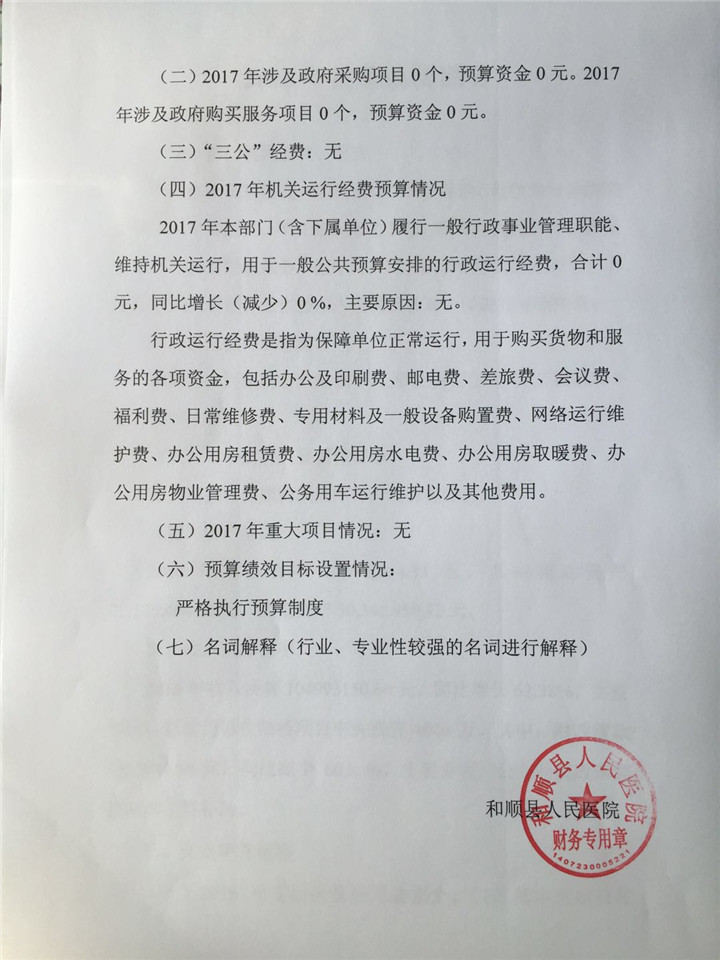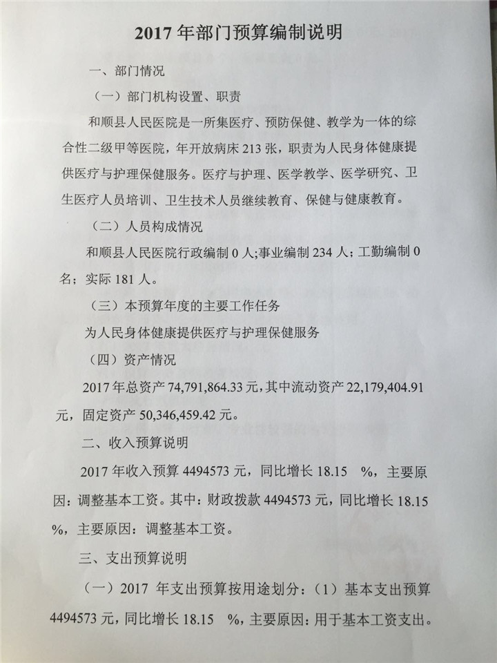 和顺县人民医院2017年预算公开