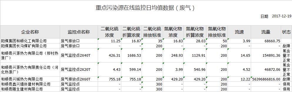 重点污染源在线监控日均值数据(废气)
