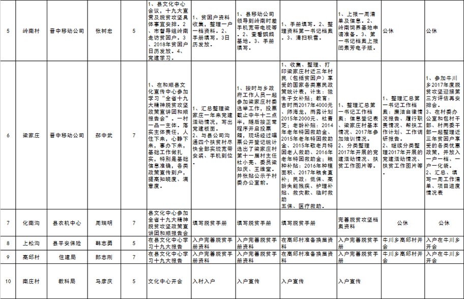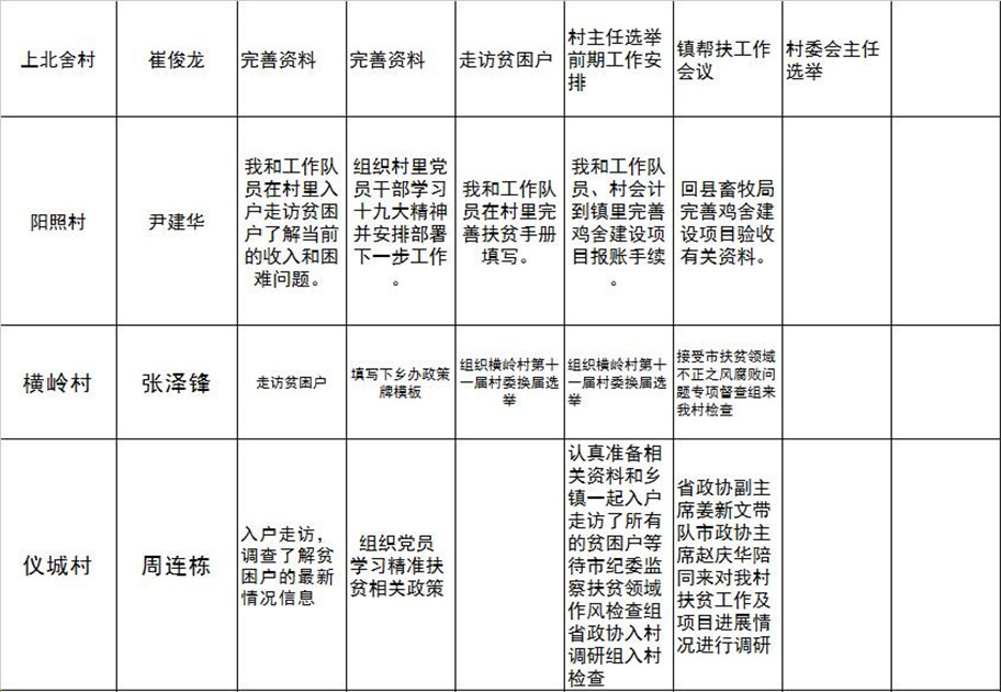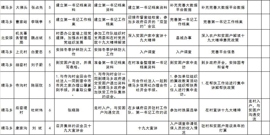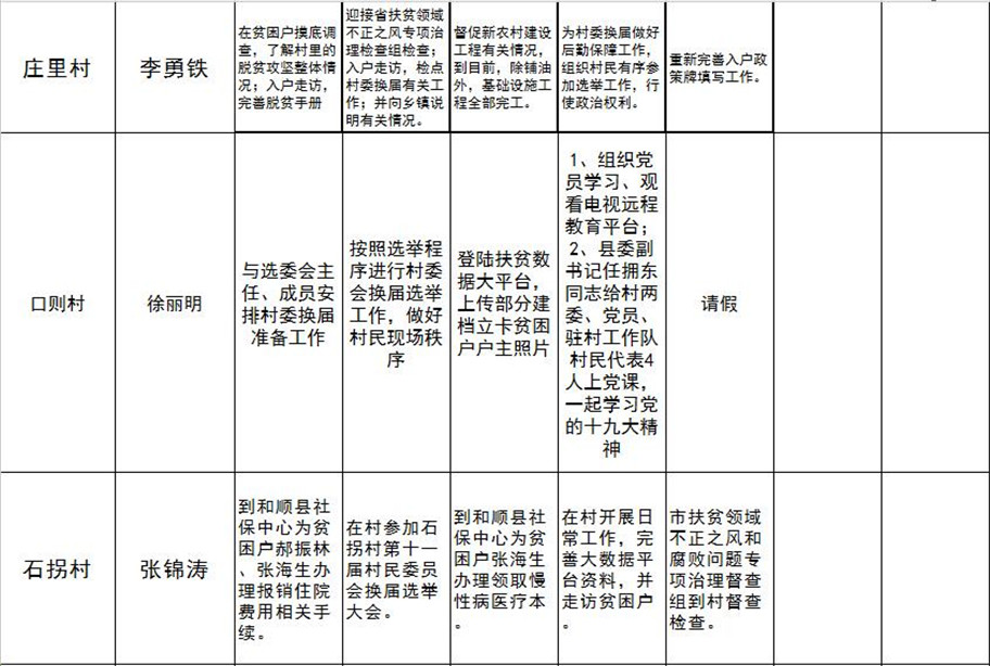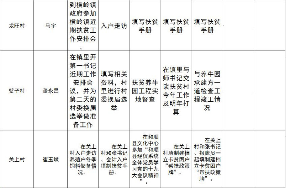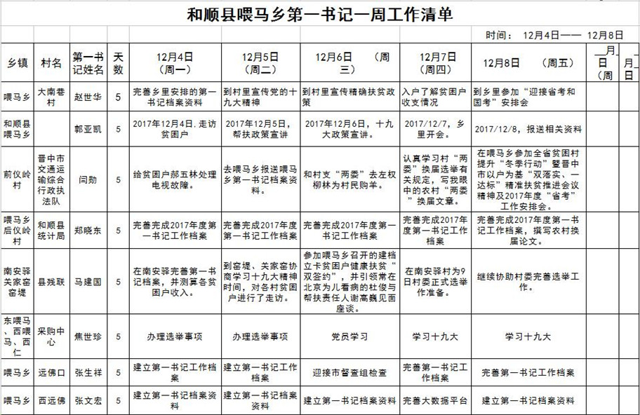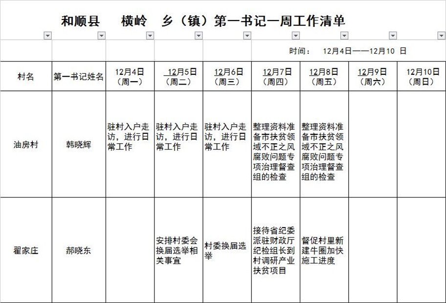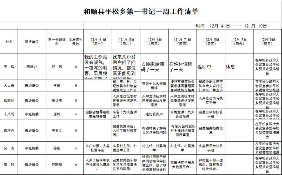 和顺县第一书记一周工作清单(12月04日—12月10日)