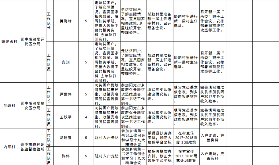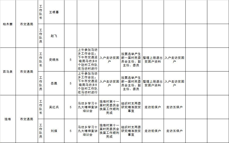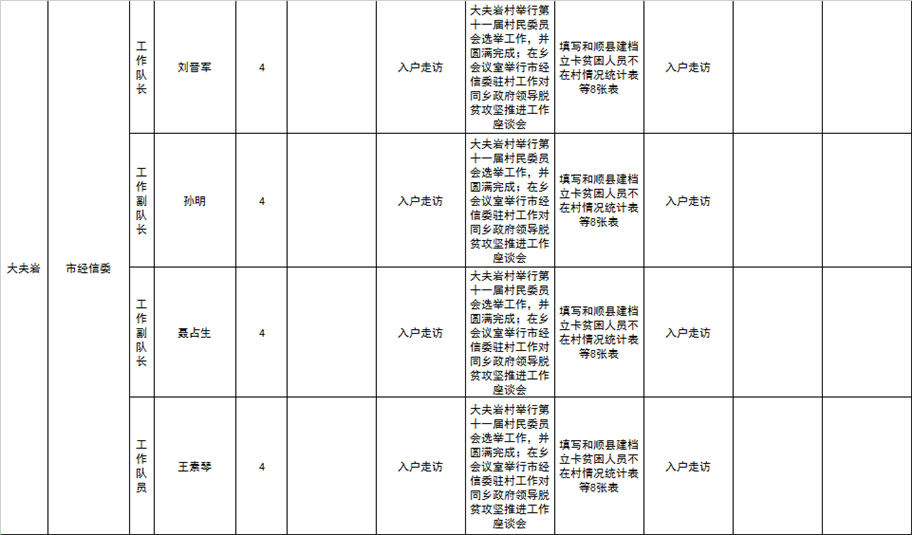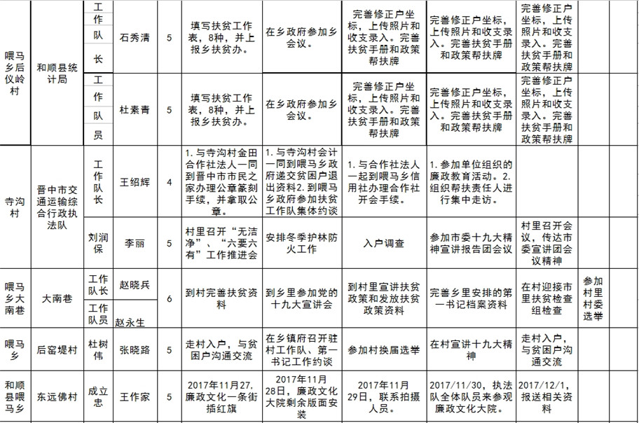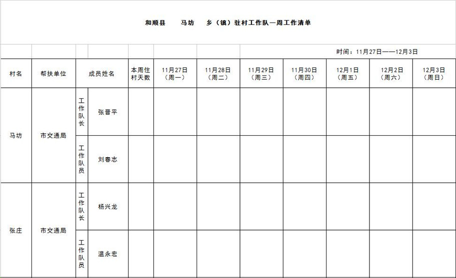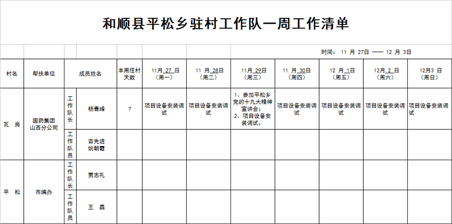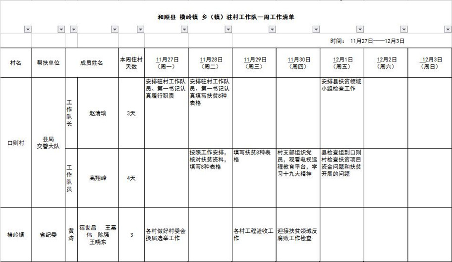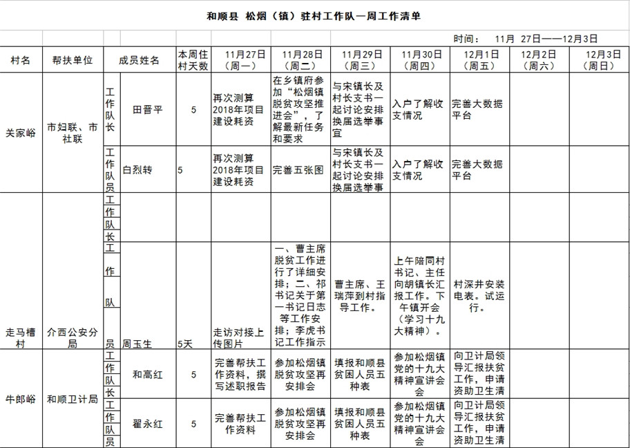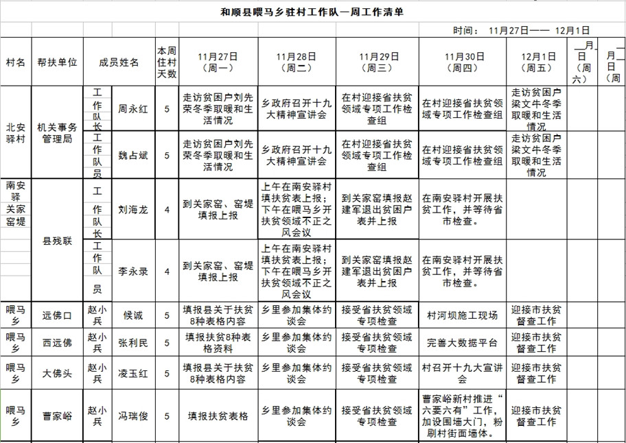 和顺县驻村工作队一周工作清单(11月27日—12月03日)