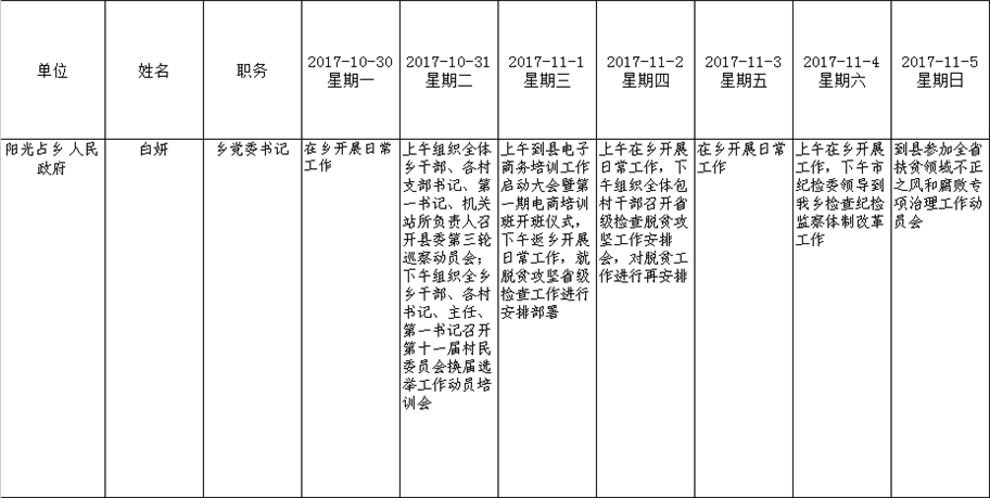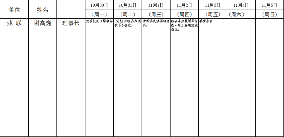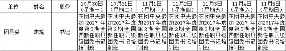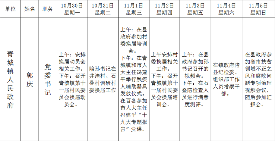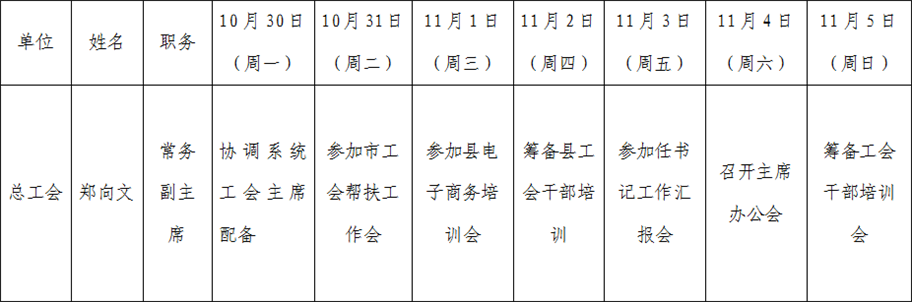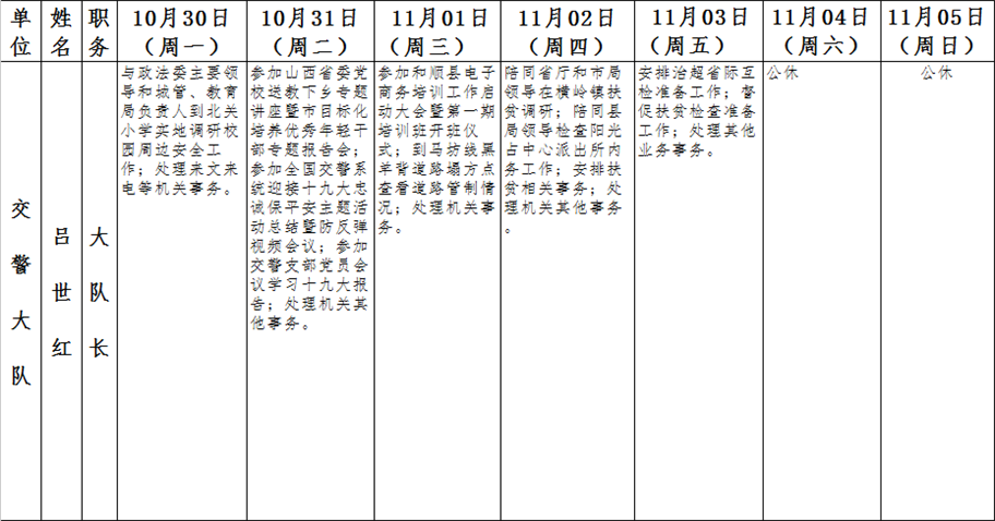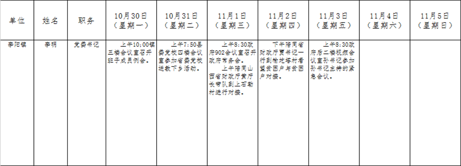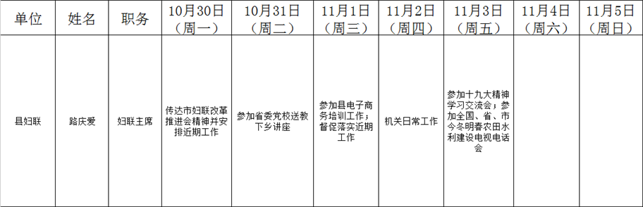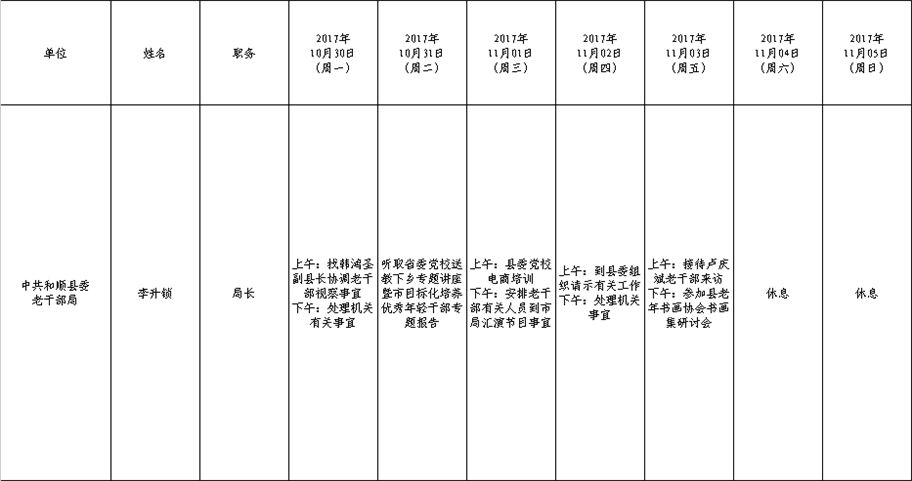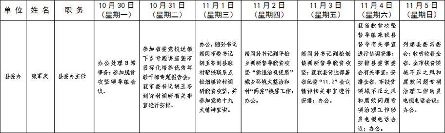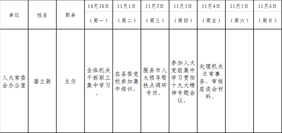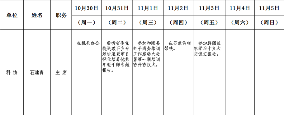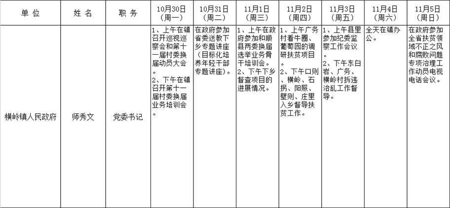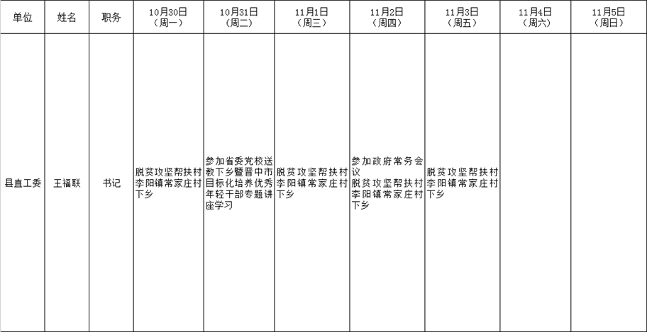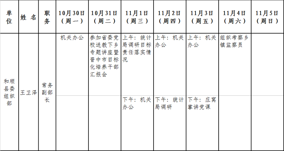 和顺县党委系统领导干部一周工作清单(10月30日—11月5日)