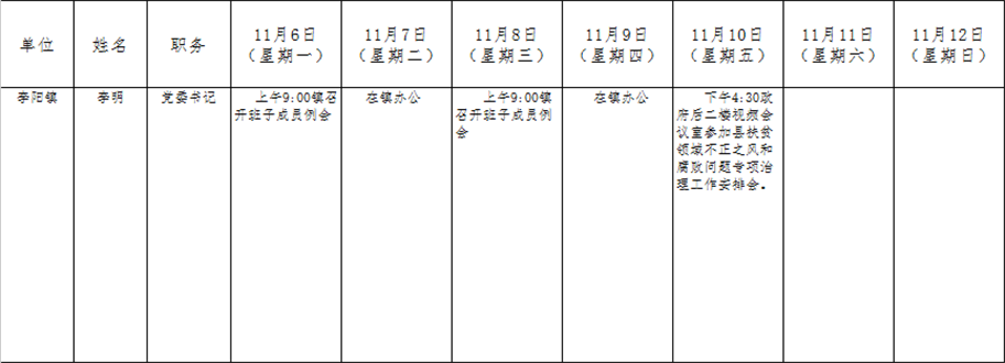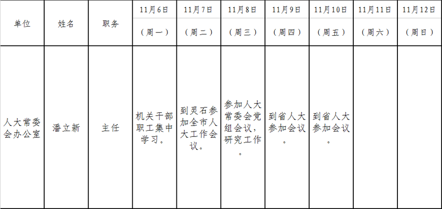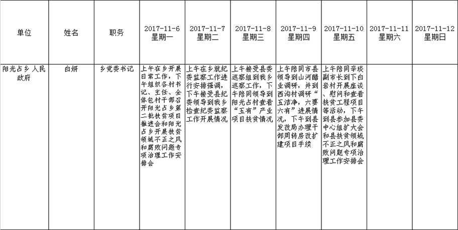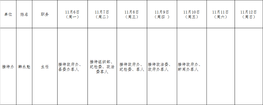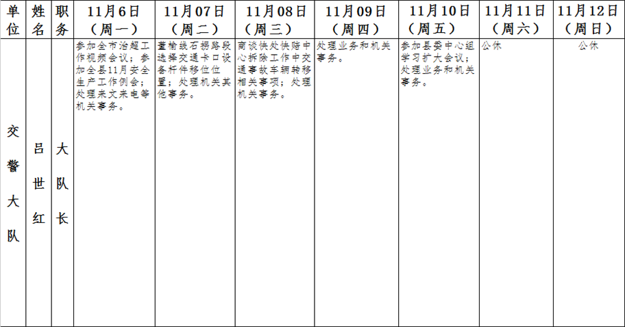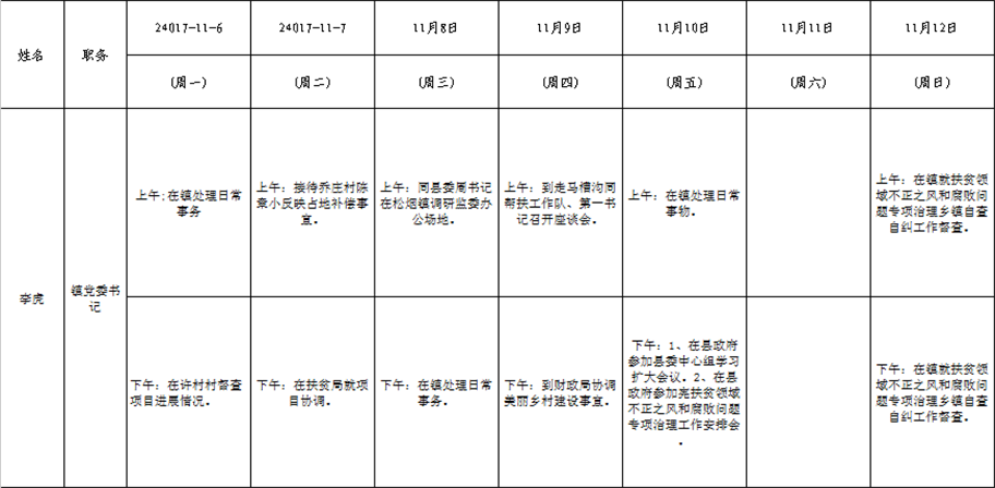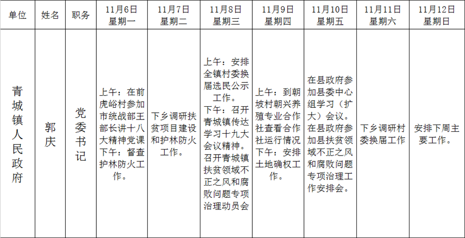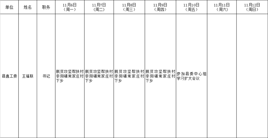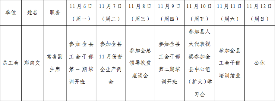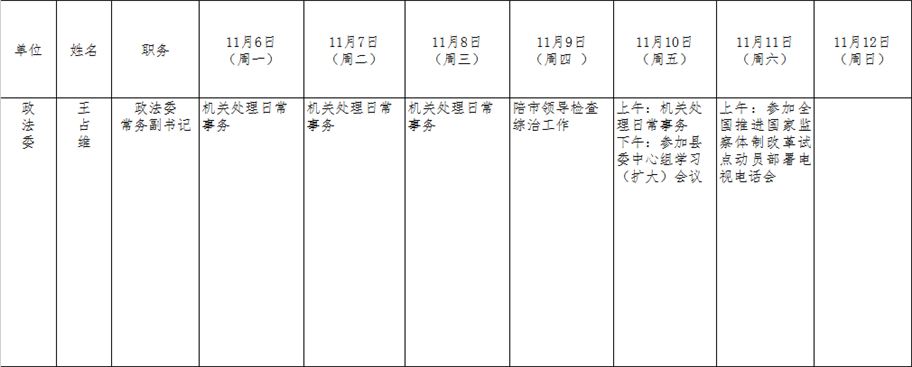 全县领导干部一周工作清单