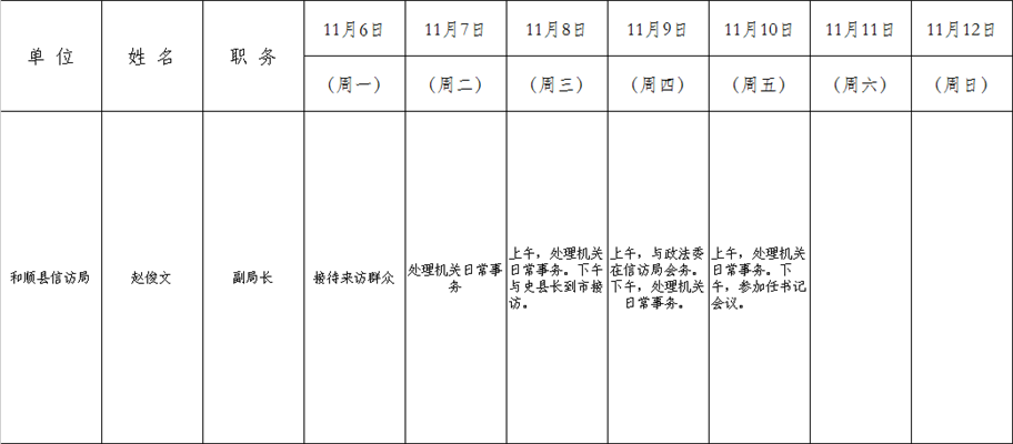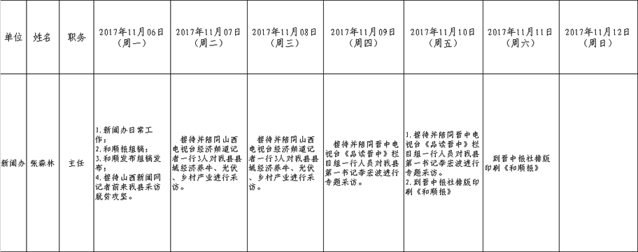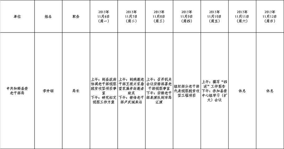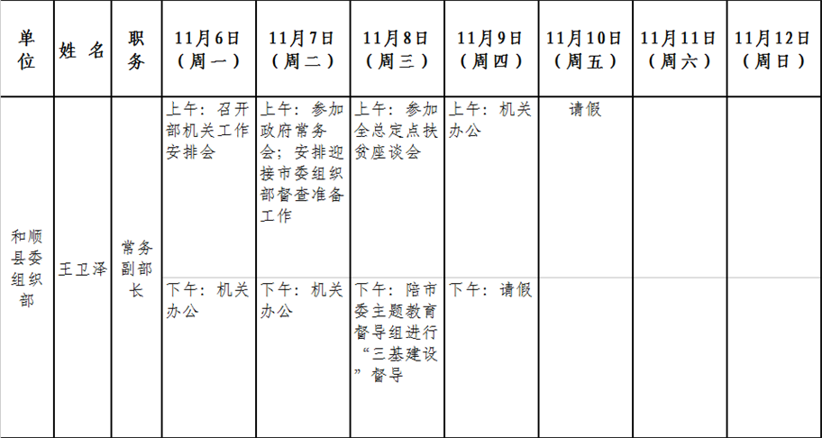 和顺县党委系统领导干部一周工作清单(11月6日—11月12日)