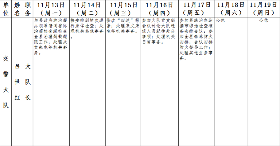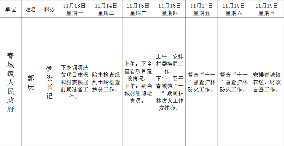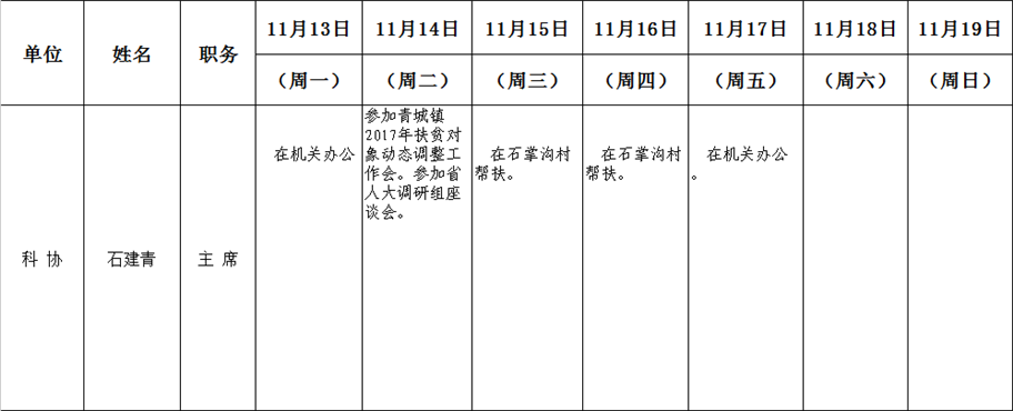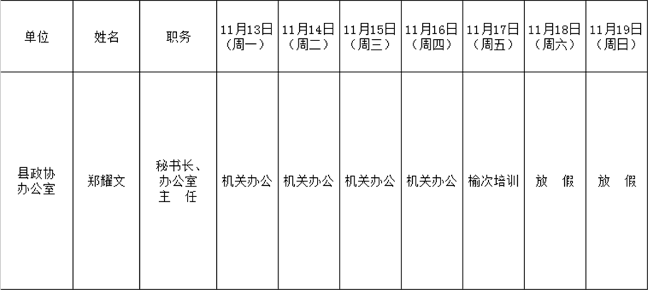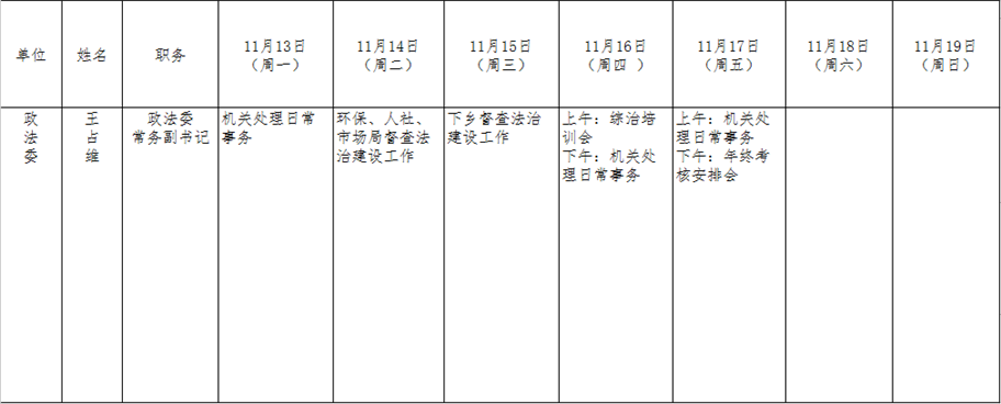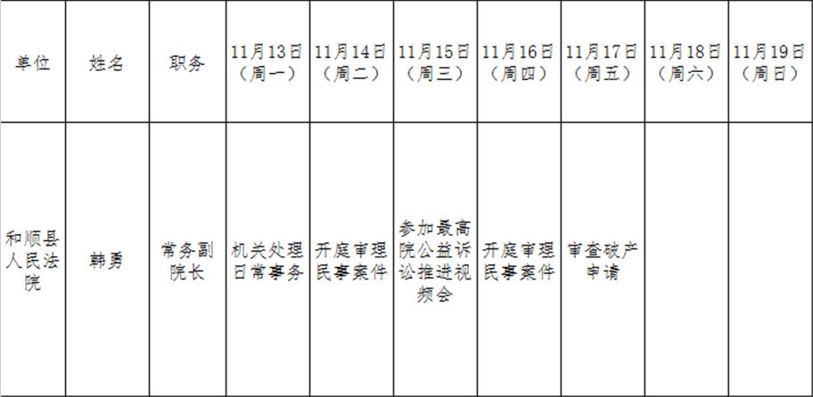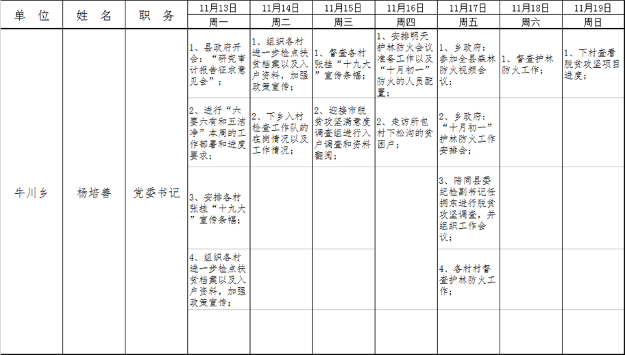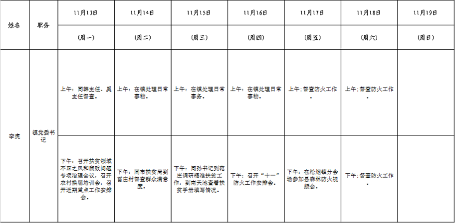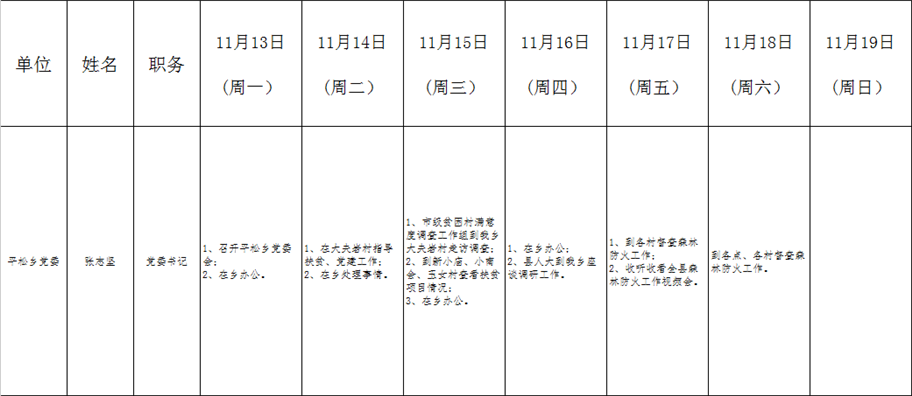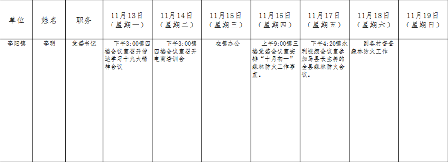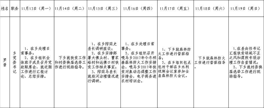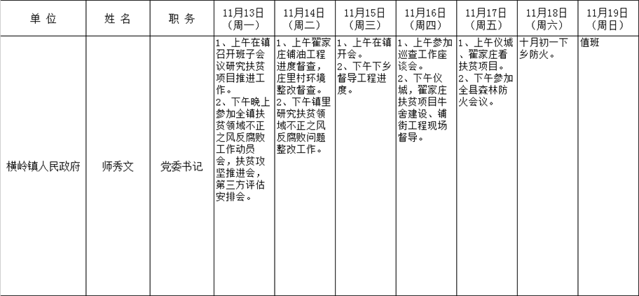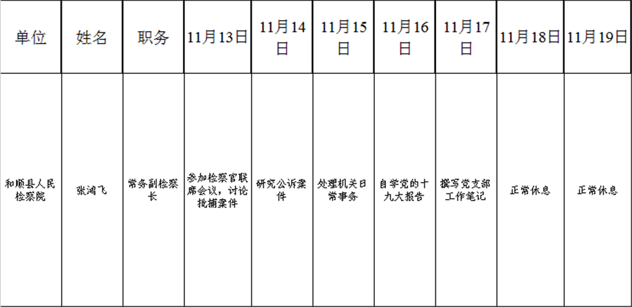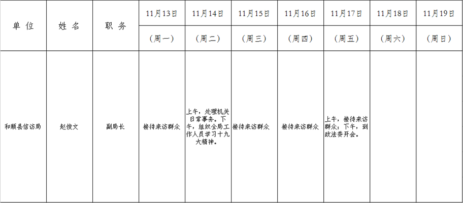 和顺县党委系统领导干部一周工作清单(11月13日—11月19日)