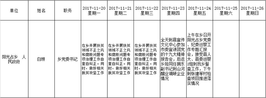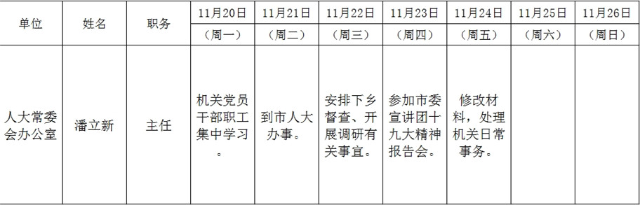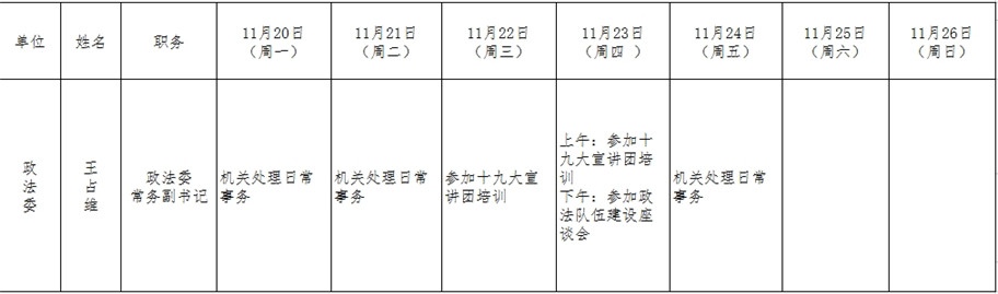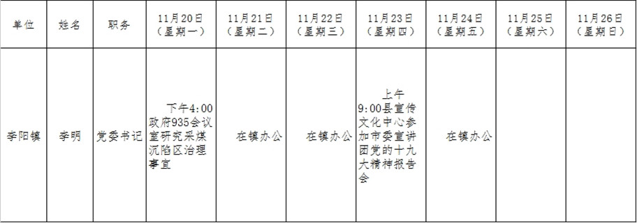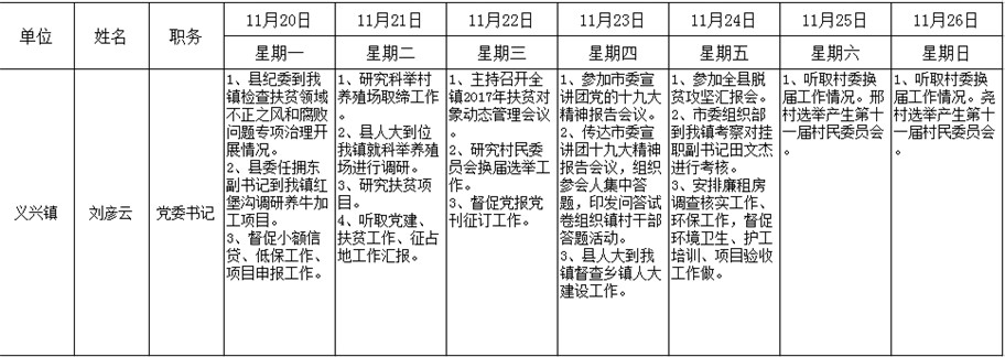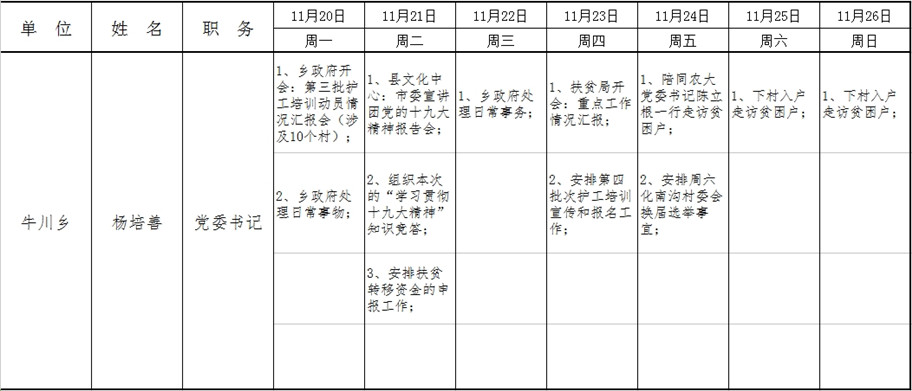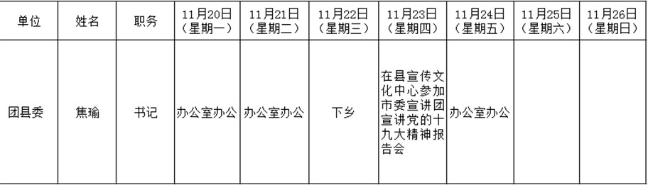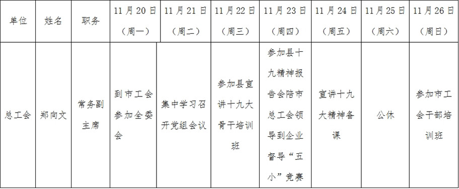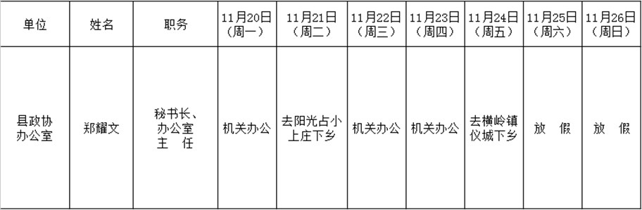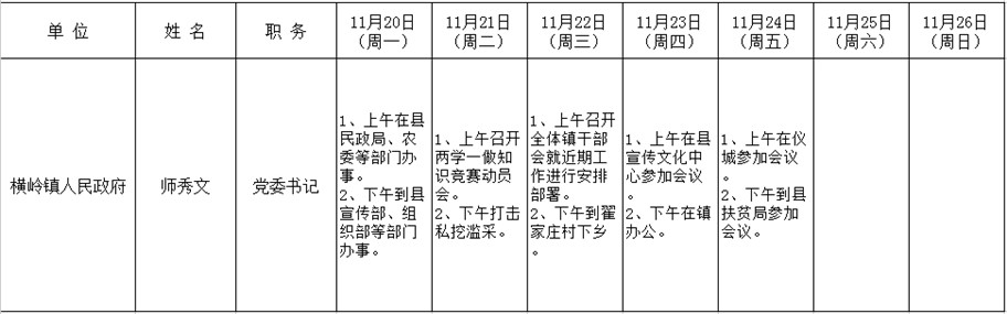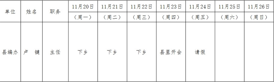 全县领导干部一周工作清单