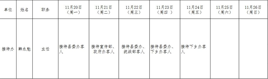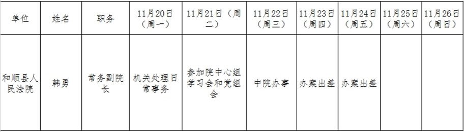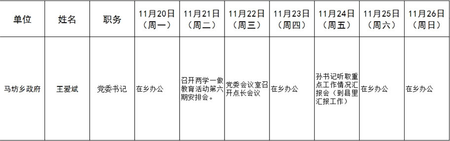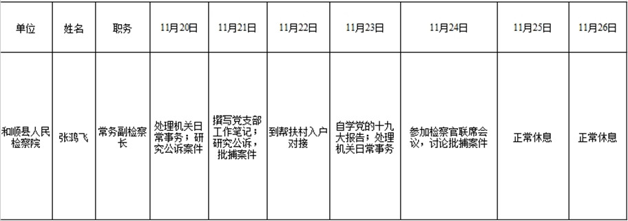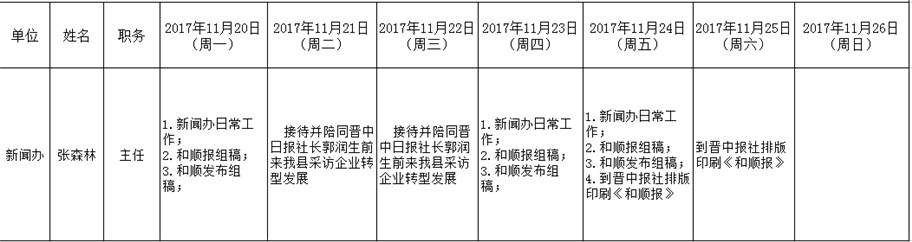 和顺县党委系统领导干部一周工作清单(11月20日—11月26日)