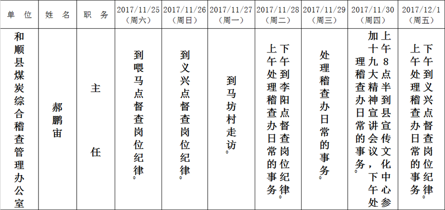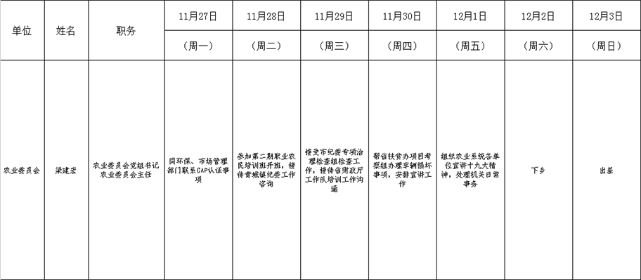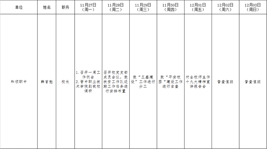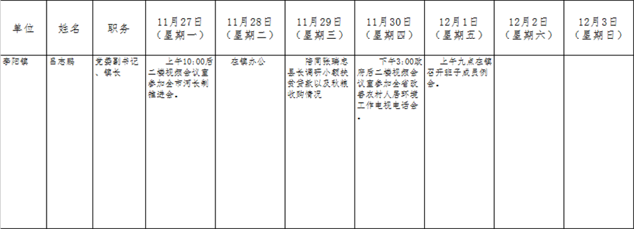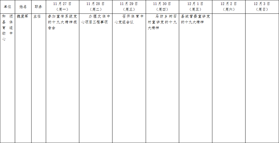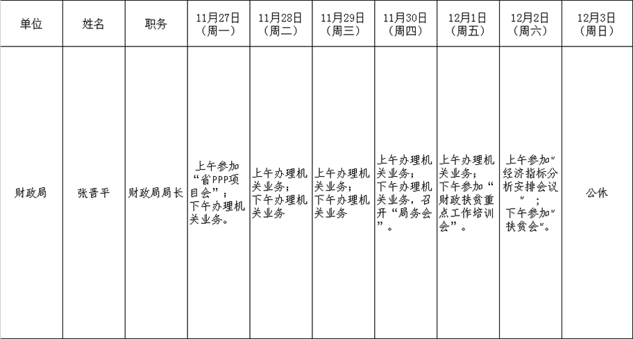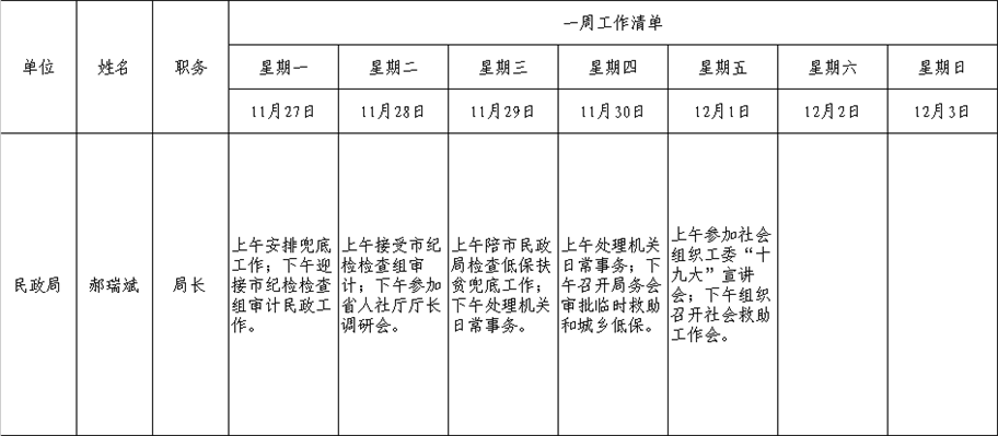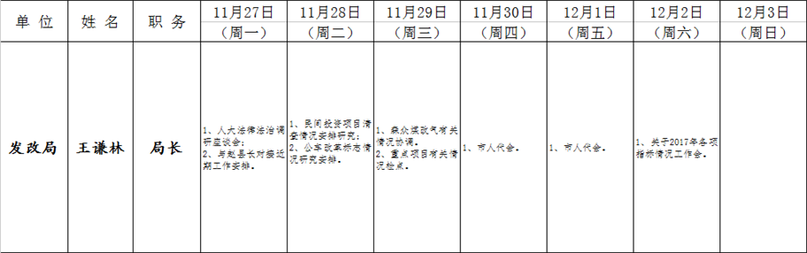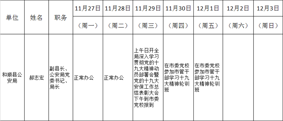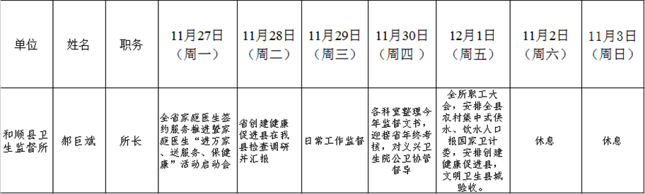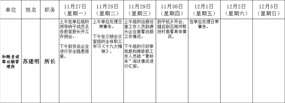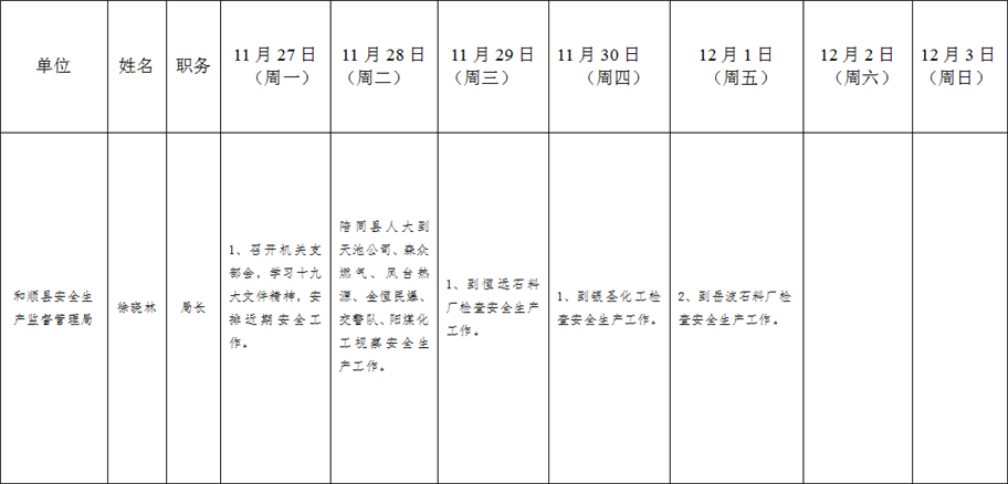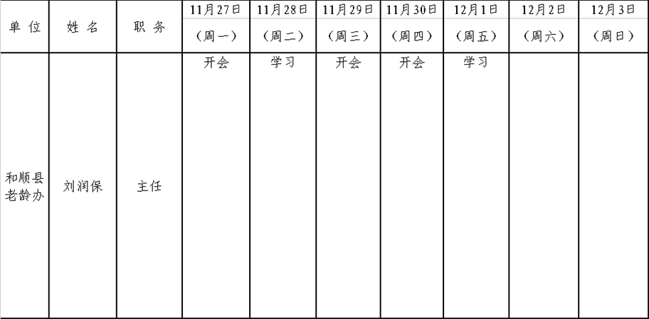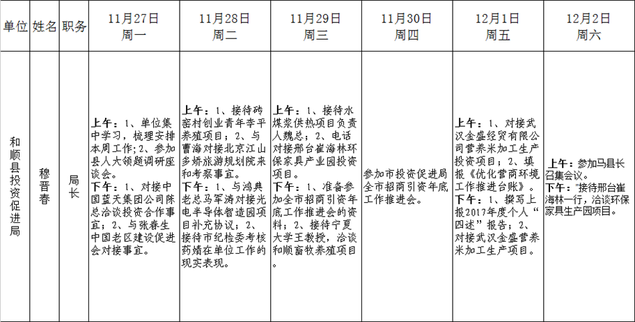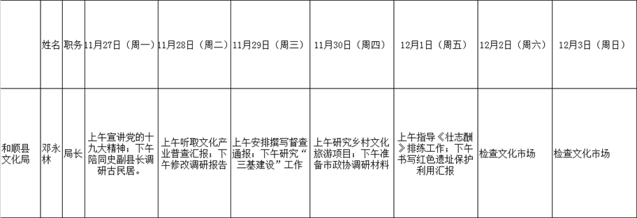 和顺县政府系统领导干部一周工作清单(11月27日—12月3日)