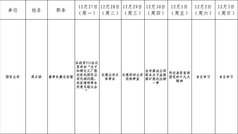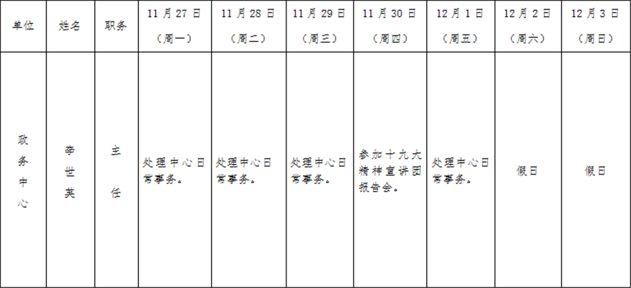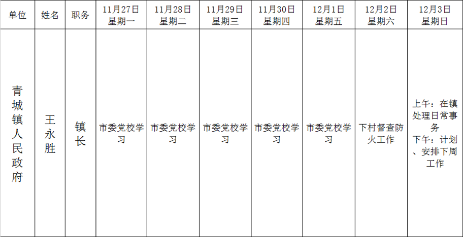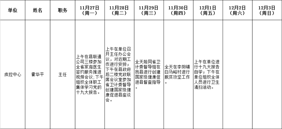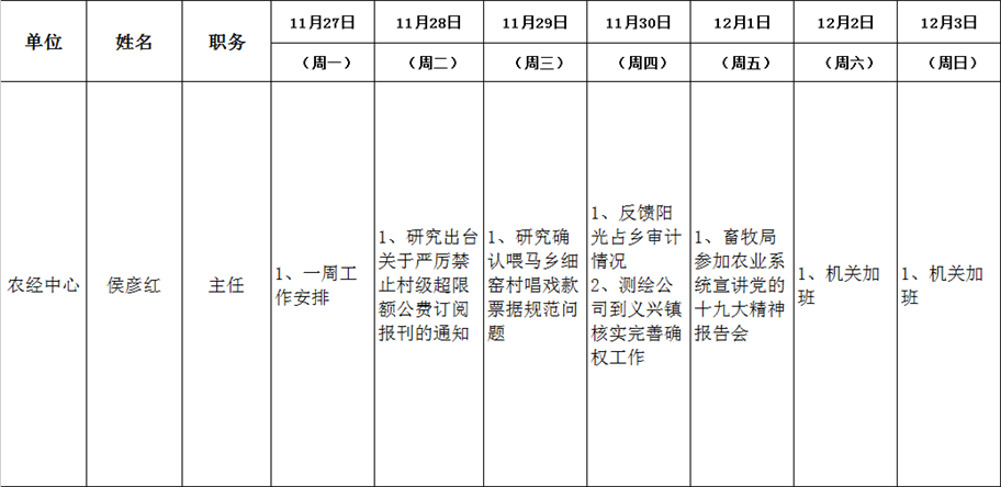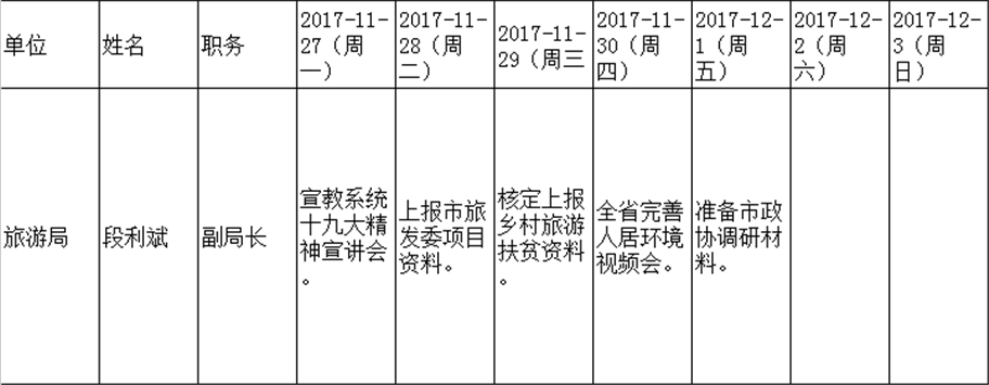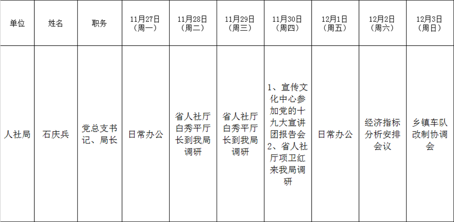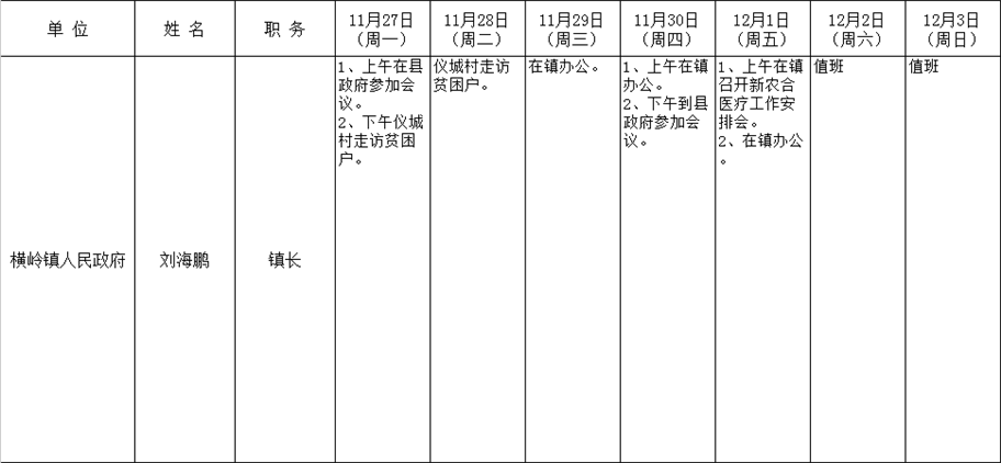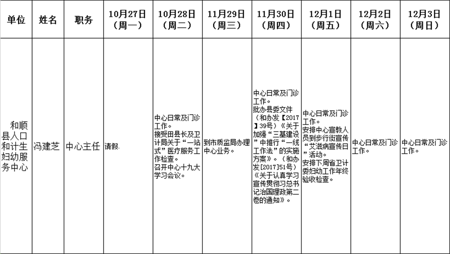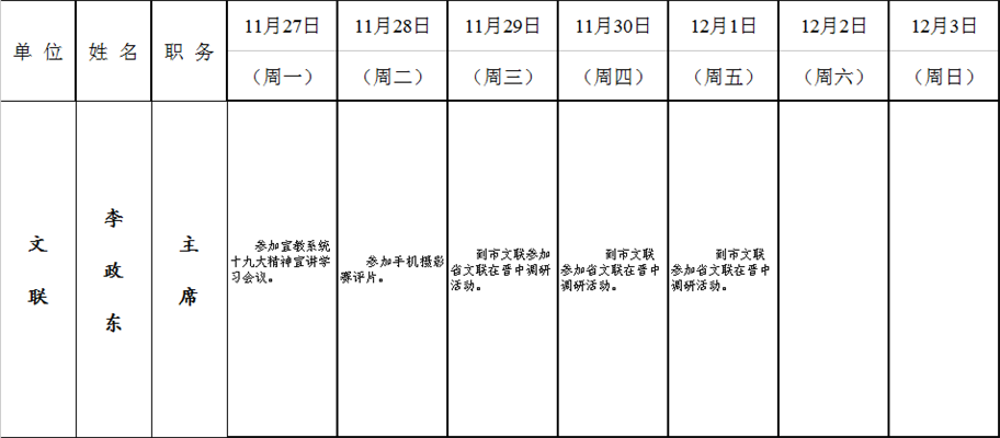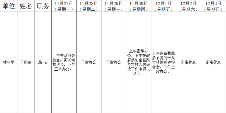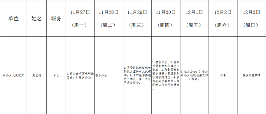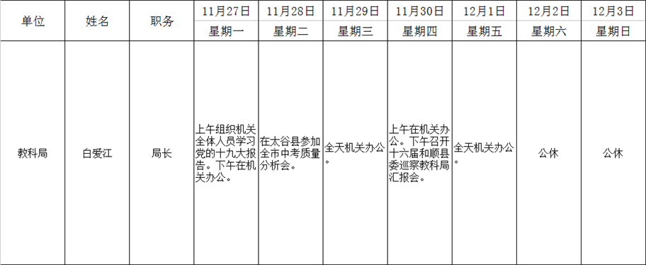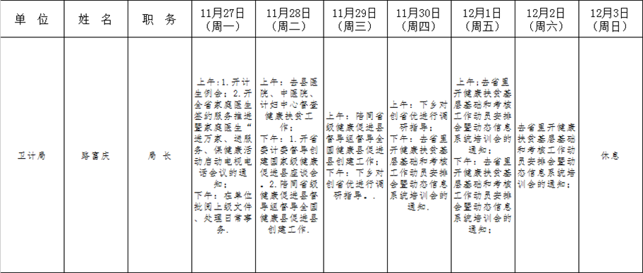 和顺县政府系统领导干部一周工作清单(11月27日—12月3日)