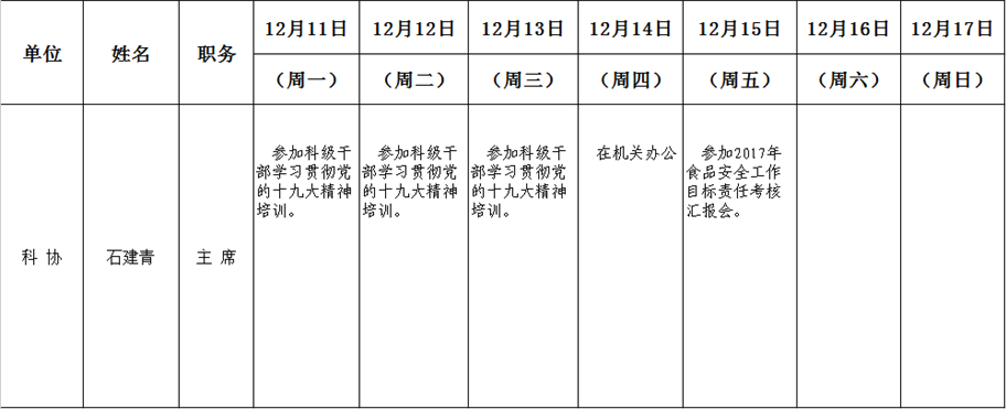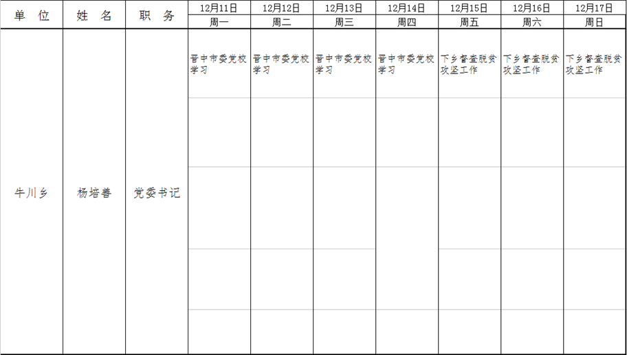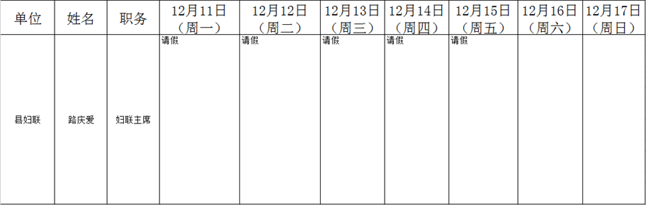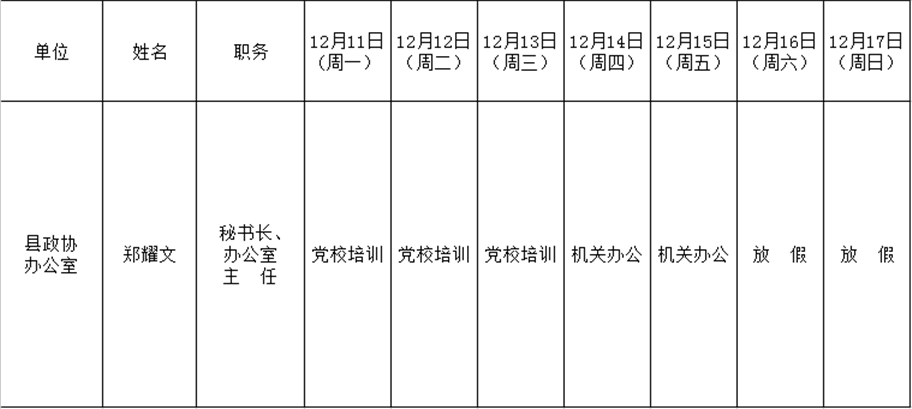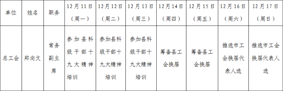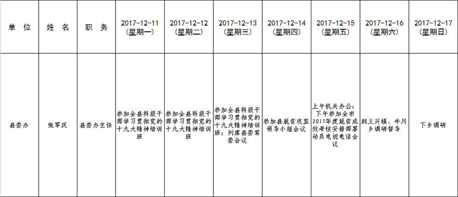 全县领导干部一周工作清单
