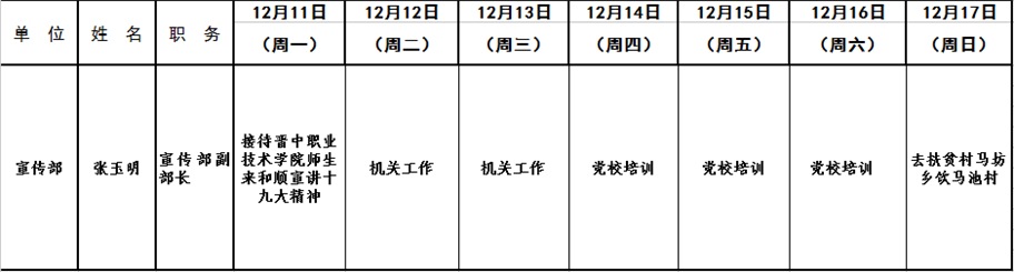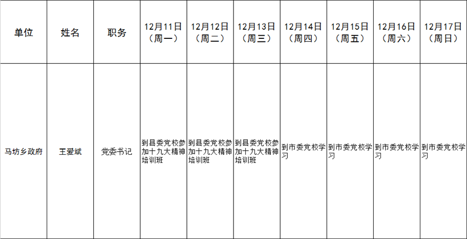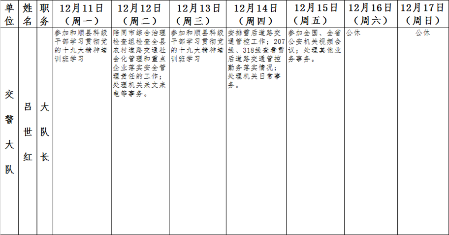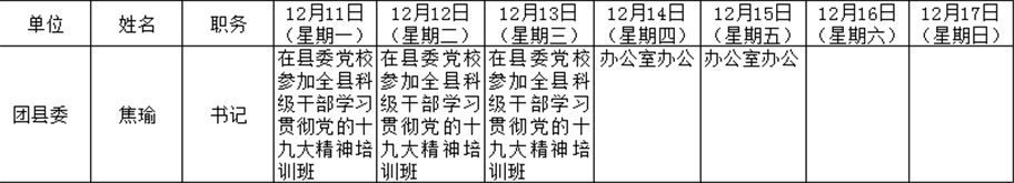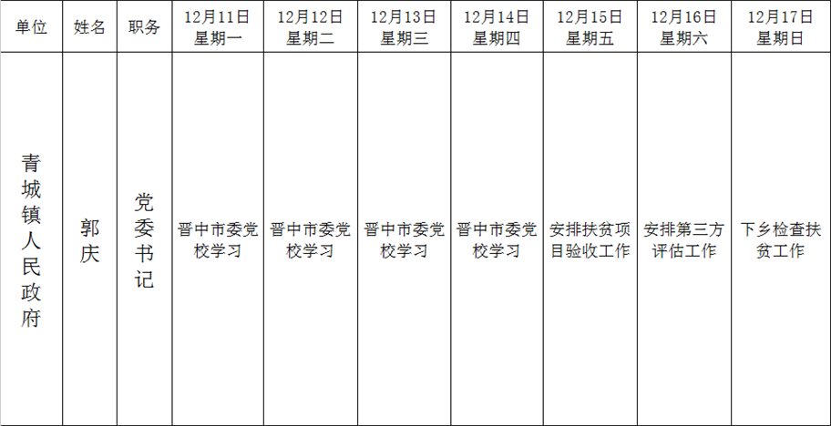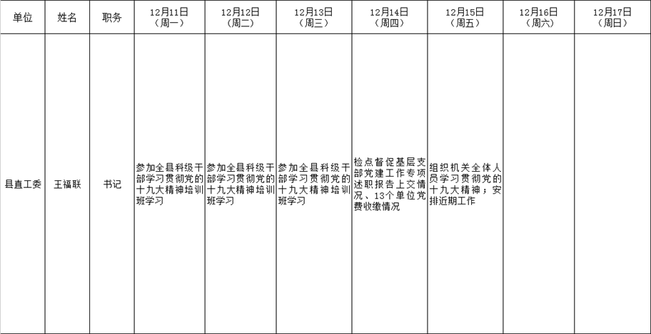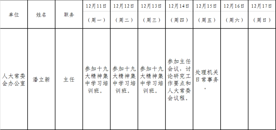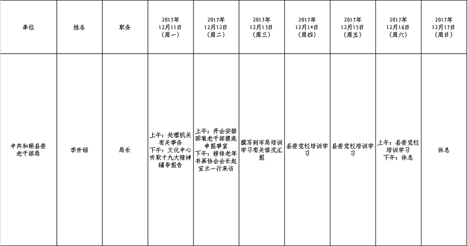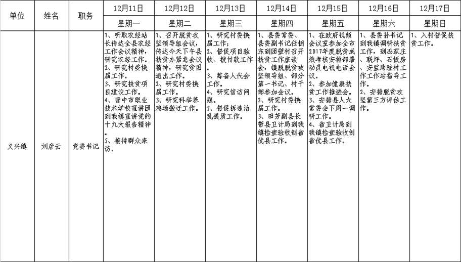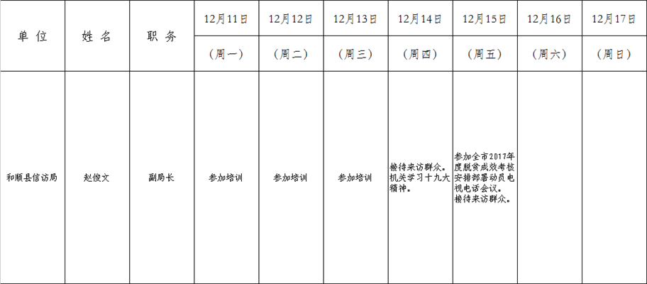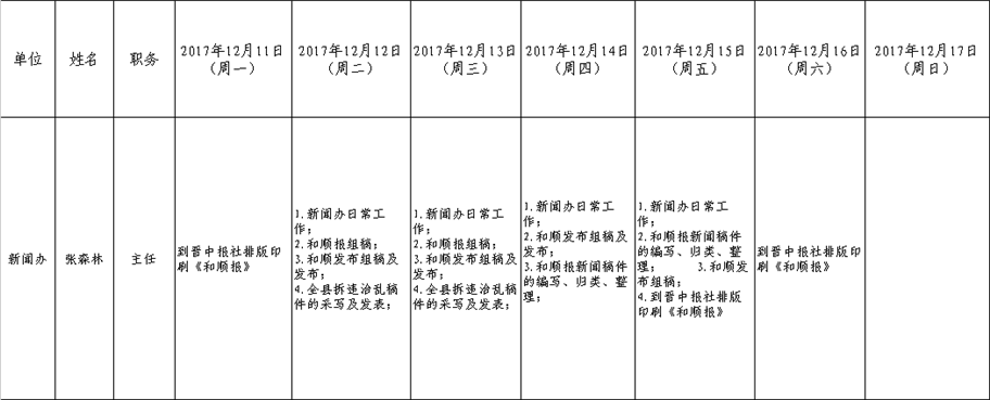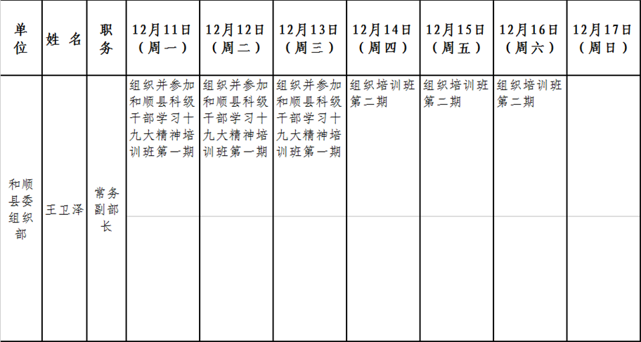 和顺县党委系统领导干部一周工作清单(12月11日—12月17日)