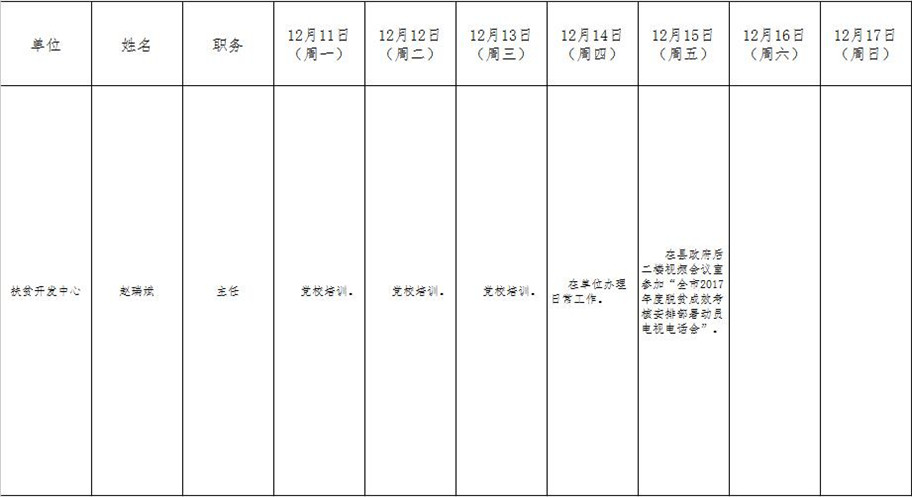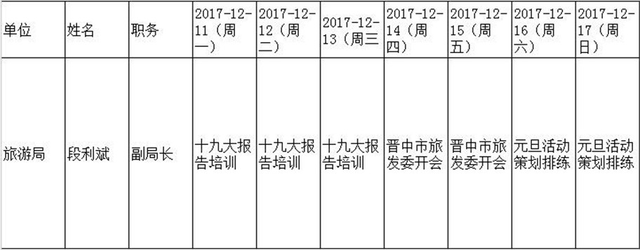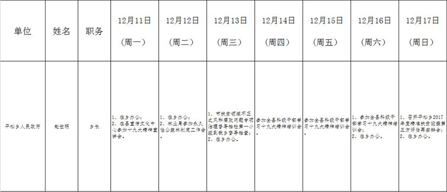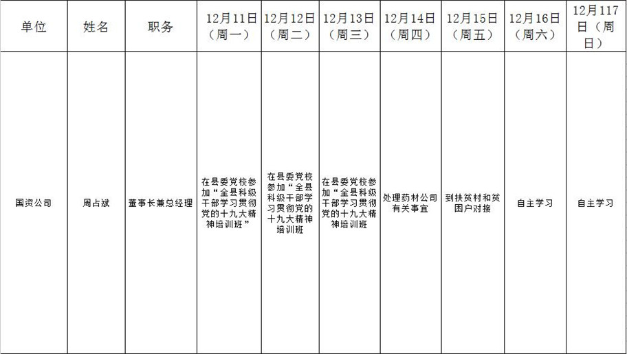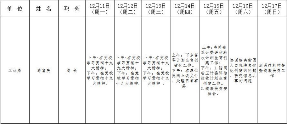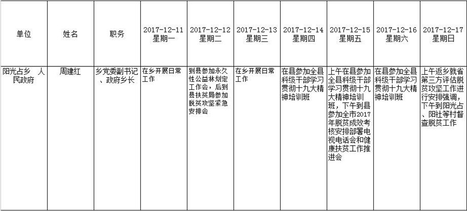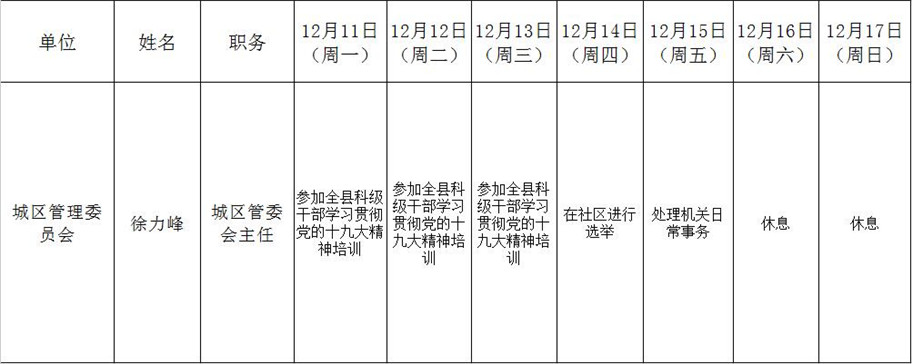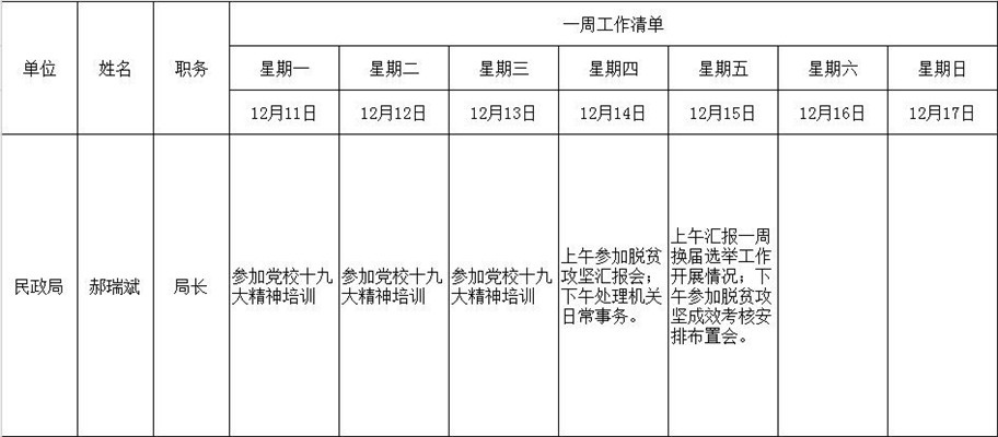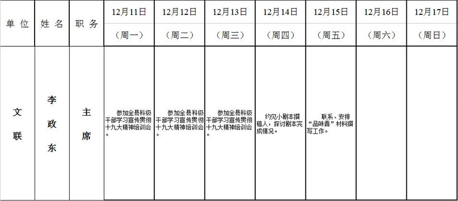 全县领导干部一周工作清单