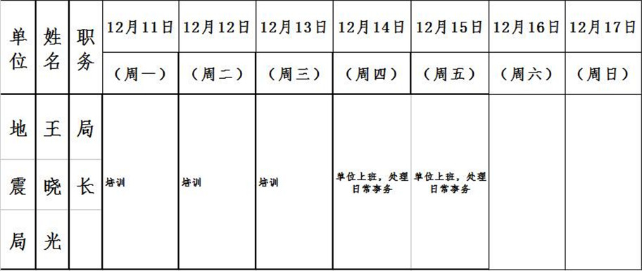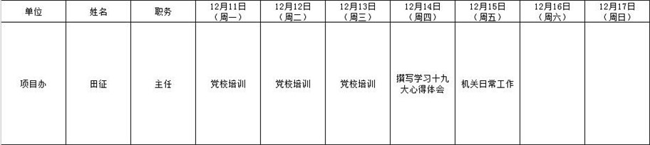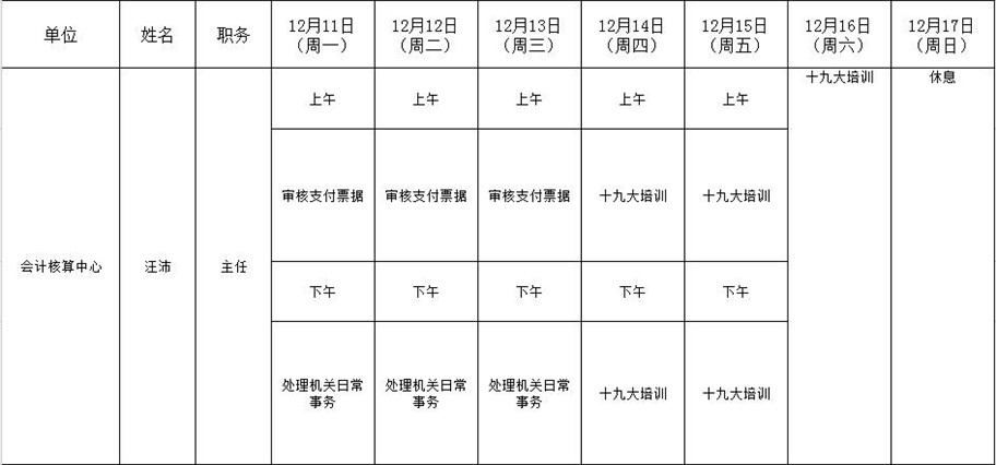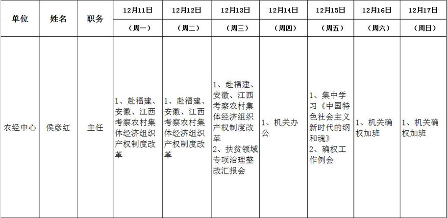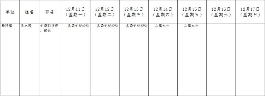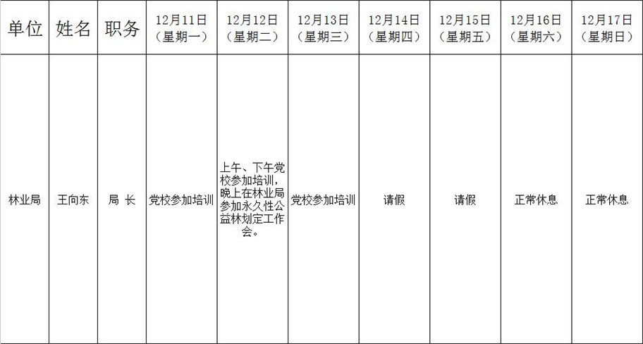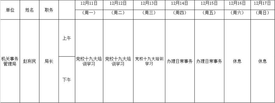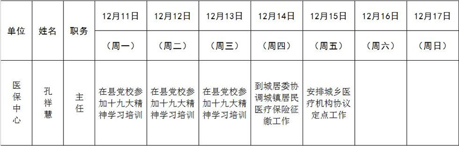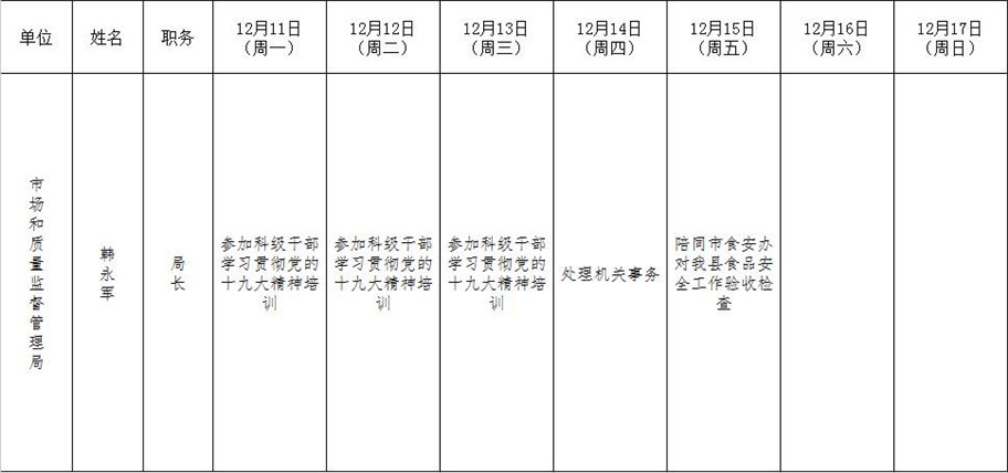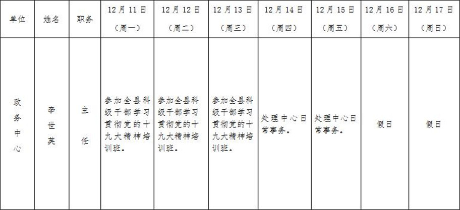 全县领导干部一周工作清单