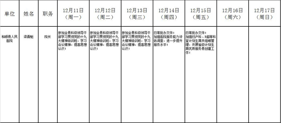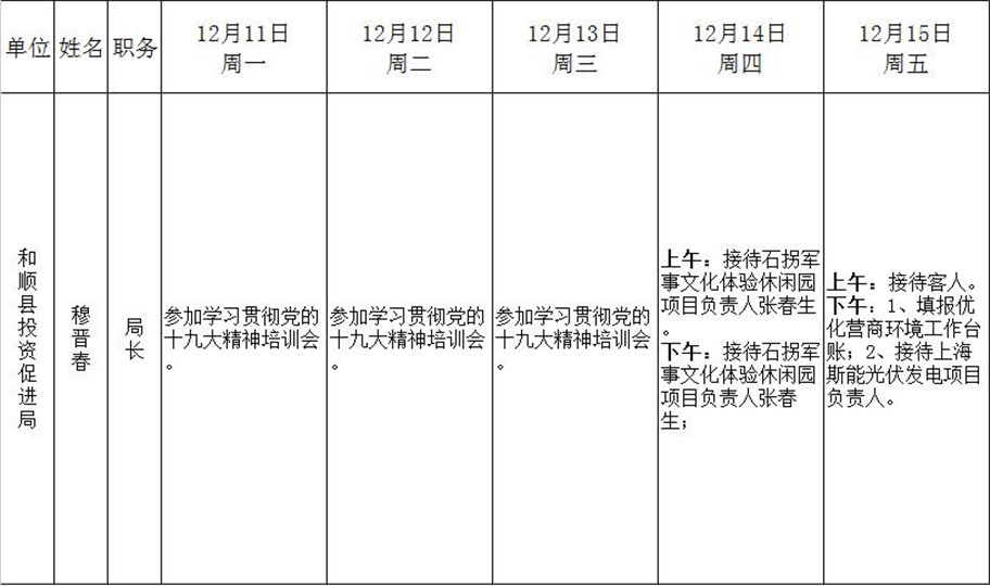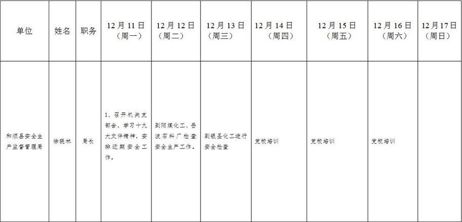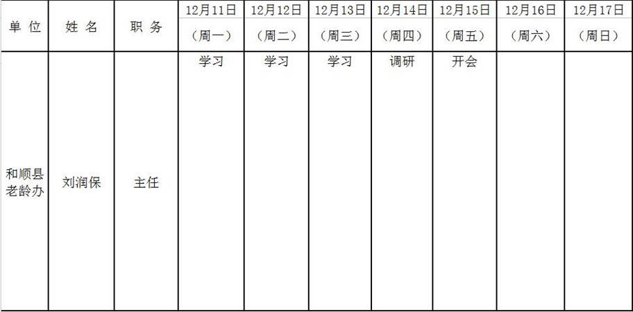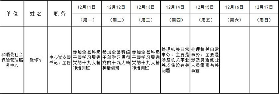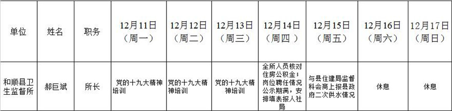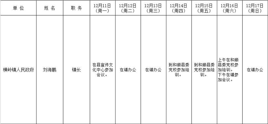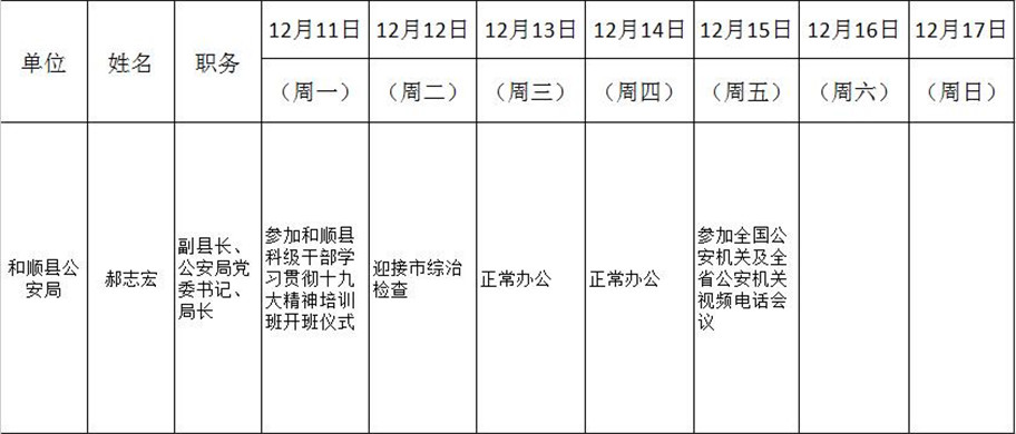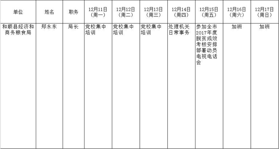 和顺县政府系统领导干部一周工作清单(12月11日—12月17日)