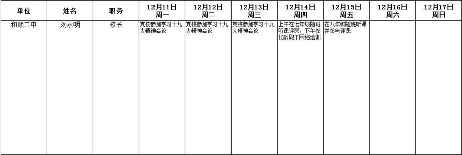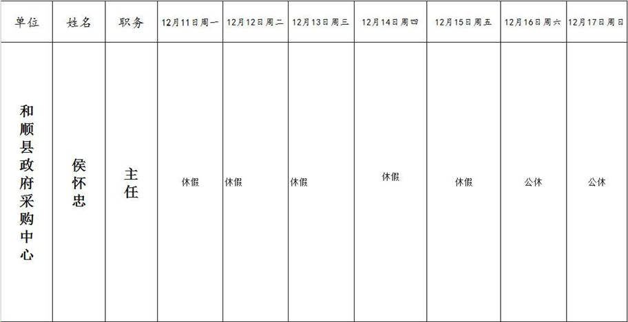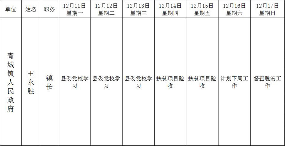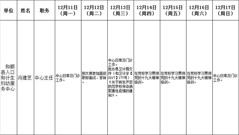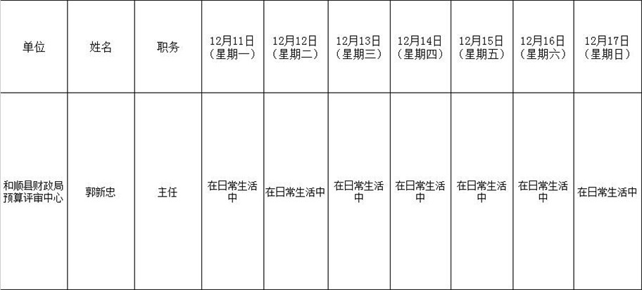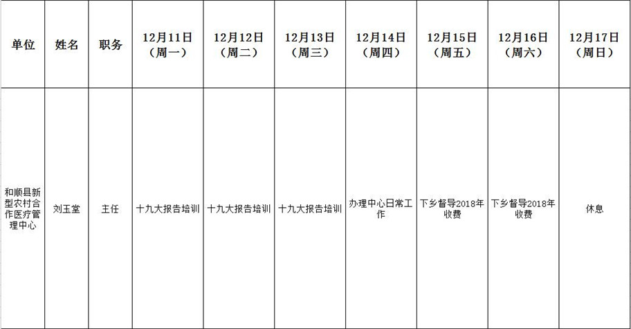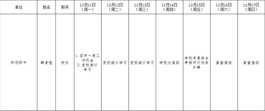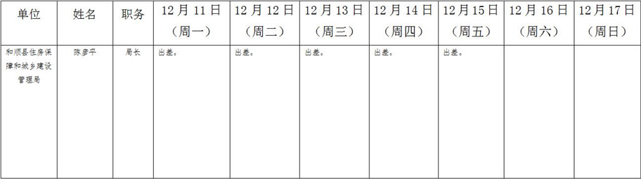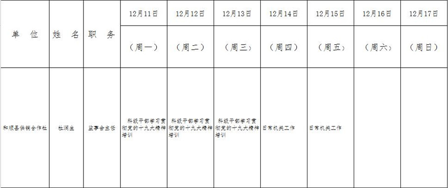 和顺县政府系统领导干部一周工作清单(12月11日—12月17日)