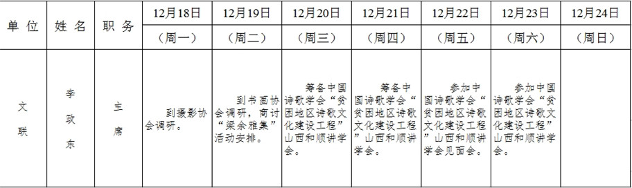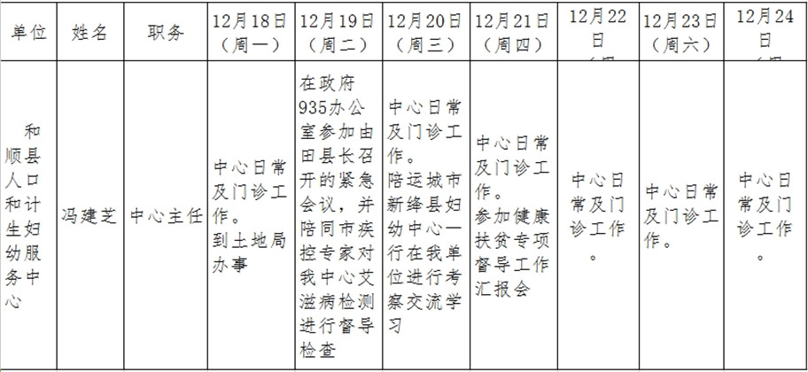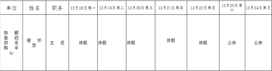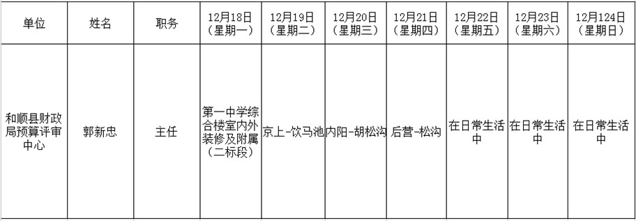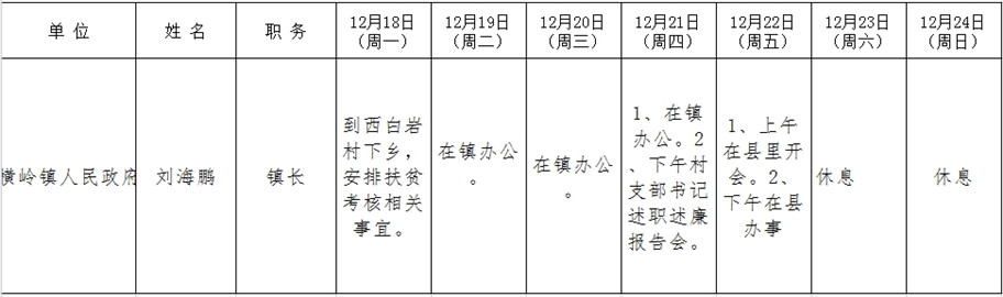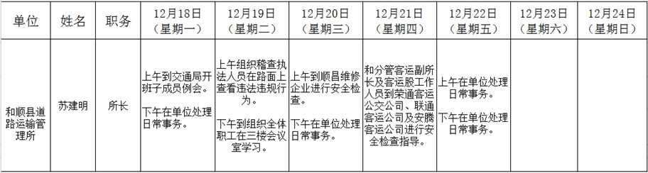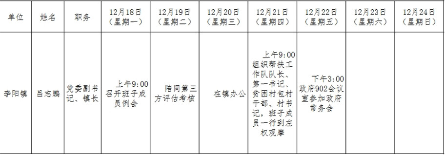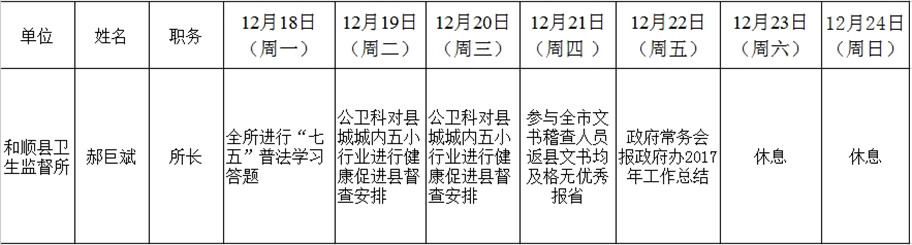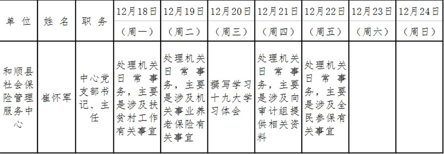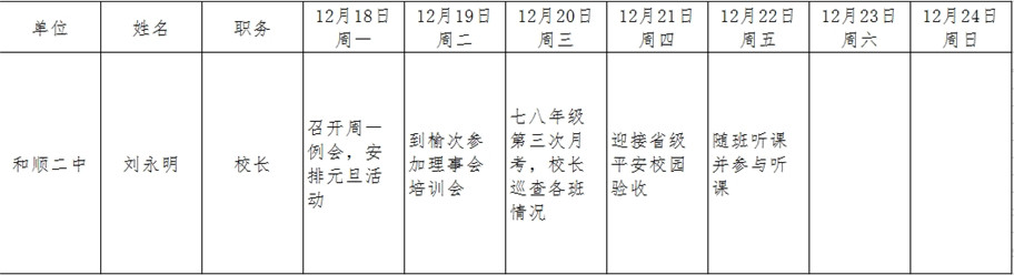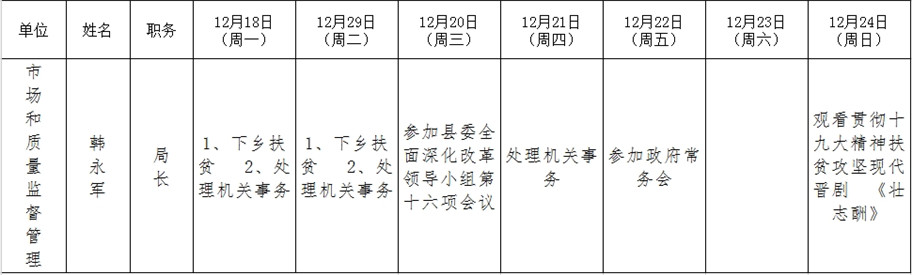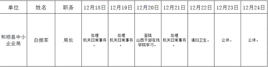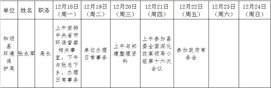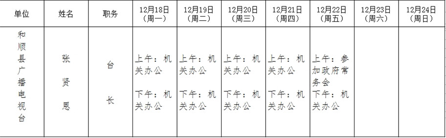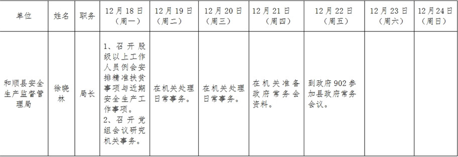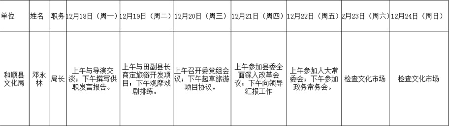 和顺县政府系统领导干部一周工作清单(12月18日—12月24日)