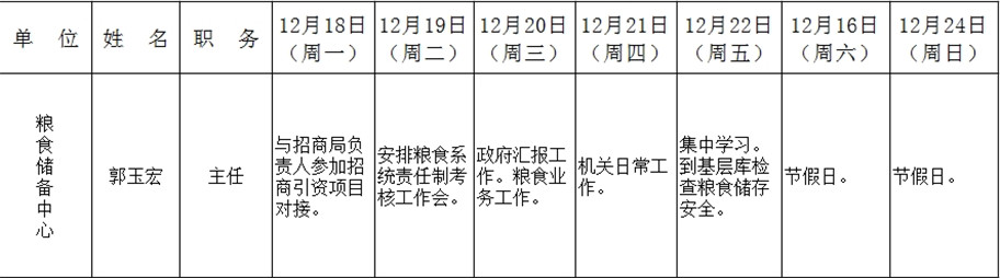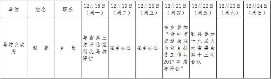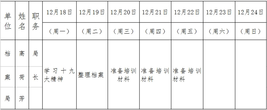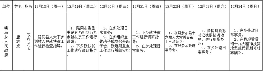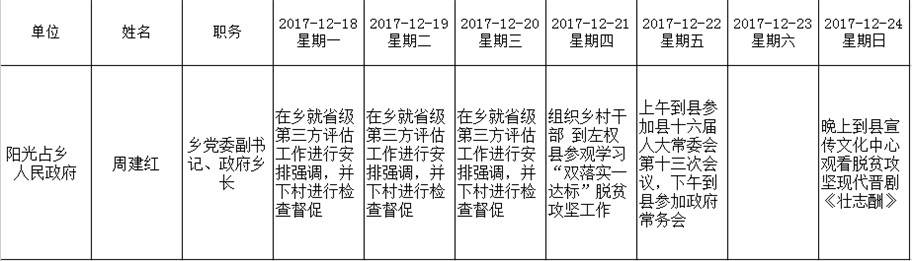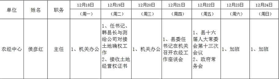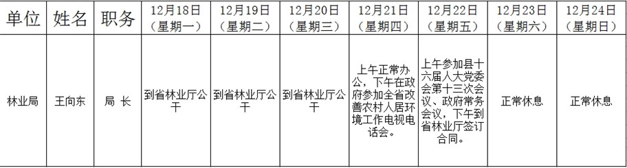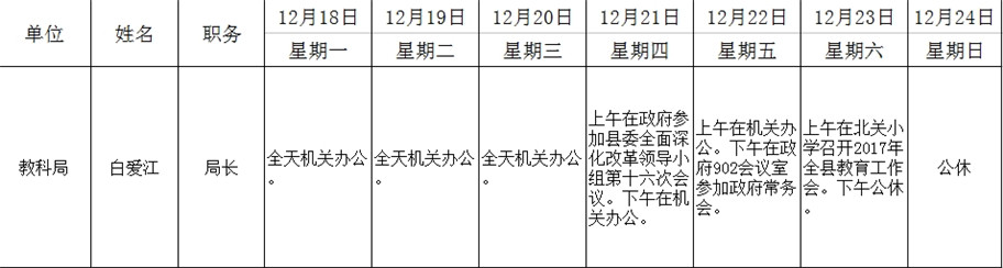 全县领导干部一周工作清单