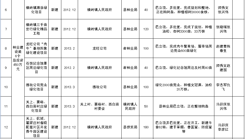 横岭镇2013年重点项目建设情况